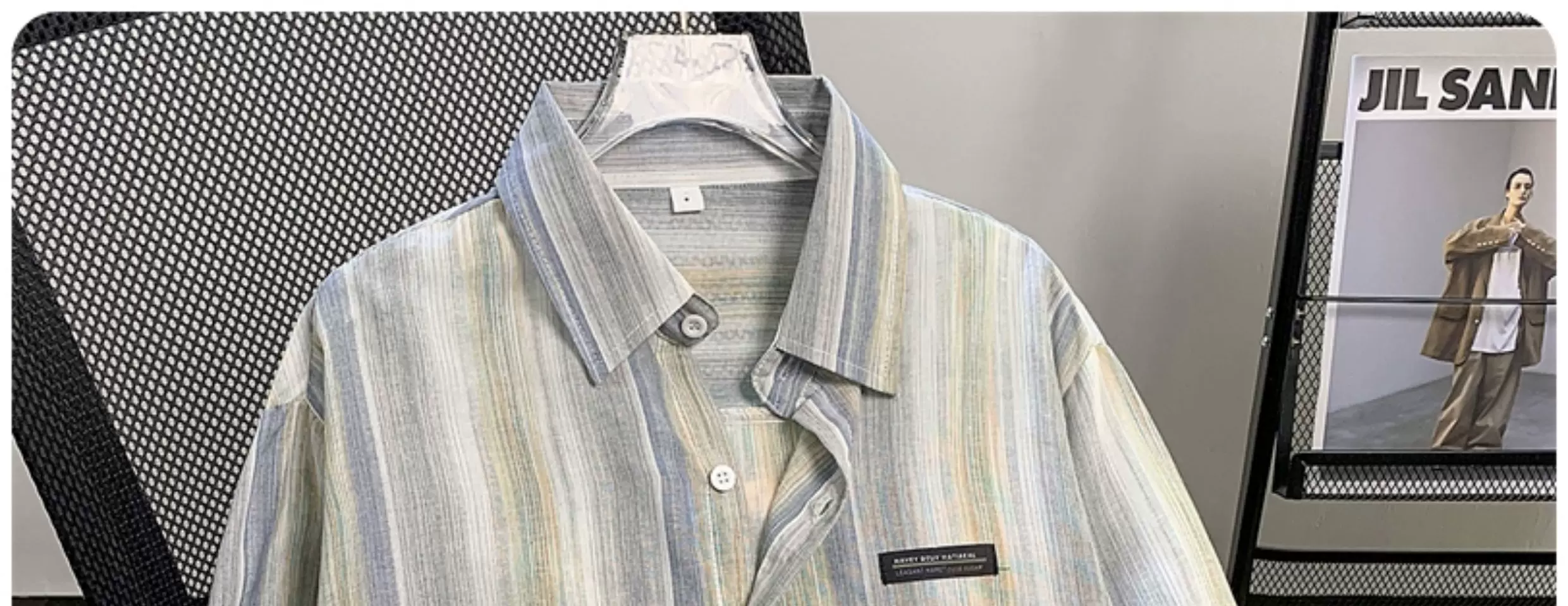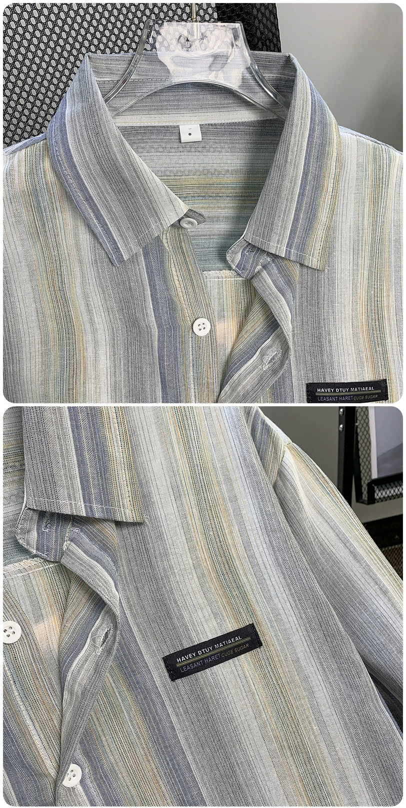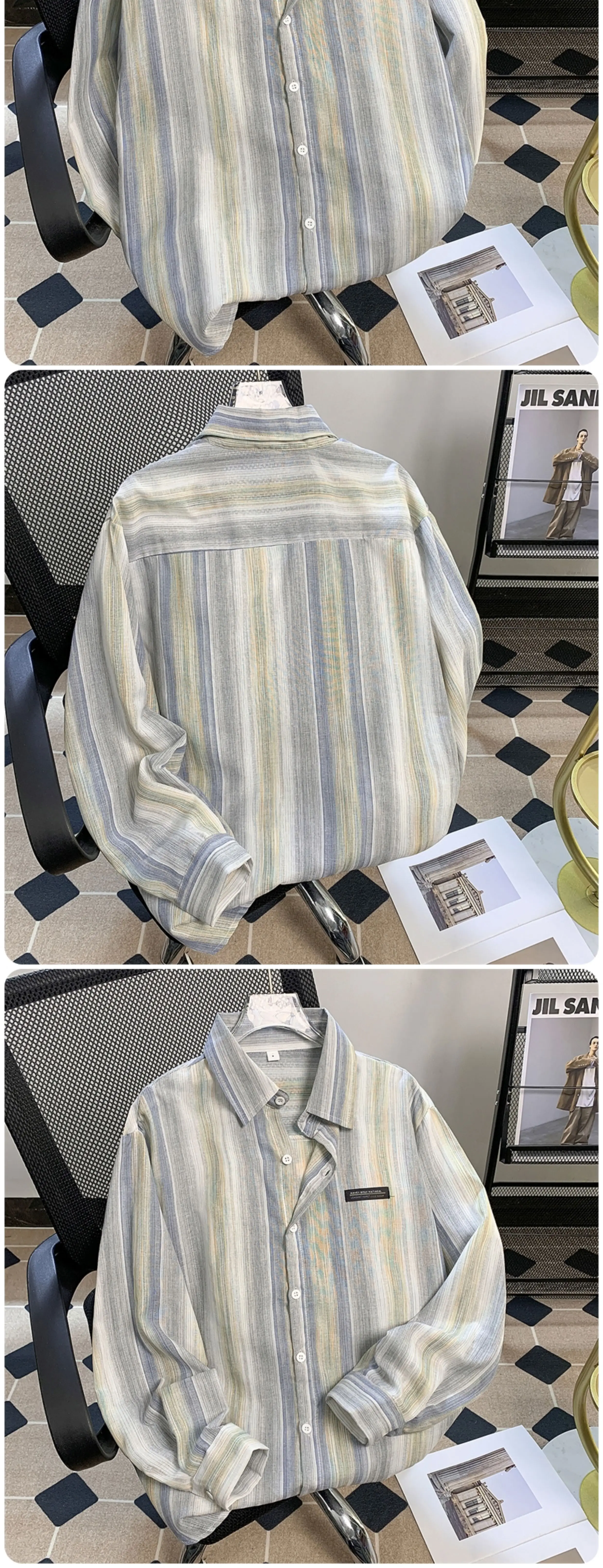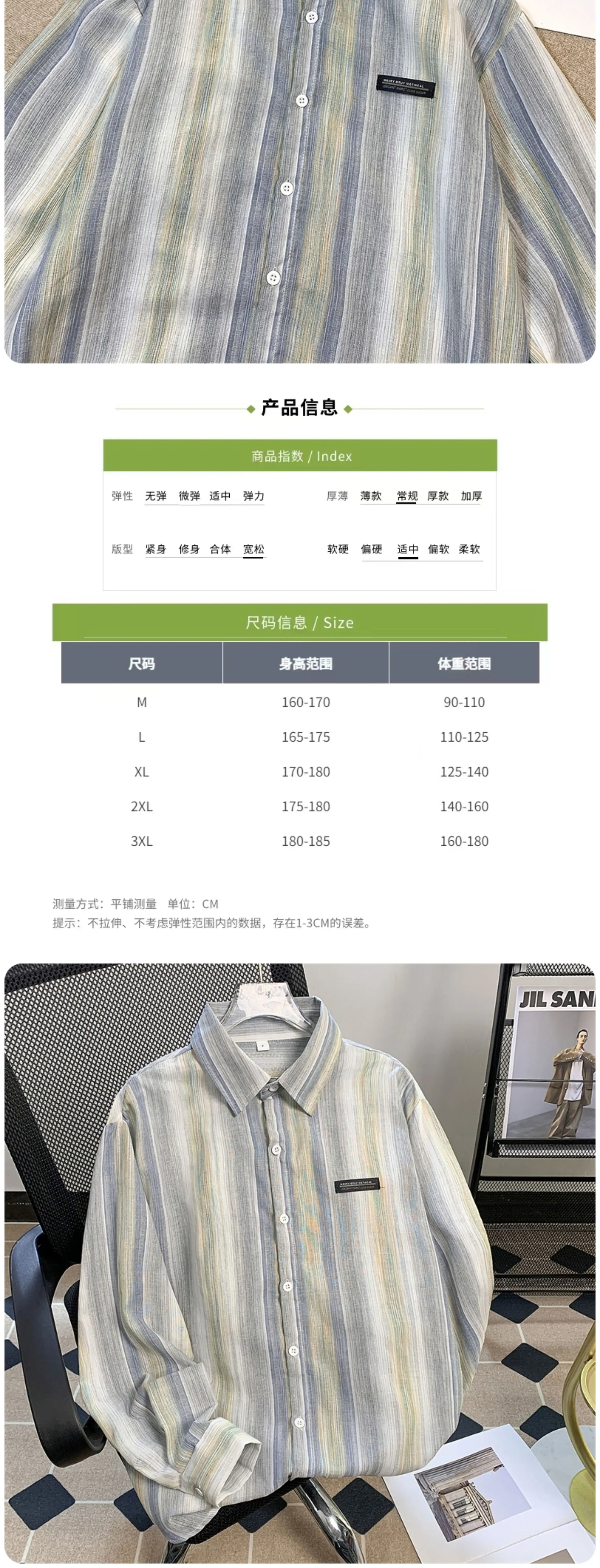 - Áo sơ mi sọc cổ điển Nhật Bản dành cho nam, áo sơ mi vải lanh mỏng tay dài cho mùa thu, áo đôi phong cách đại học rộng rãi hợp thời trang.