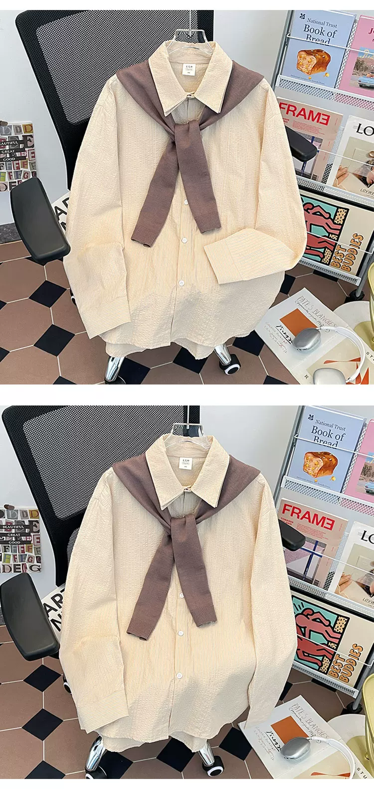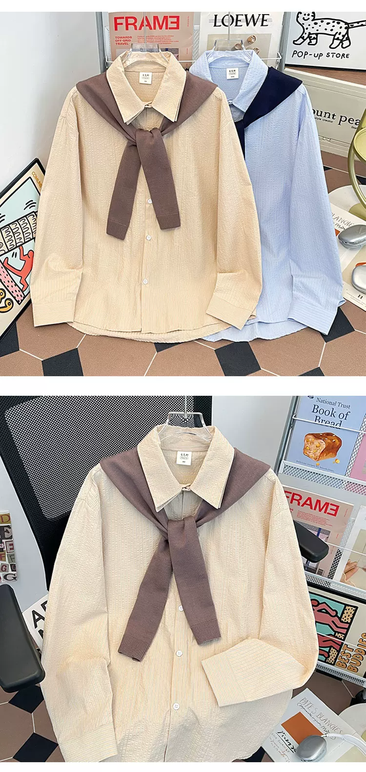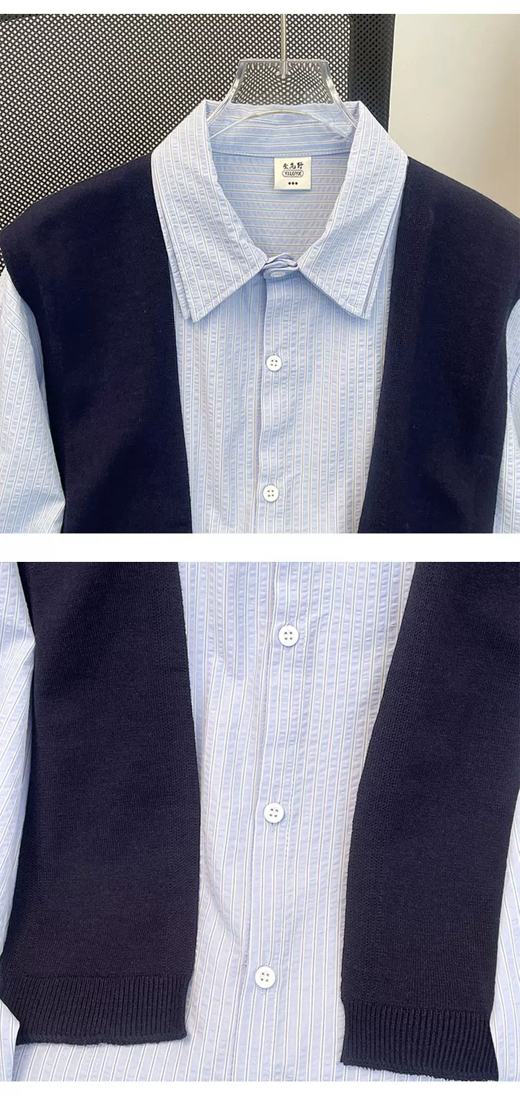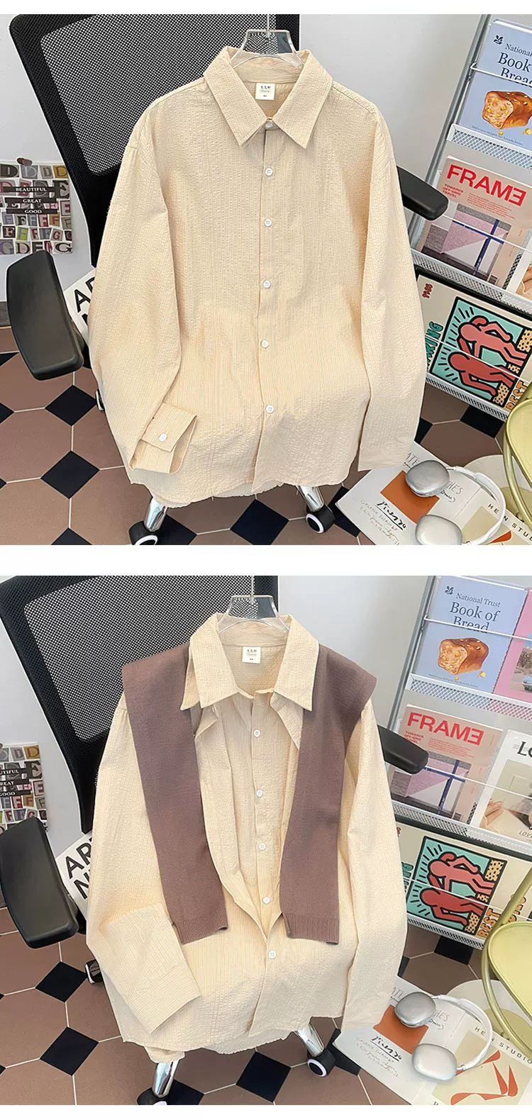 - Áo sơ mi sọc có thể tháo rời dành cho nam, áo sơ mi dài tay đa năng hợp thời trang xuân thu, áo khoác thường ngày phong cách retro Nhật Bản.