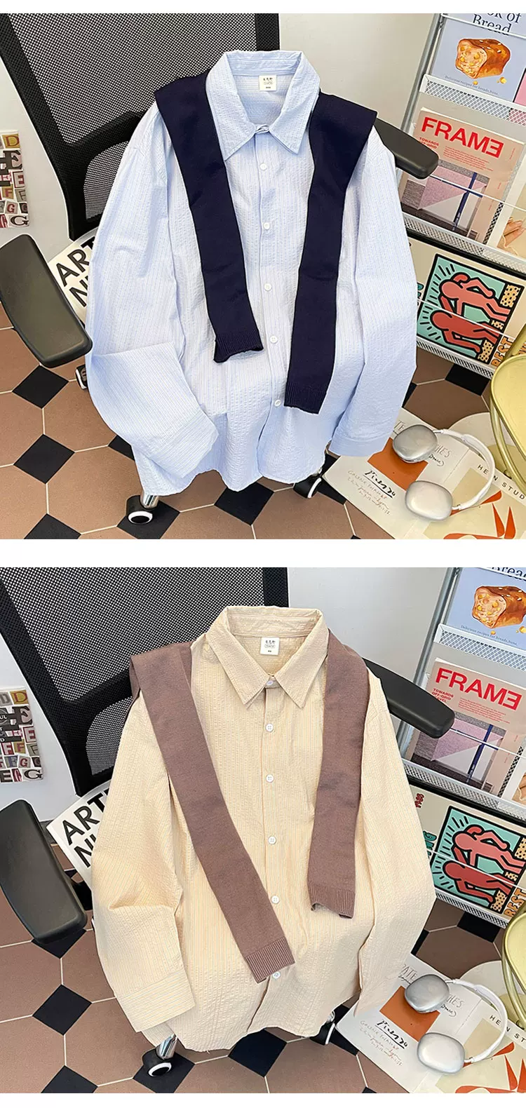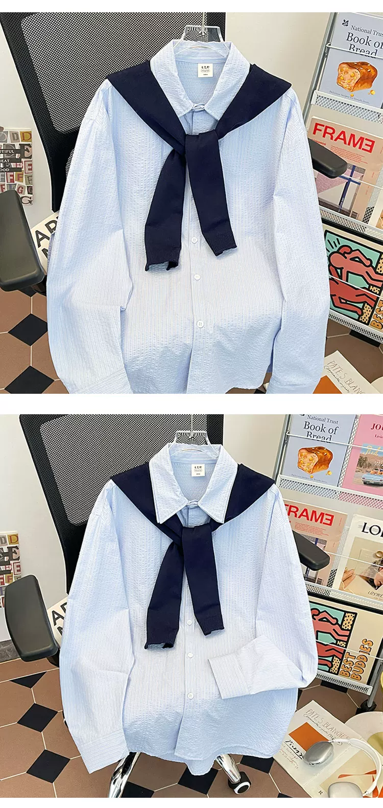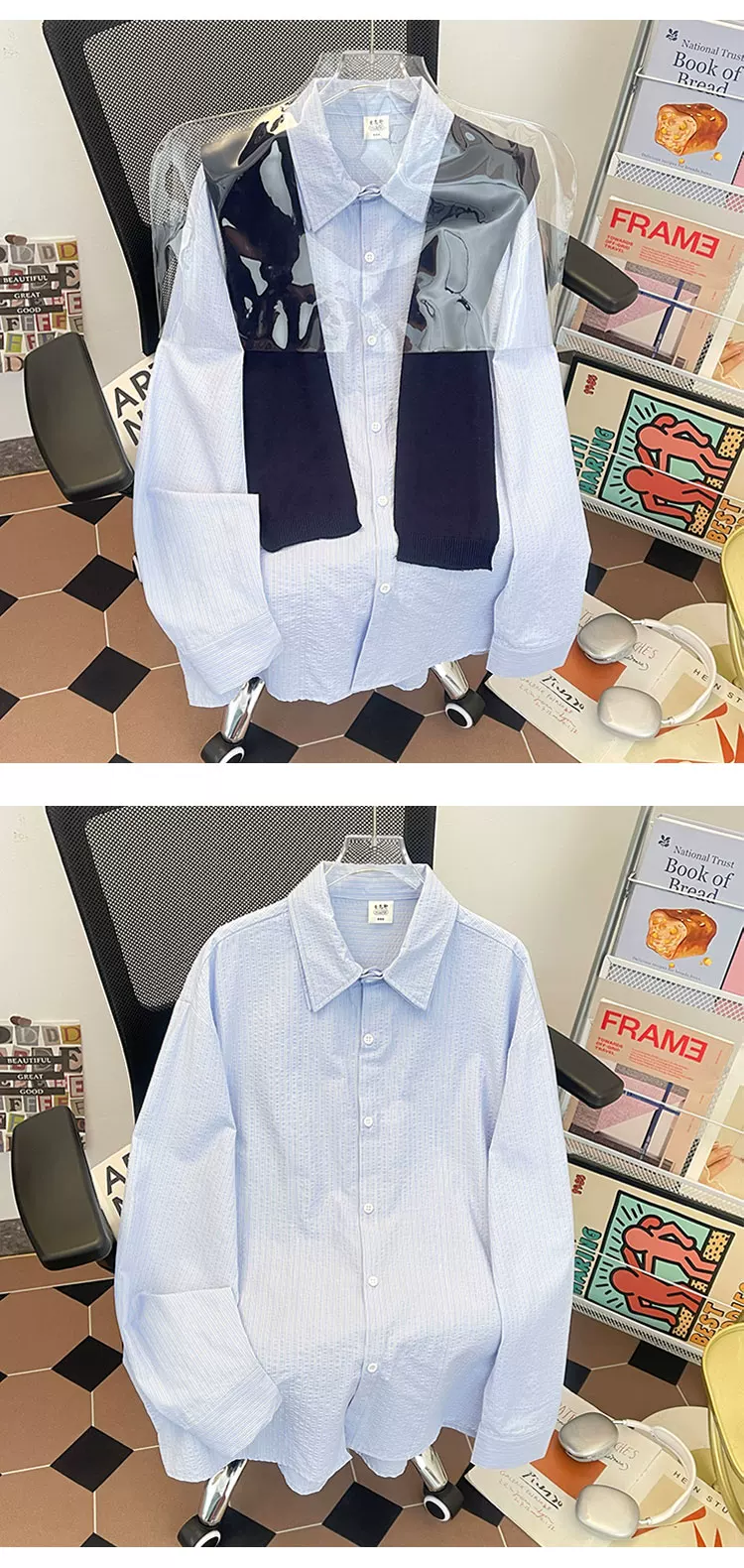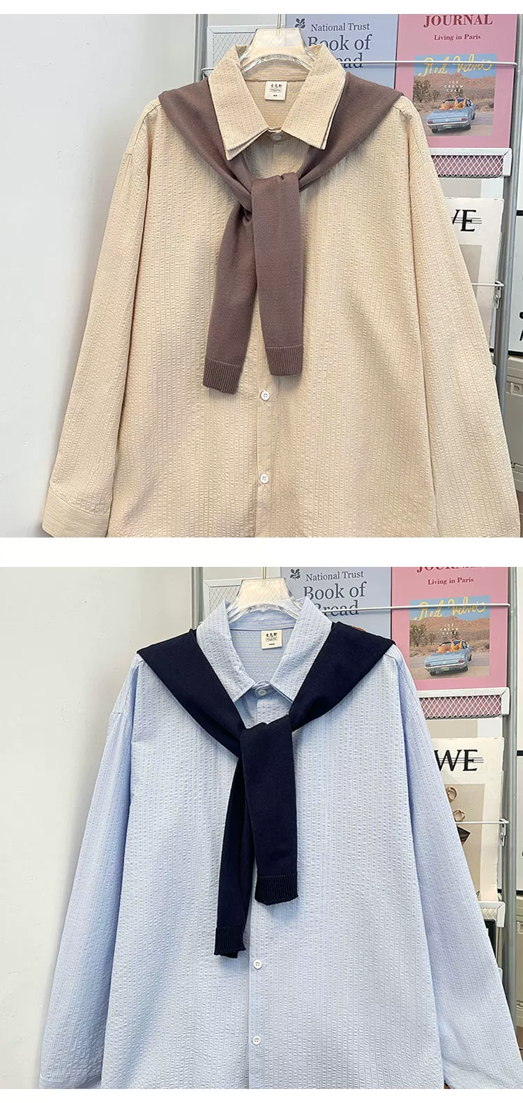 - Áo sơ mi sọc có thể tháo rời dành cho nam, áo sơ mi dài tay đa năng hợp thời trang xuân thu, áo khoác thường ngày phong cách retro Nhật Bản.