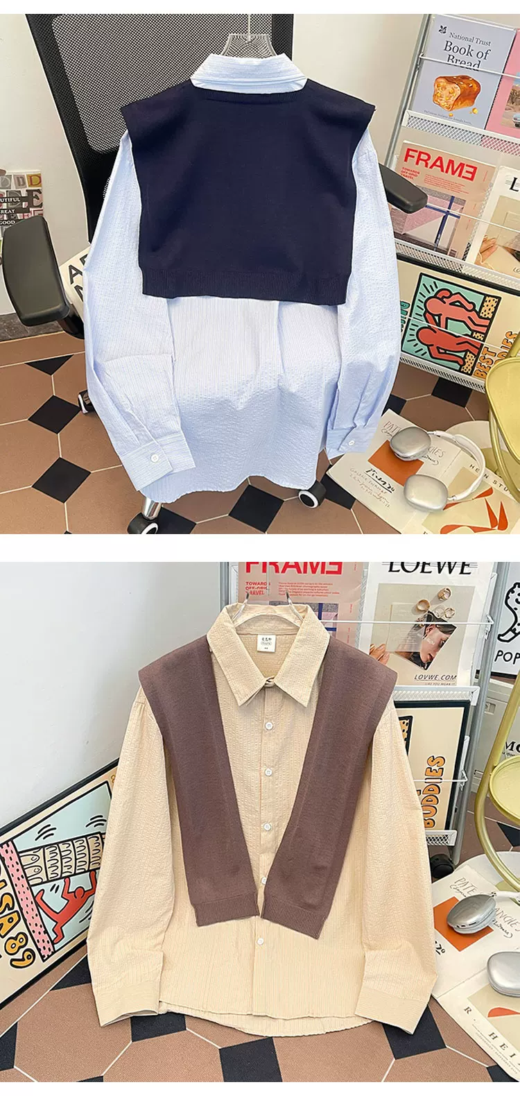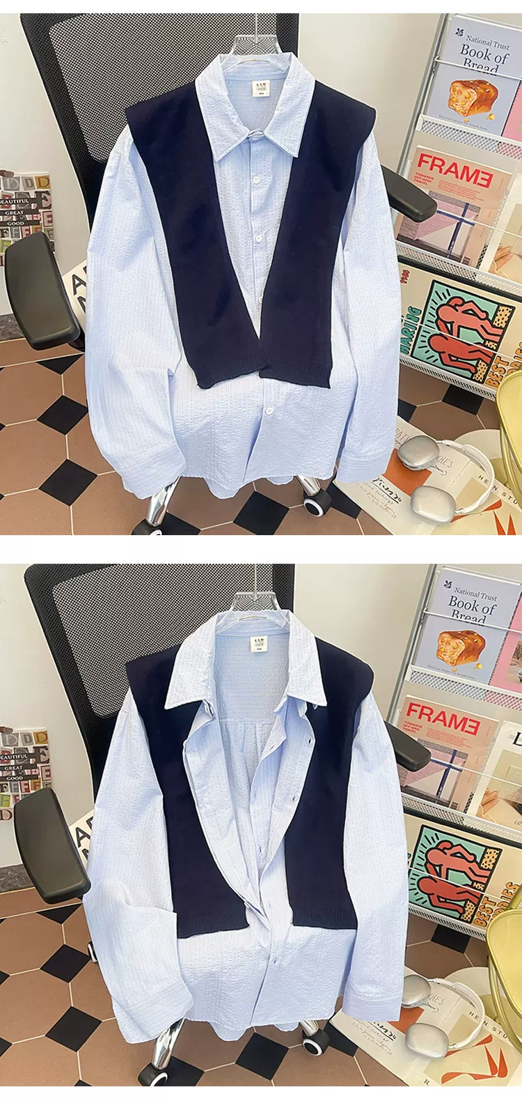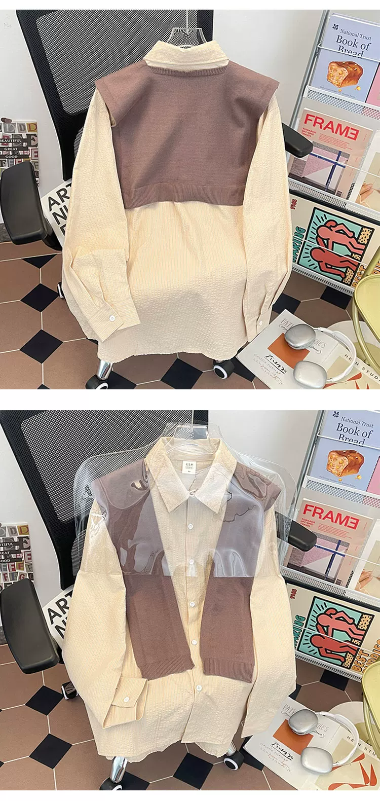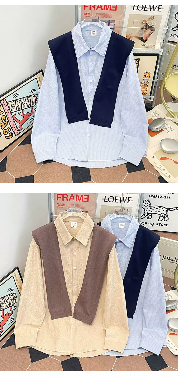 - Áo sơ mi sọc có thể tháo rời dành cho nam, áo sơ mi dài tay đa năng hợp thời trang xuân thu, áo khoác thường ngày phong cách retro Nhật Bản.