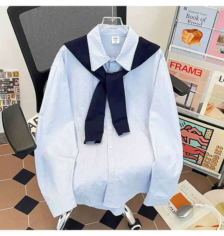 Áo sơ mi sọc có thể tháo rời dành cho nam, áo sơ mi dài tay đa năng hợp thời trang xuân thu, áo khoác thường ngày phong cách retro Nhật Bản.