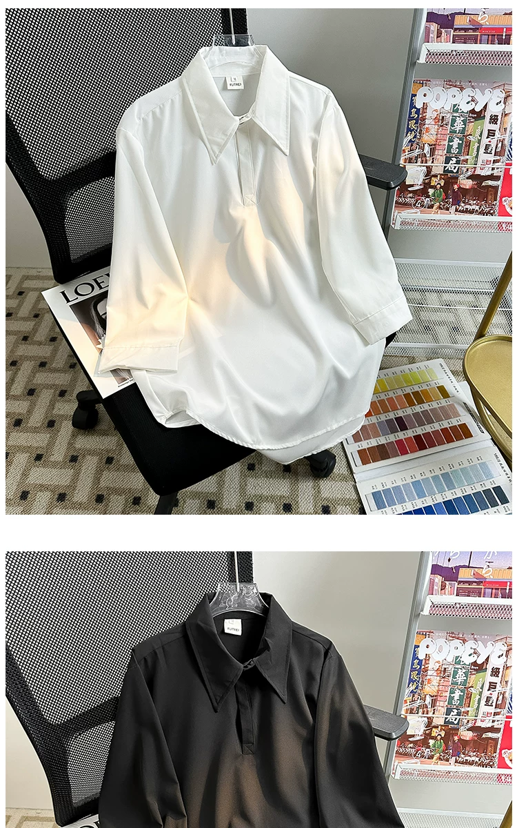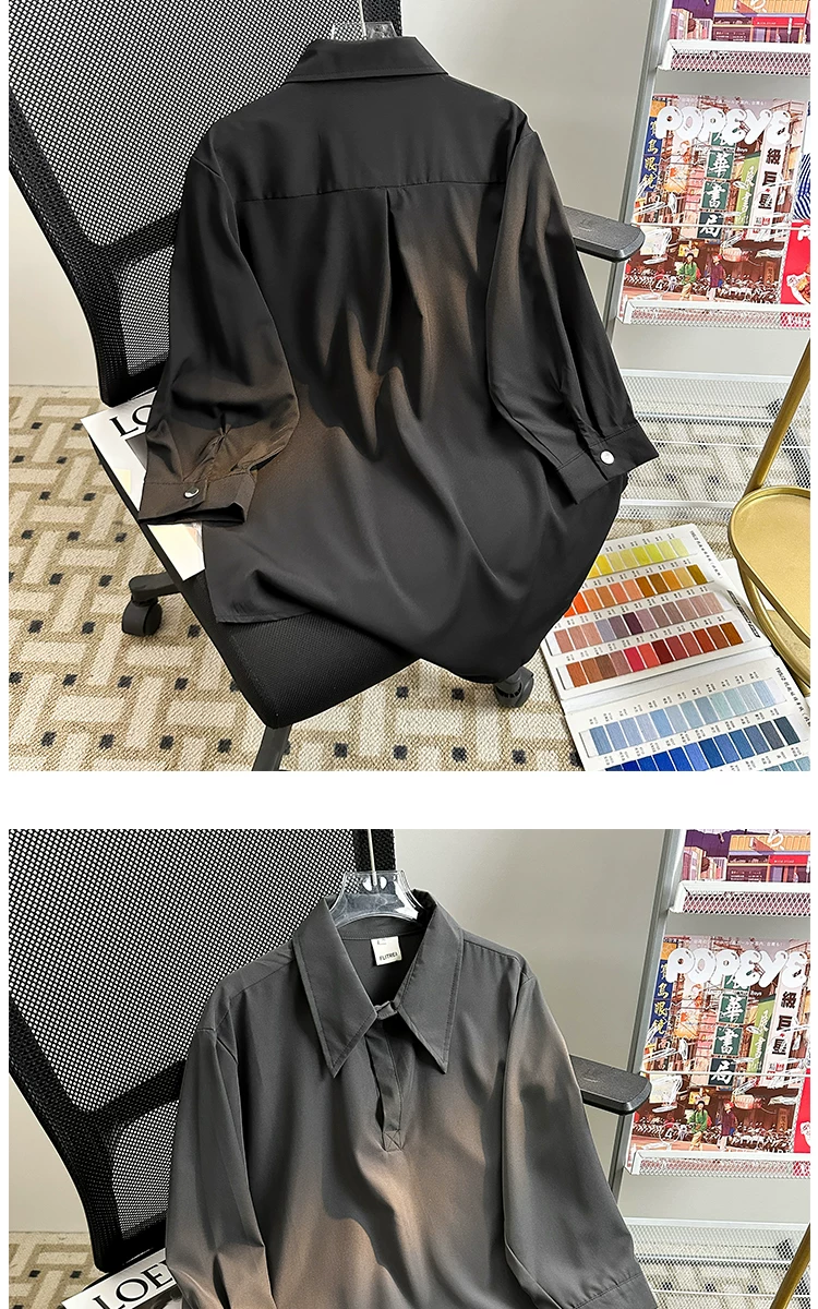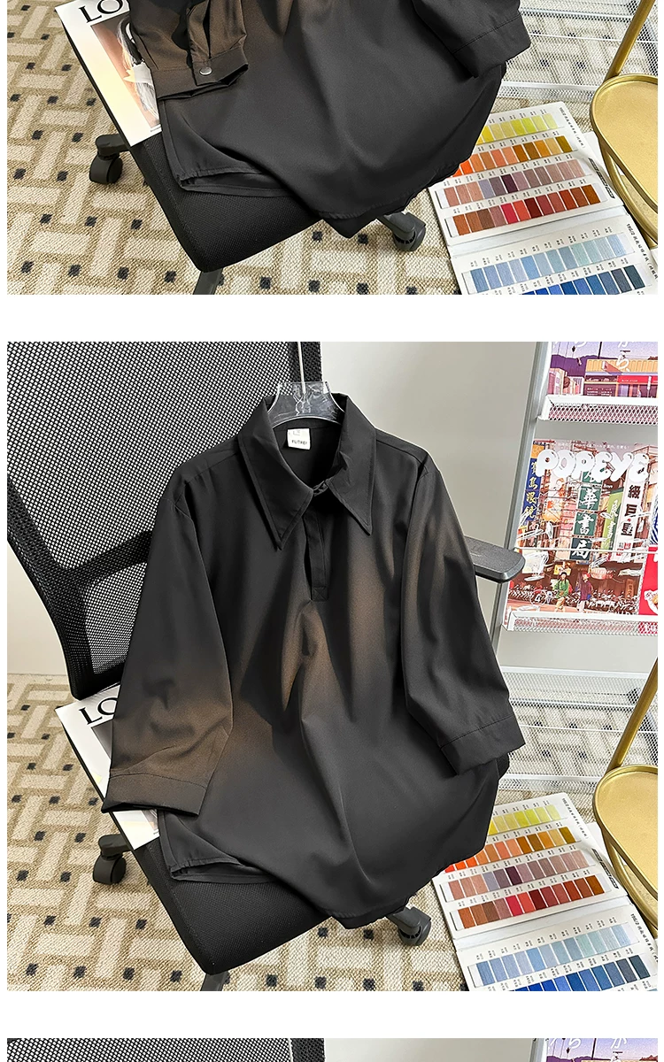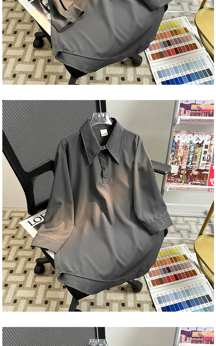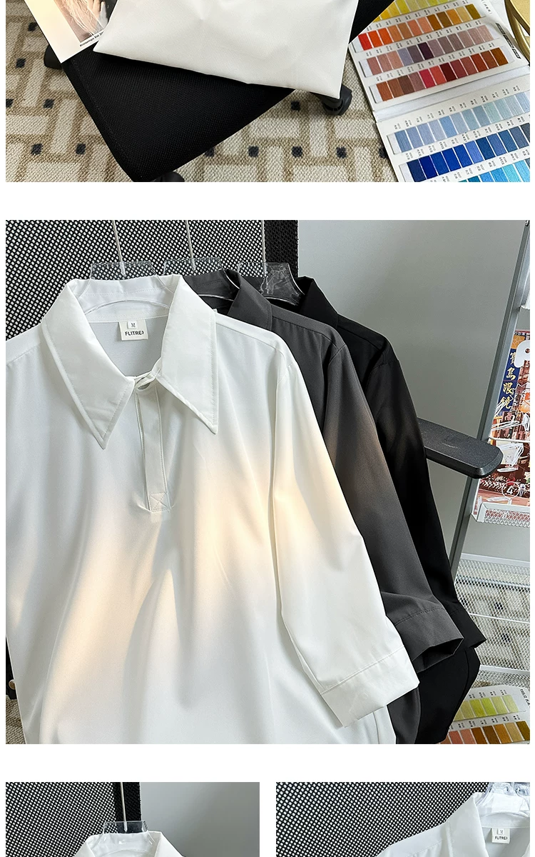 Áo sơ mi tay ba phần tư bằng vải lụa mùa hè dành cho nam, áo sơ mi dáng rộng, kiểu dáng Nhật Bản, phong cách thời trang, áo nửa tay mát mẻ, thoải mái.