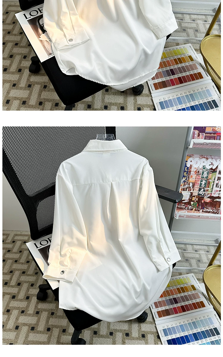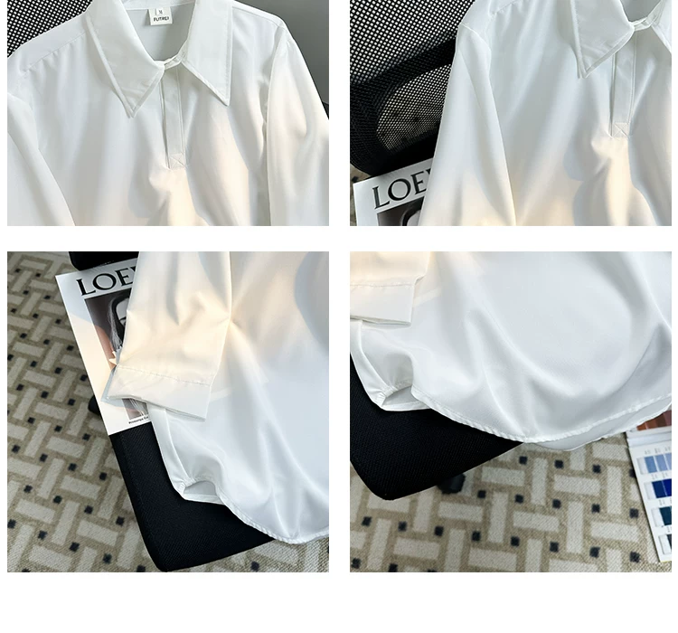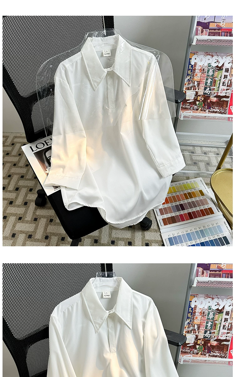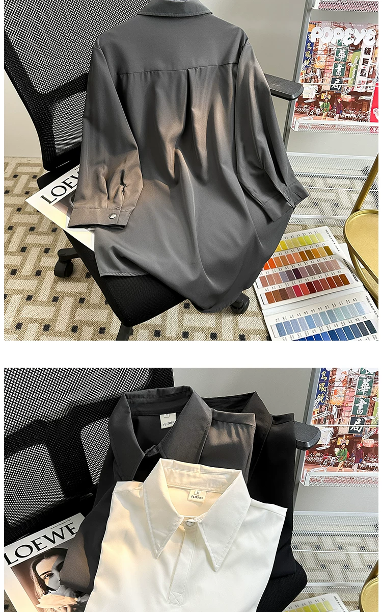 - Áo sơ mi tay ba phần tư bằng vải lụa mùa hè dành cho nam, áo sơ mi dáng rộng, kiểu dáng Nhật Bản, phong cách thời trang, áo nửa tay mát mẻ, thoải mái.