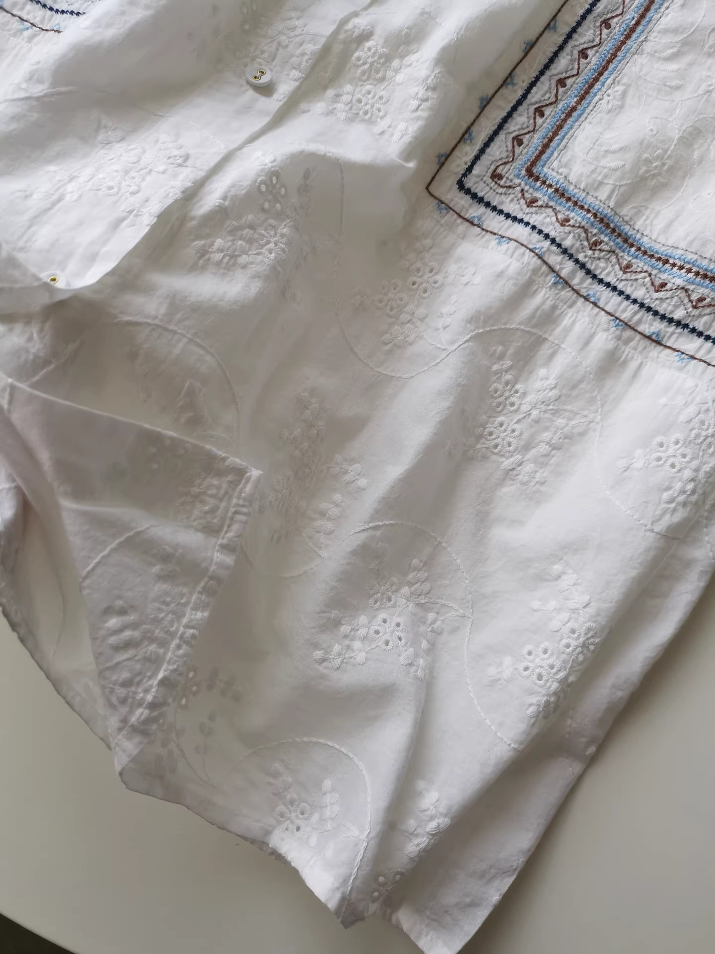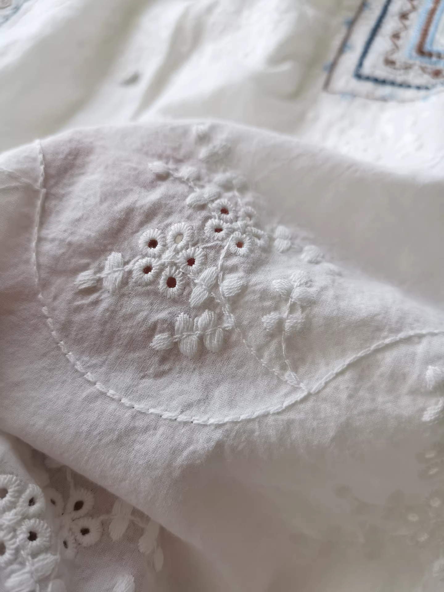 - Áo sơ mi thêu toàn thân tinh tế, phong cách thiết kế độc đáo, áo sơ mi cotton nguyên chất đa năng phong cách văn học Pháp dành cho nữ.