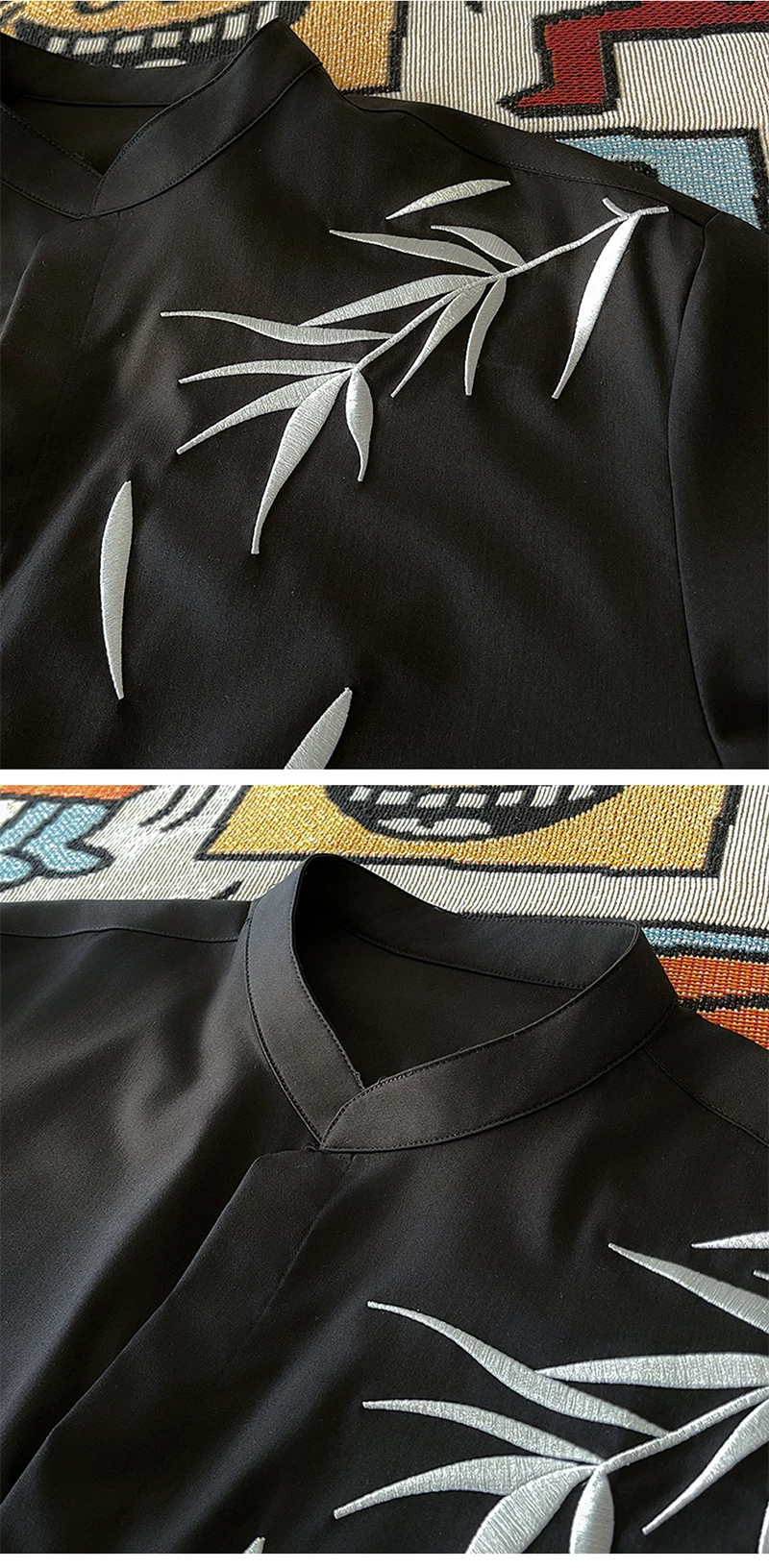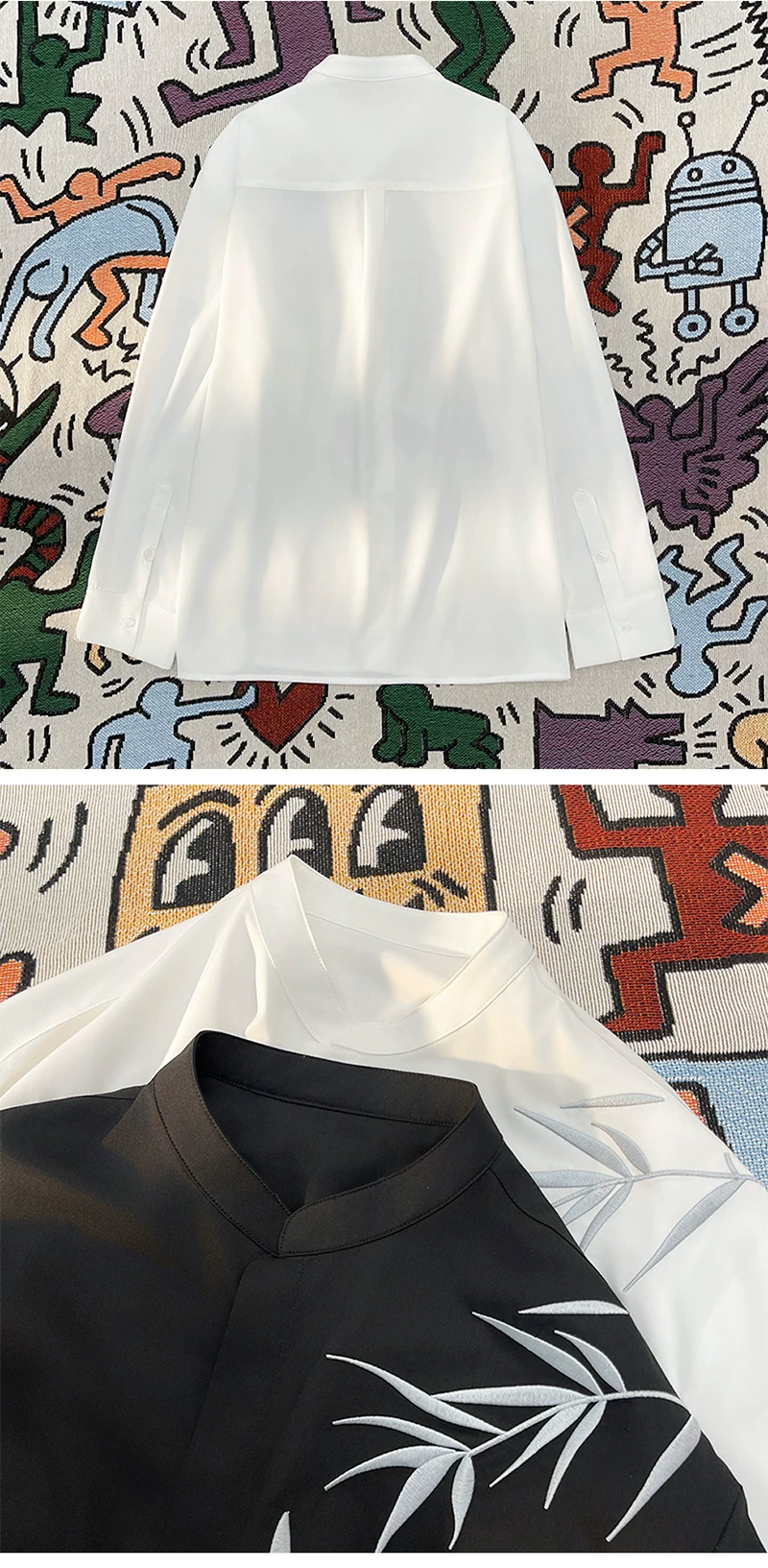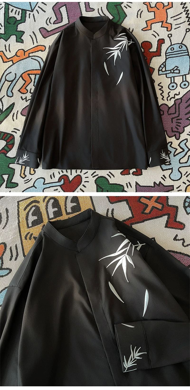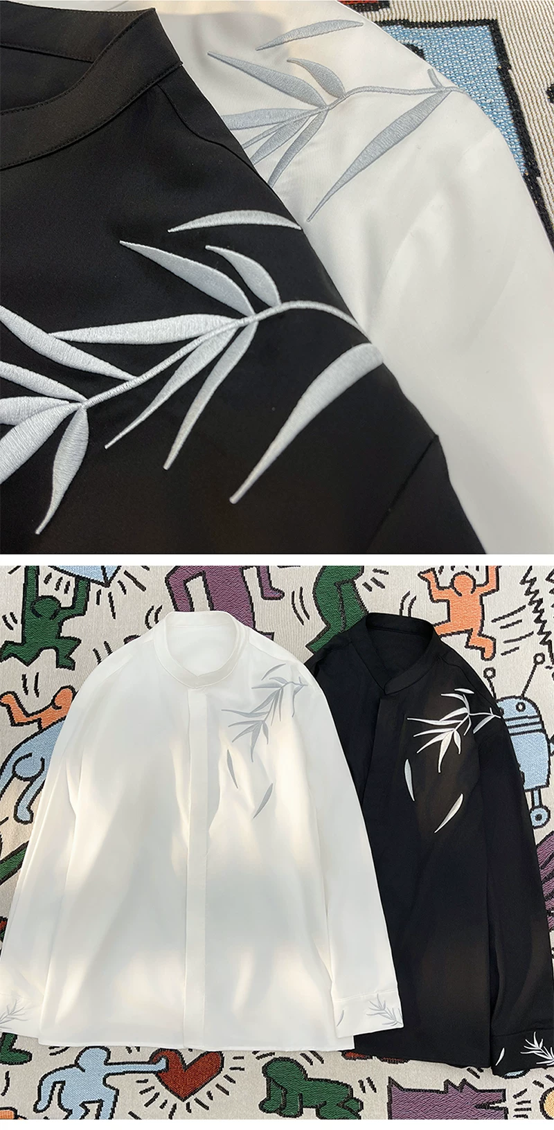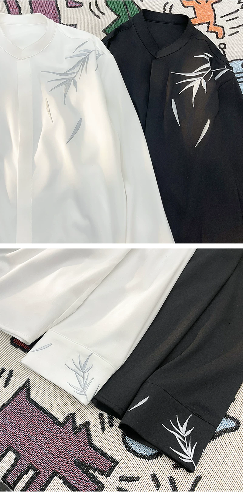 - Áo sơ mi thêu tre phong cách Trung Quốc dành cho nam, áo sơ mi cổ đứng dài tay phong cách Trung Quốc mới, quần áo cặp đôi hợp thời trang mùa xuân thu.