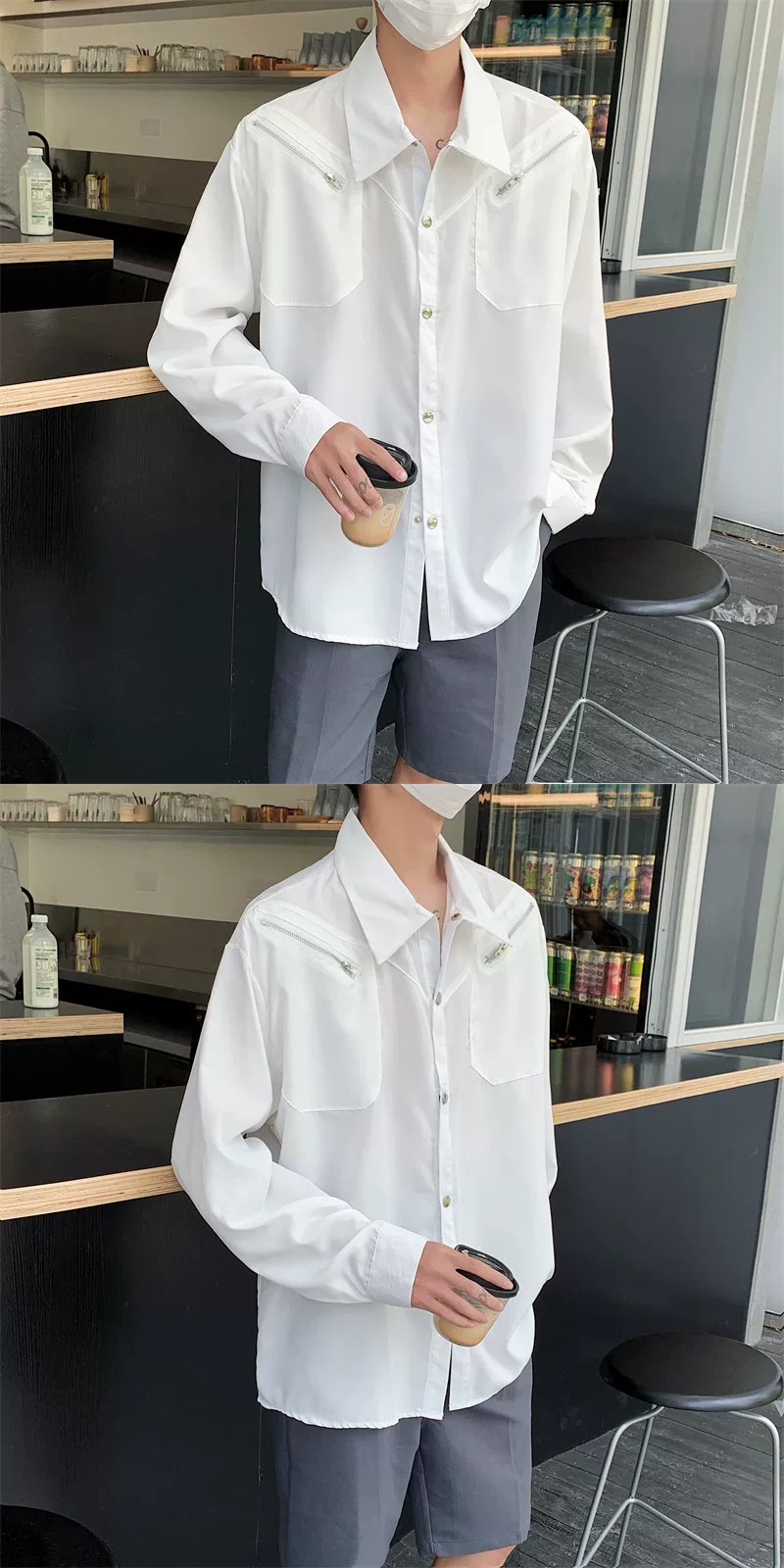 Áo sơ mi thiết kế độc đáo dành cho nam, phong cách và cá tính, chất liệu mềm mại, áo sơ mi dài tay kiểu Hàn Quốc thời thượng mùa hè.