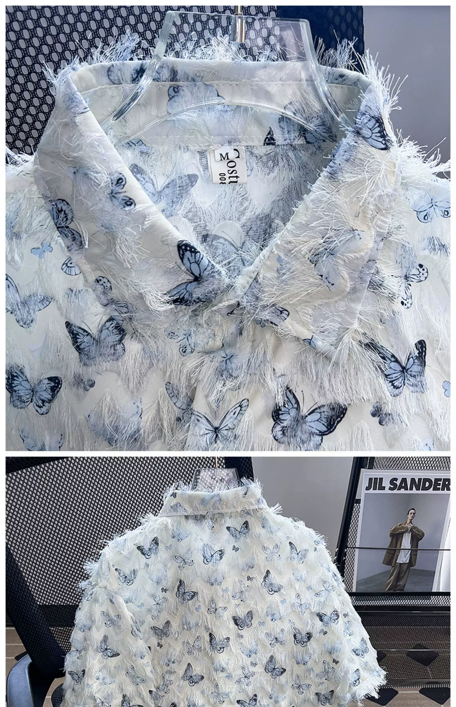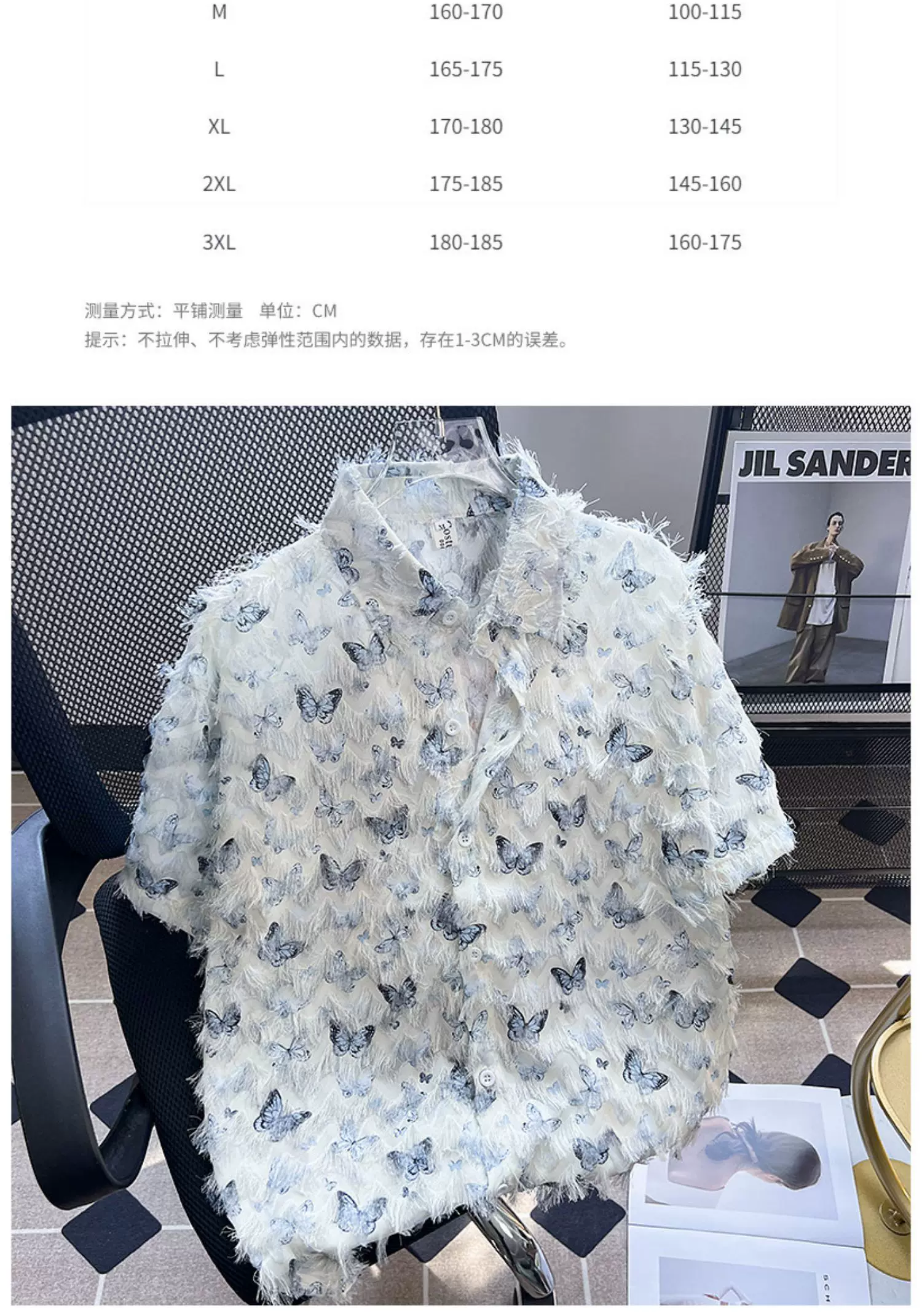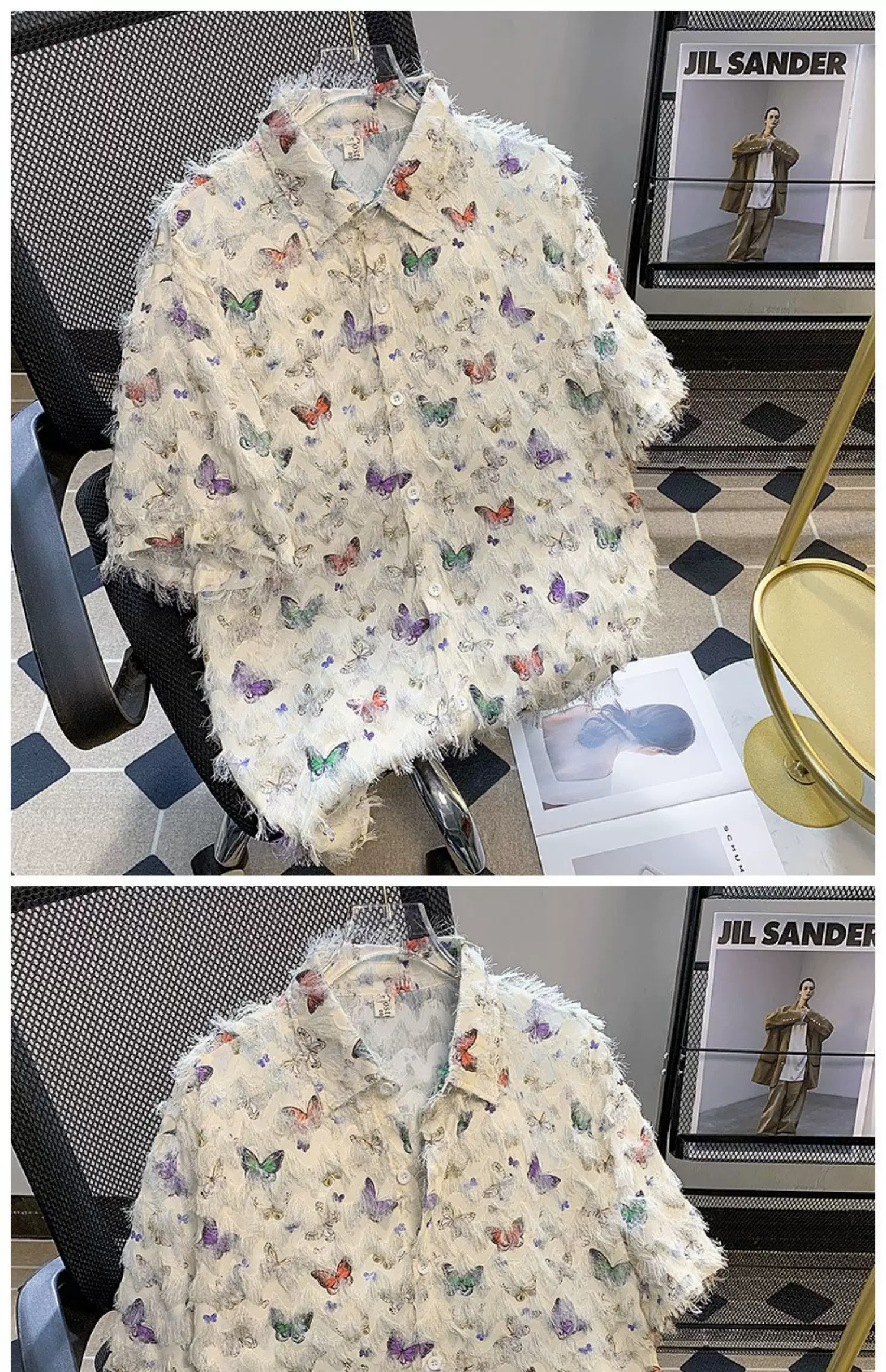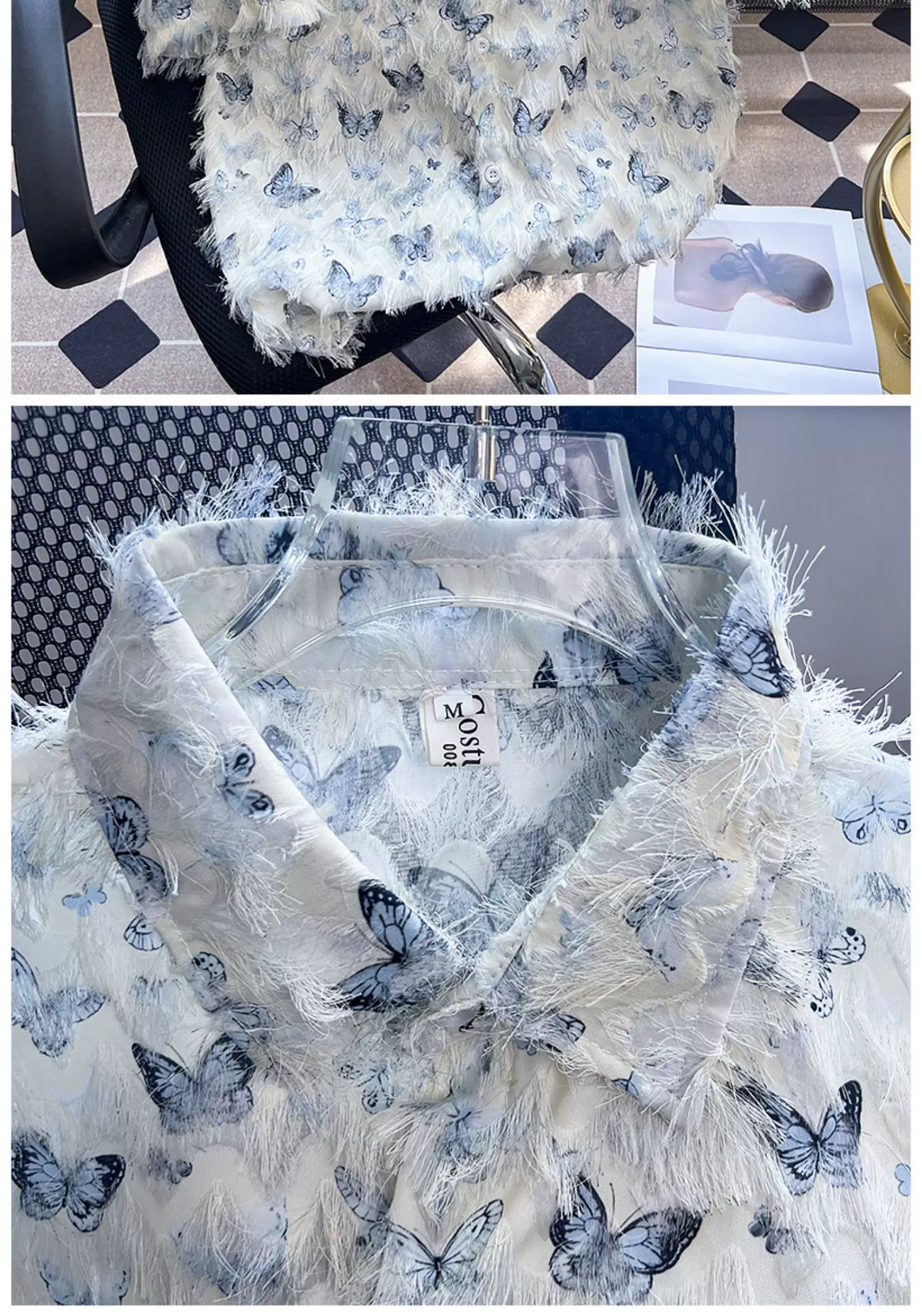 - Áo sơ mi thiết kế hình bướm tua rua, áo sơ mi ngắn tay mùa hè nam nữ, áo kiểu dáng rộng rãi hợp thời trang cao cấp hàng hiệu