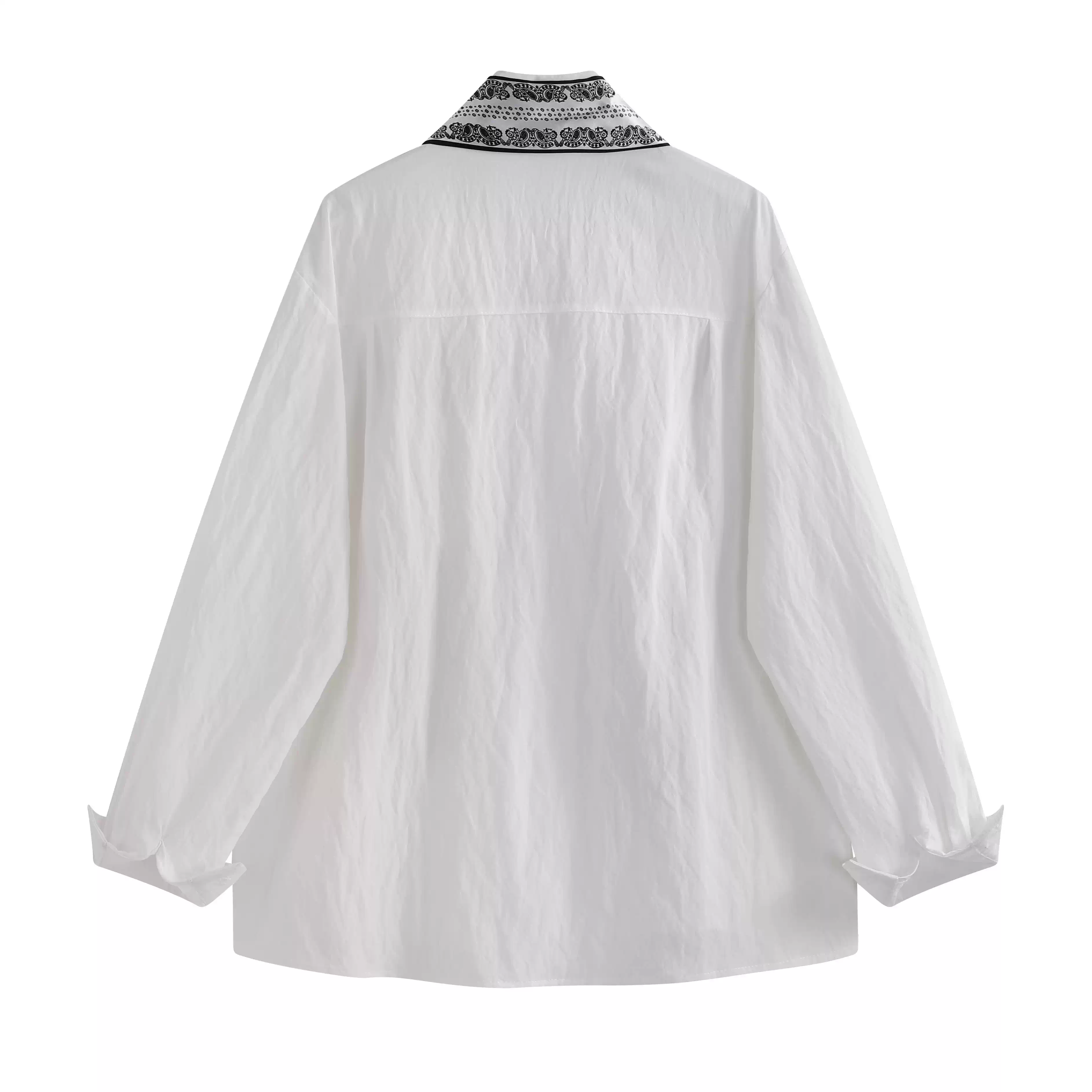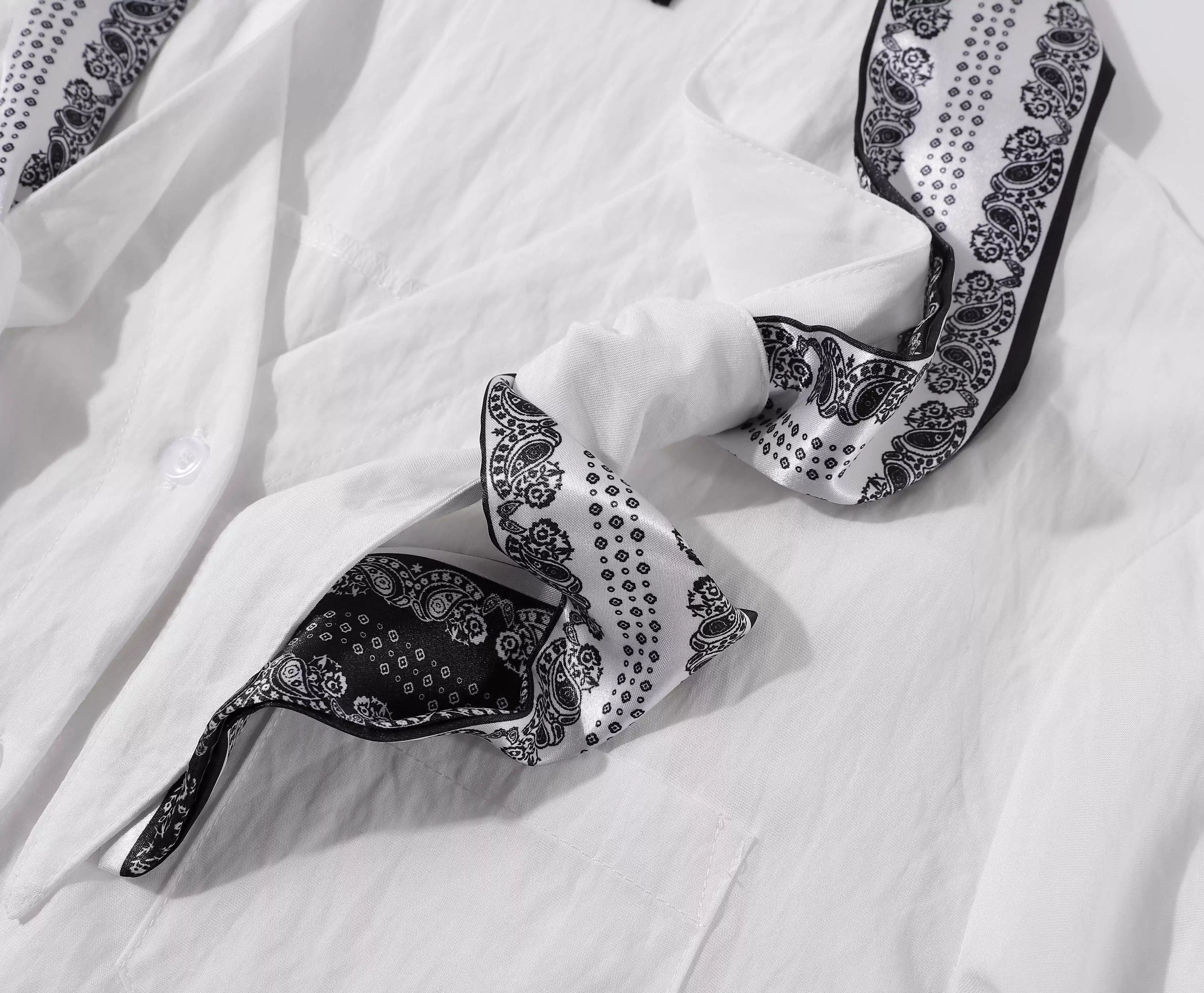 - Áo sơ mi trắng dài tay cổ polo thanh lịch phong cách Pháp dành cho nữ, áo sơ mi khăn quàng cổ đơn giản đa năng mùa thu
