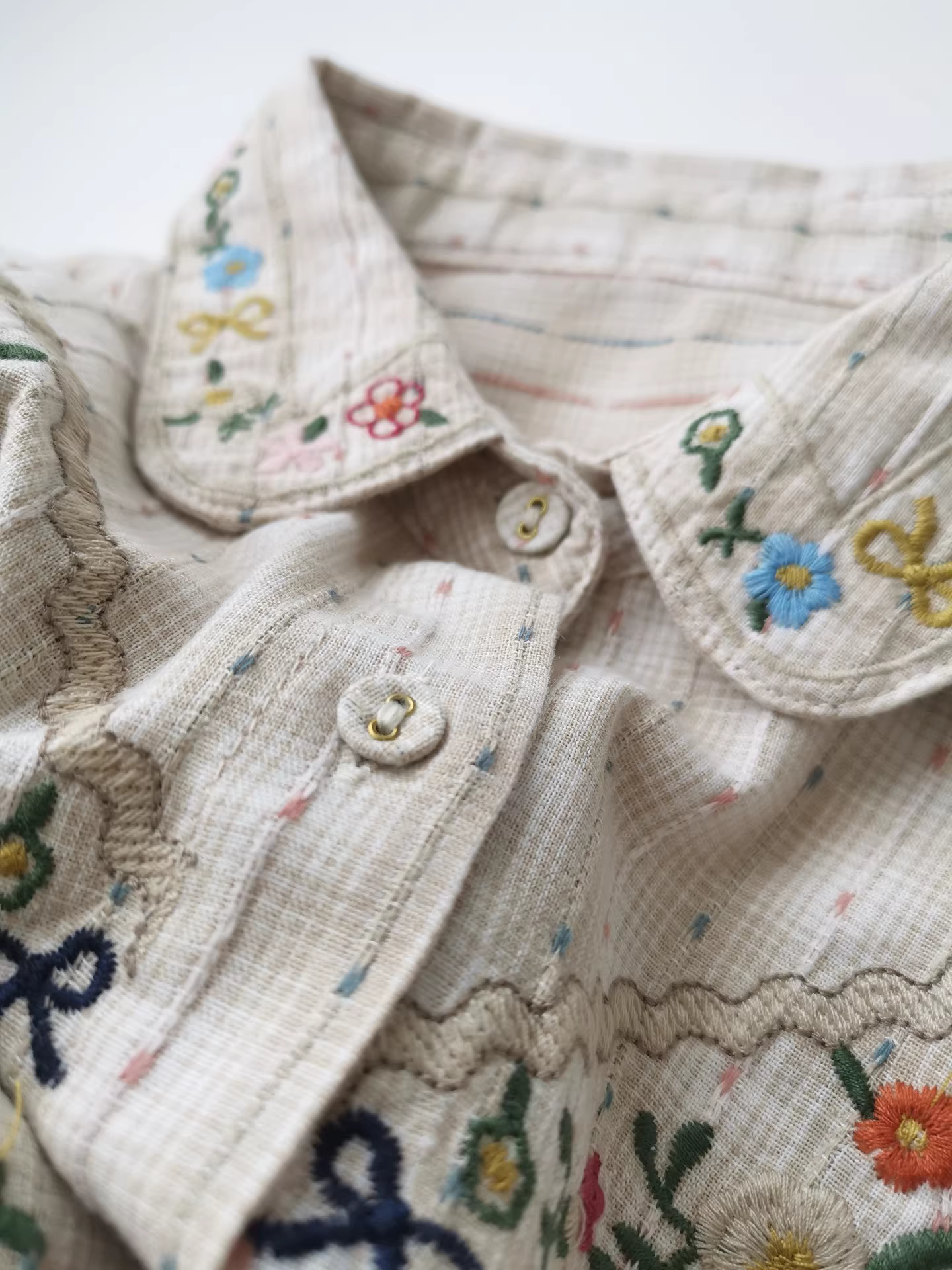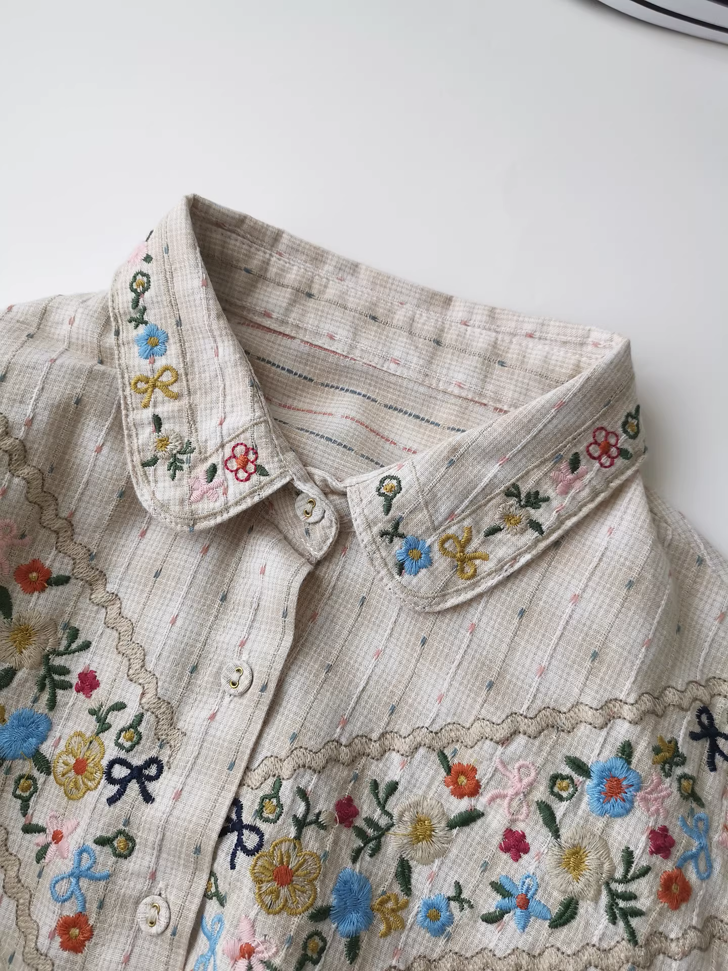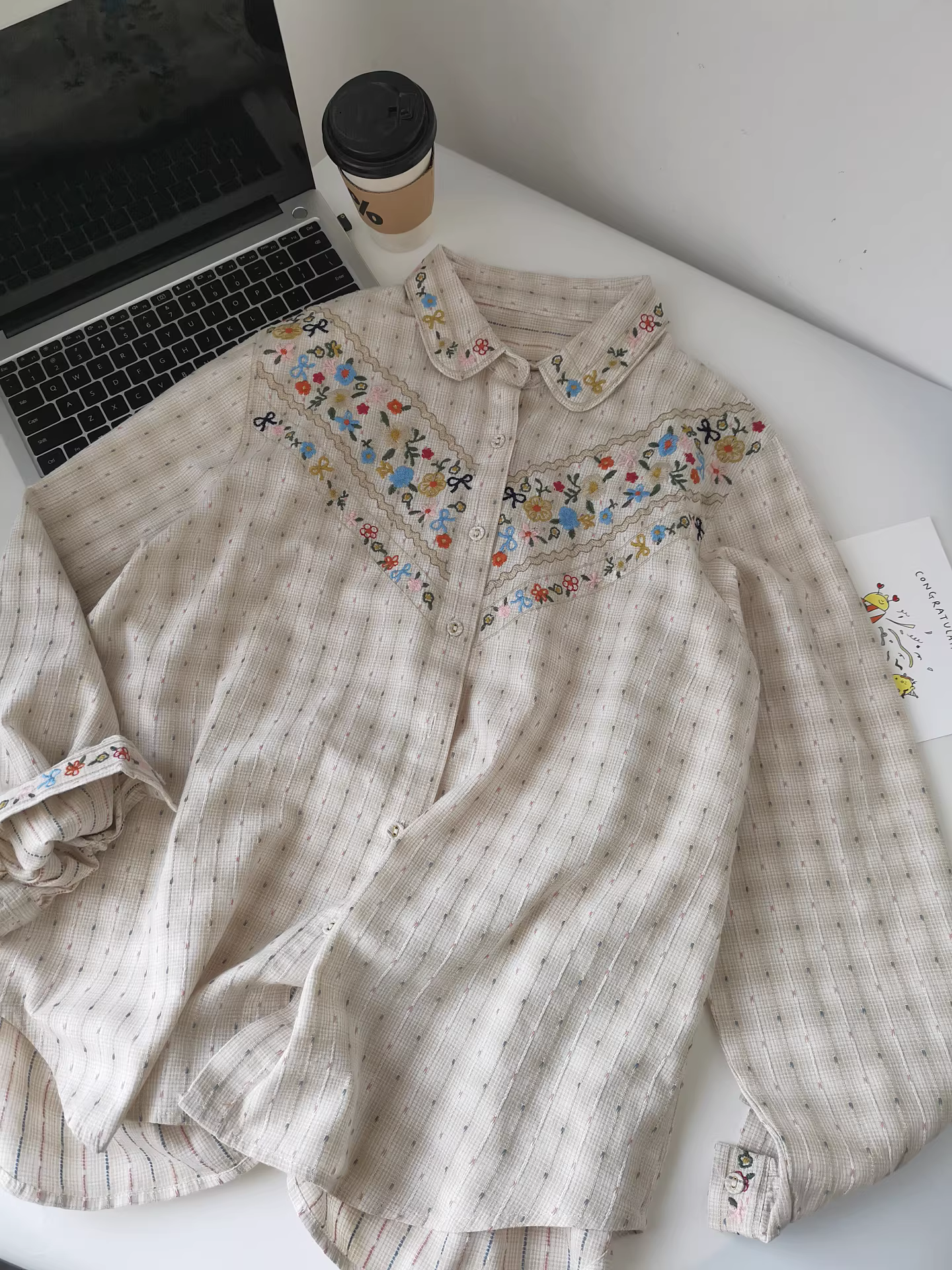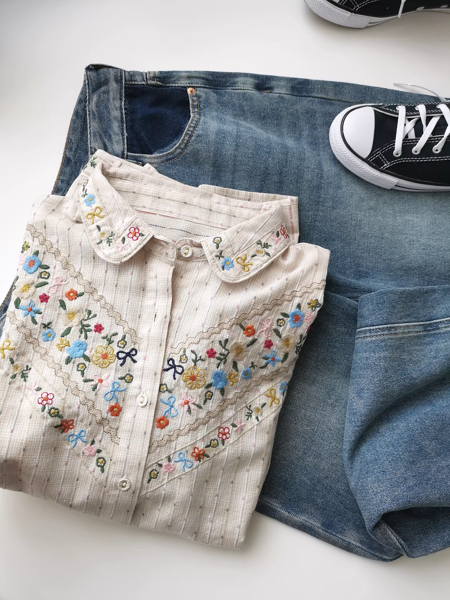 - Áo sơ mi trắng rộng thùng thình thêu họa tiết Jacquard nhẹ nhàng, phối lớp, thích hợp đi làm mùa thu