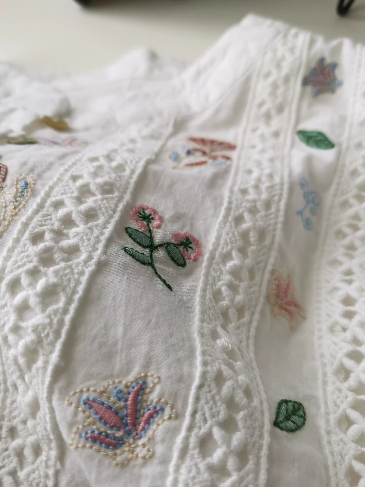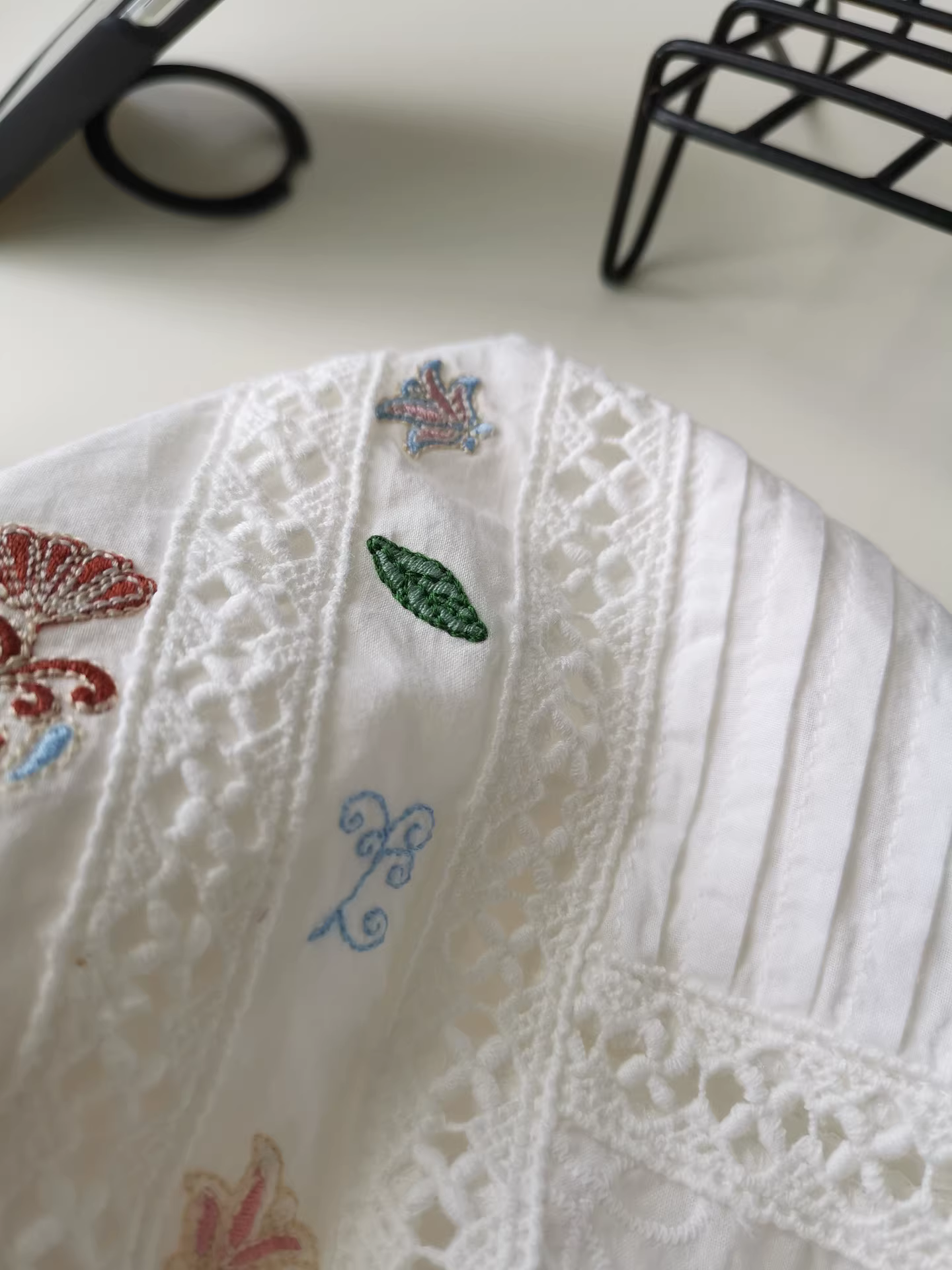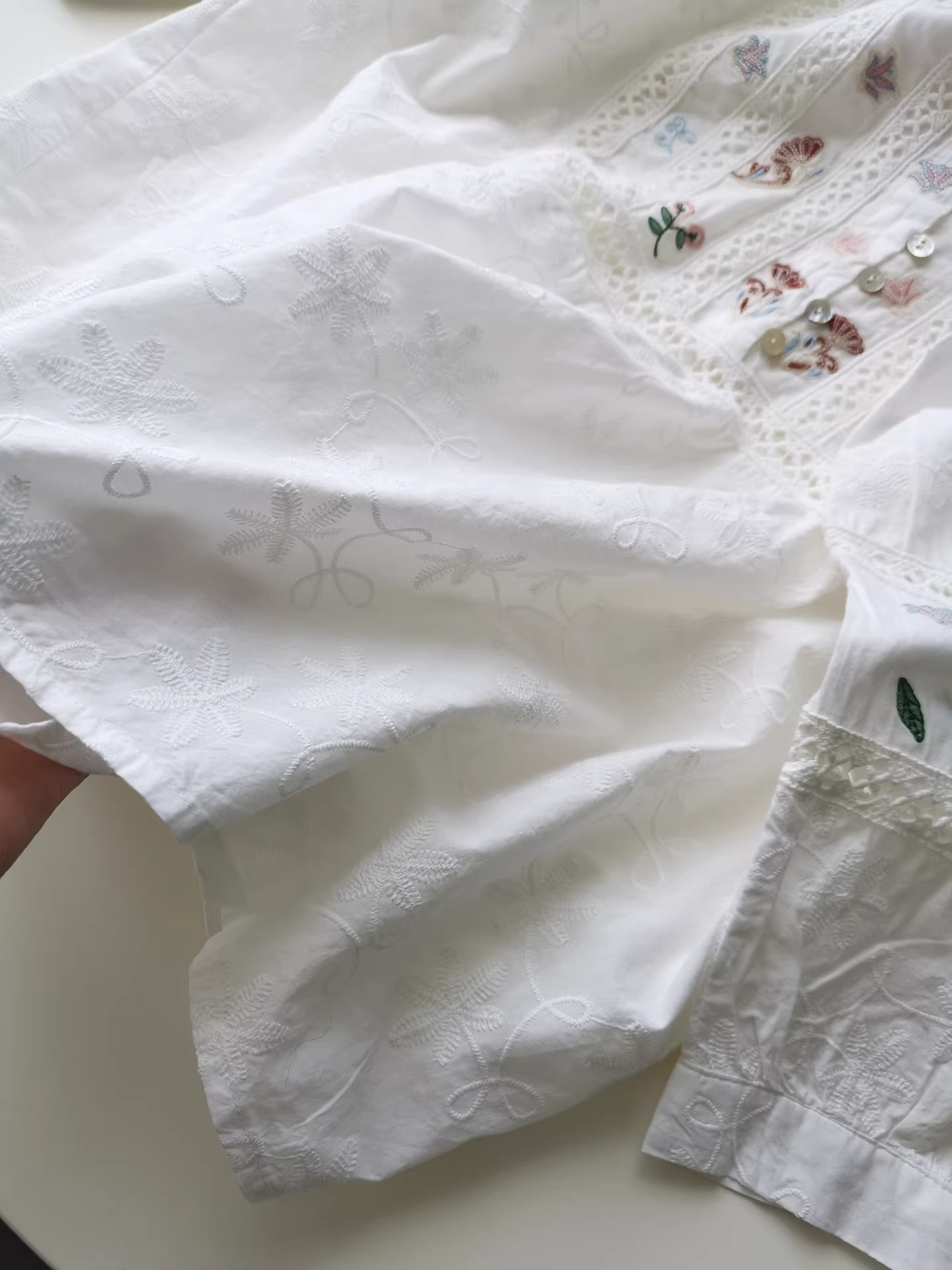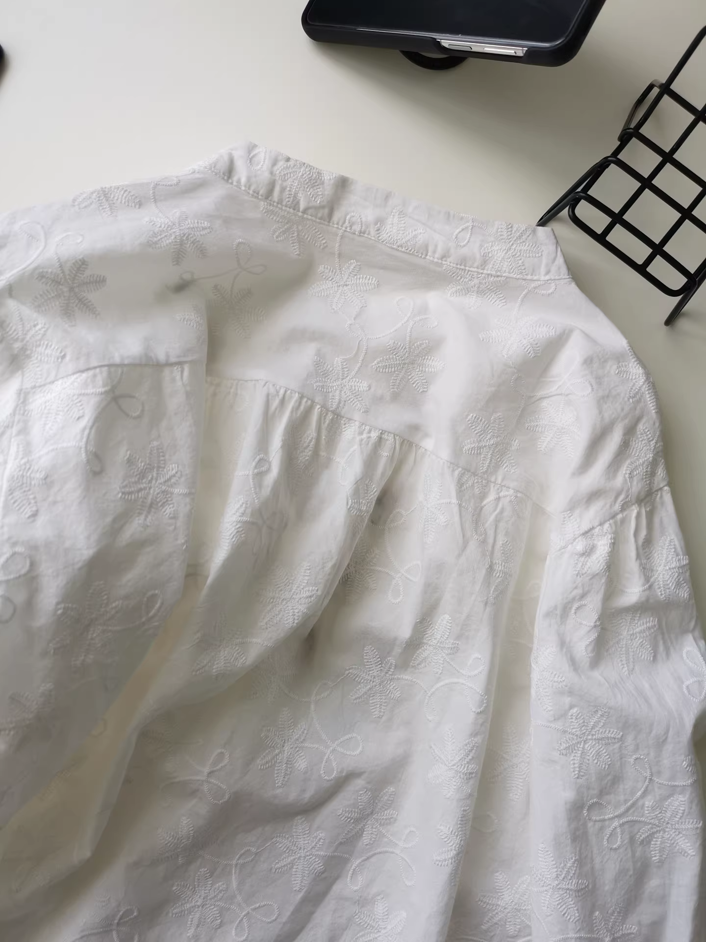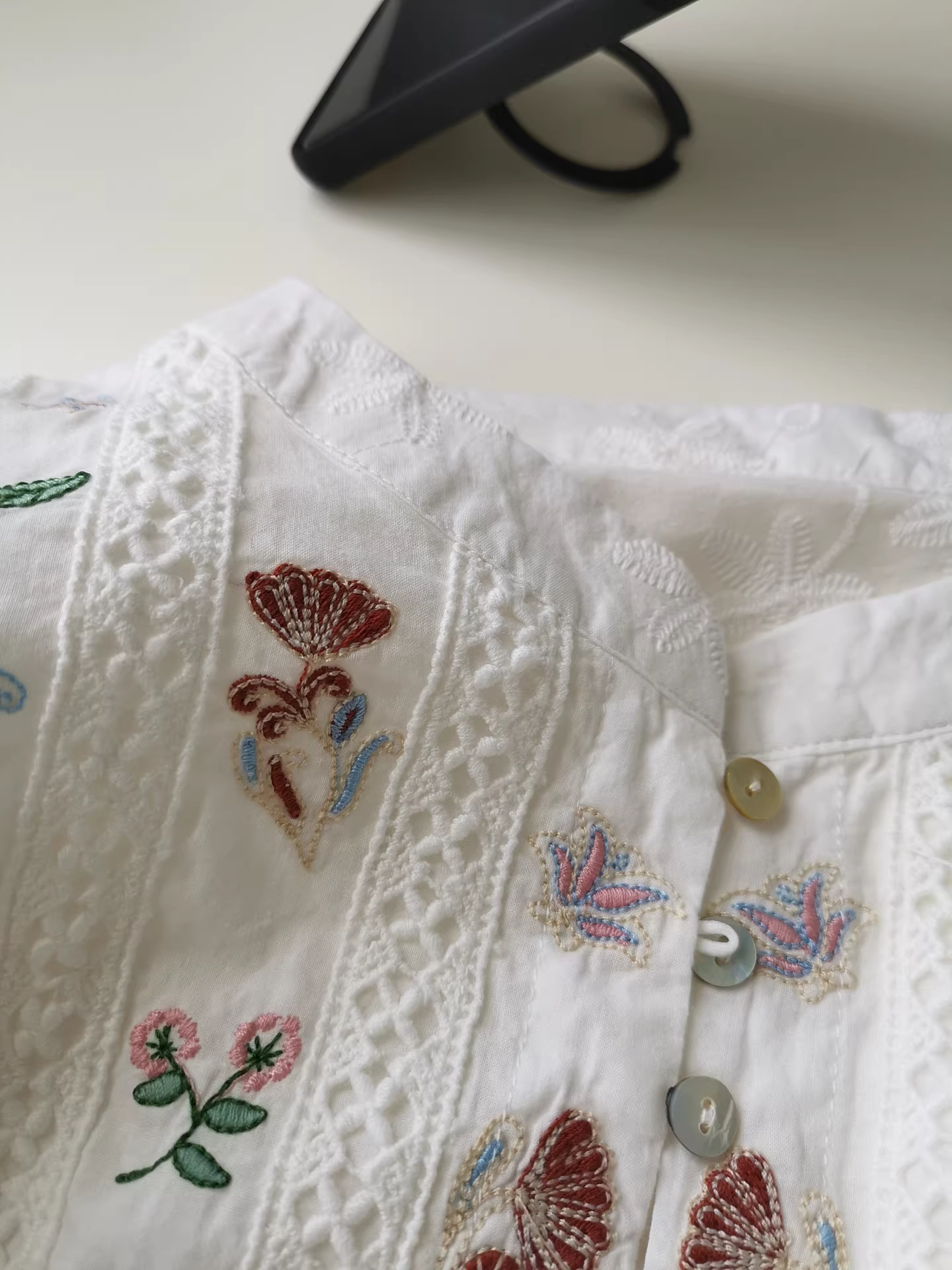 - Áo sơ mi trắng thêu hoa tinh tế, thiết kế độc đáo, áo kiểu Pháp đa năng, dáng rộng, phong cách nghệ thuật dành cho nữ