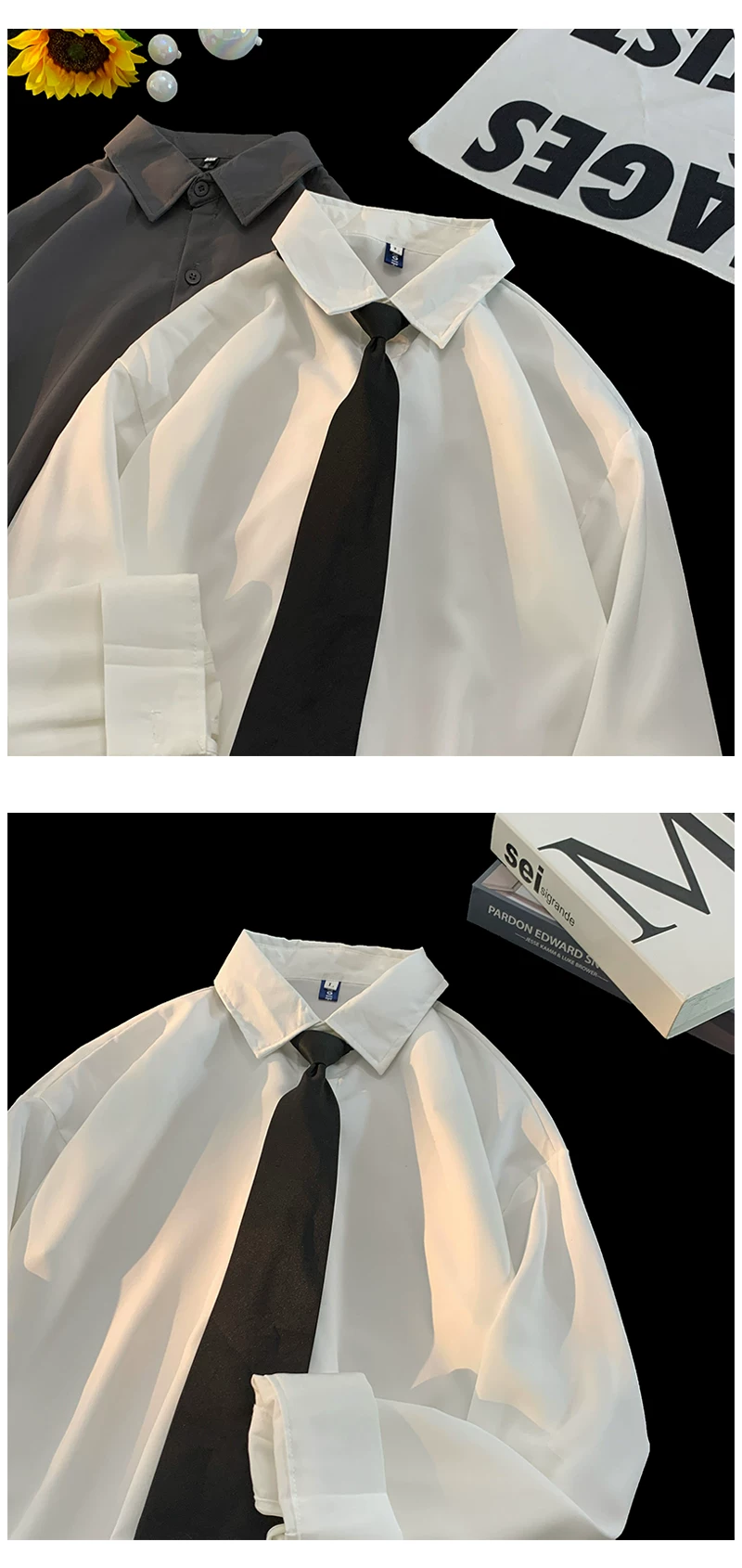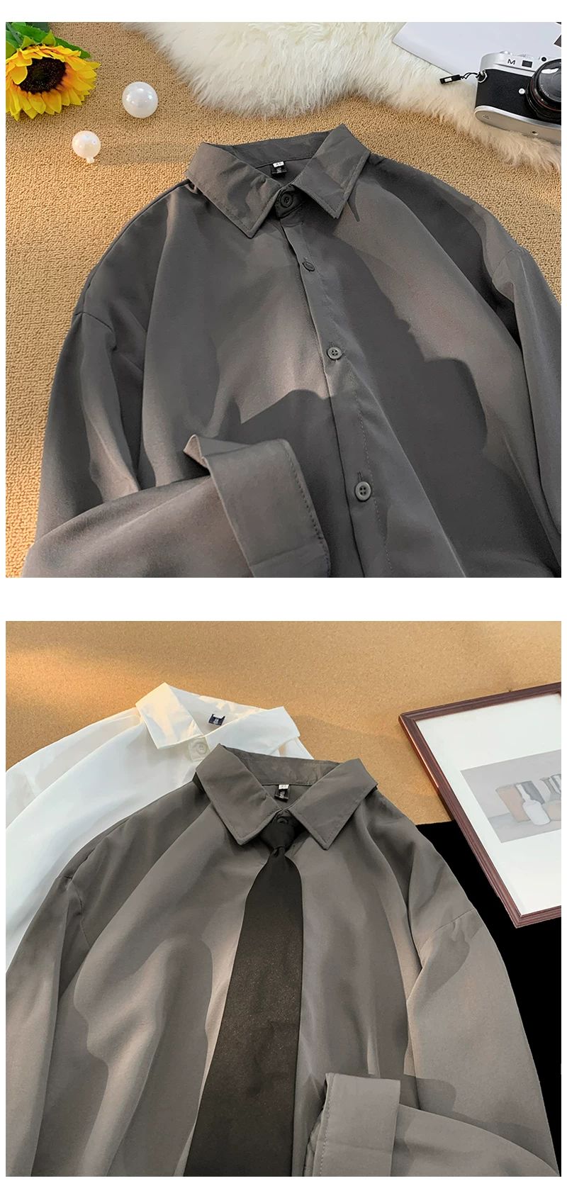 - Áo sơ mi trắng trơn DK mùa xuân thu dành cho nam, áo sơ mi dài tay dáng rộng phong cách Nhật Bản, áo kiểu trẻ trung hợp thời trang.
