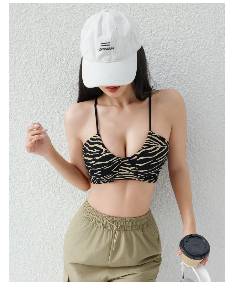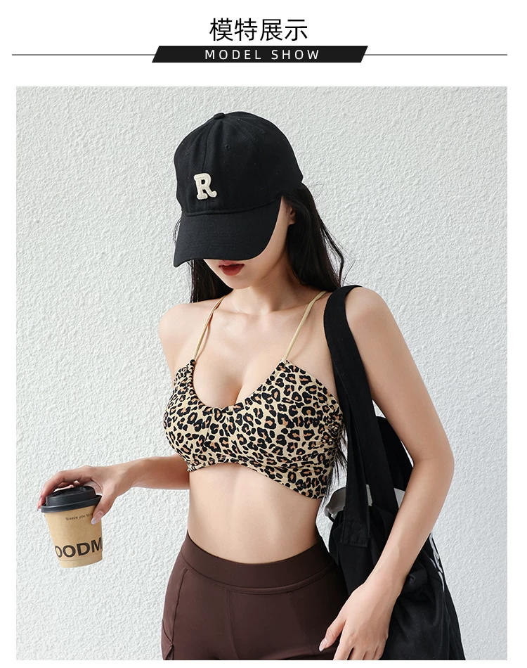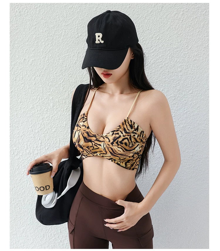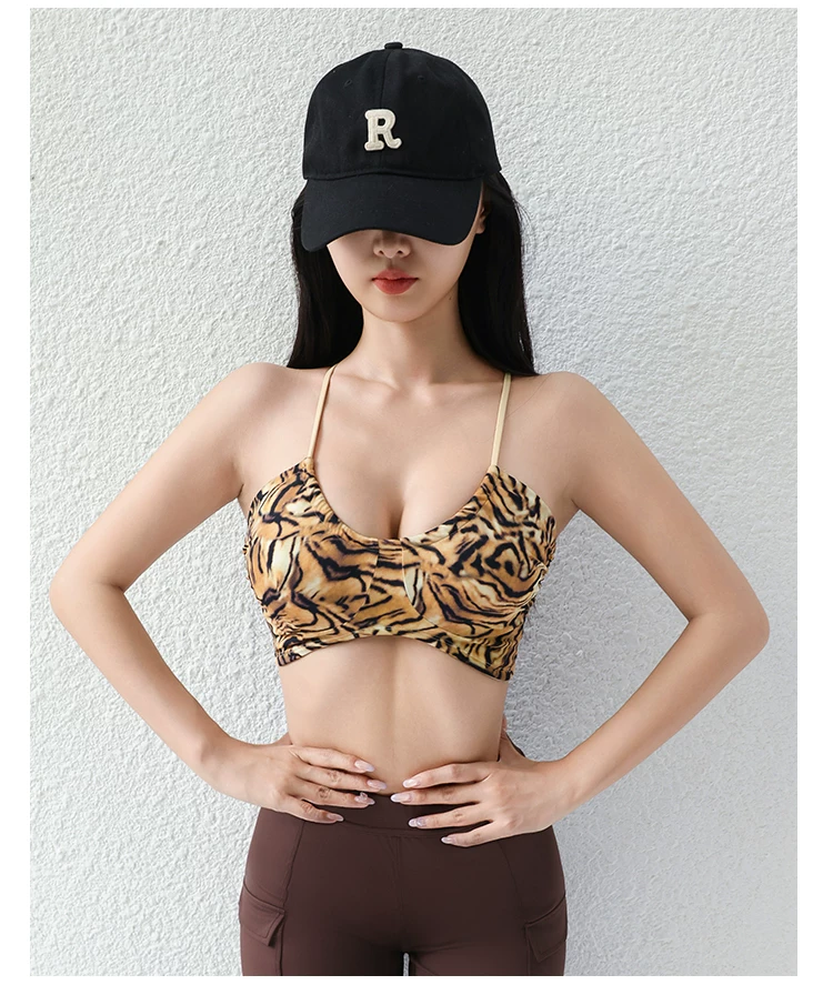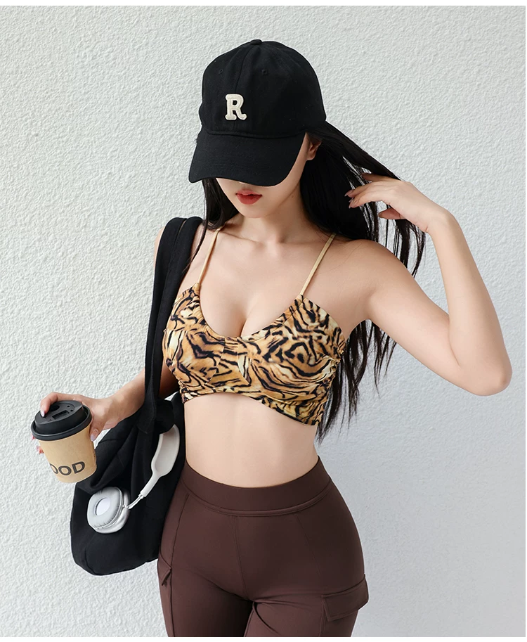 Áo tập gym, áo thể thao nữ kiểu dáng Âu Mỹ 2026, in họa tiết da báo, dây mảnh, lưng trần, cổ chữ U, xếp ly, gợi cảm