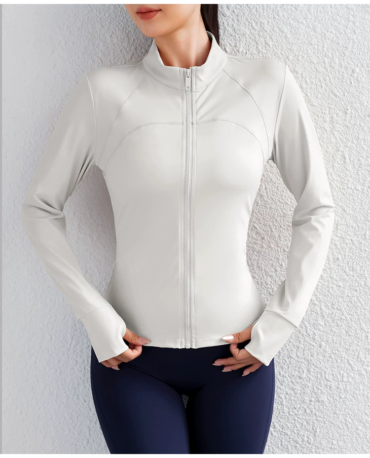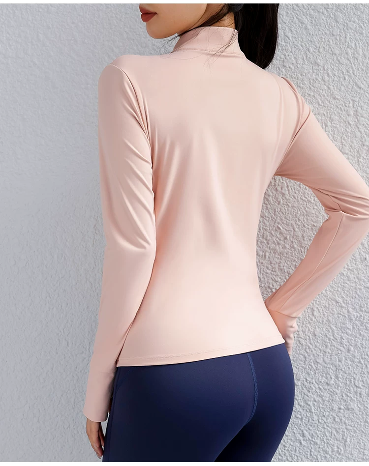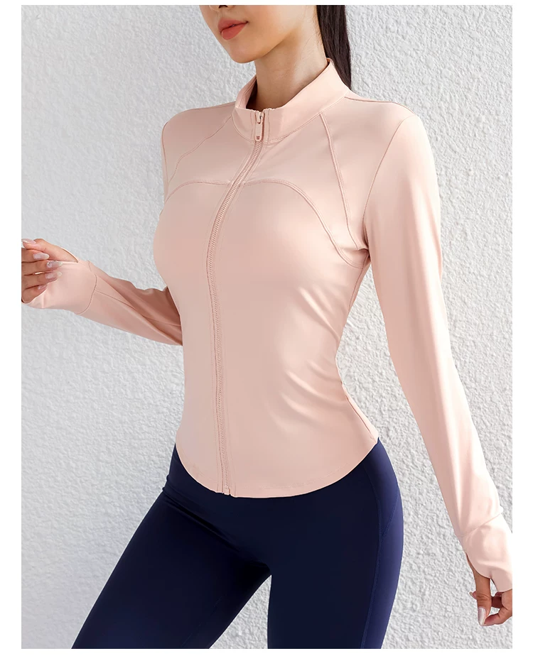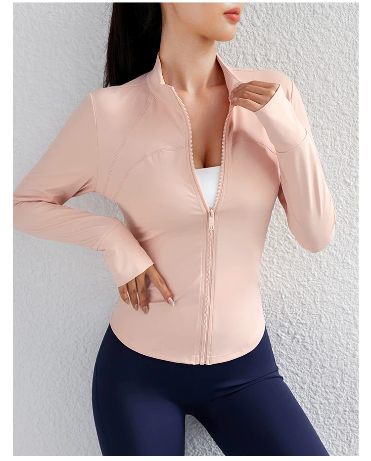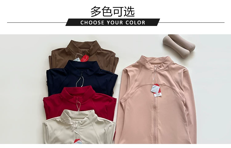 Áo tập thể dục có khóa kéo mùa thu/đông 2026 dành cho nữ, trang phục tập yoga dáng ôm cổ đứng, áo khoác thể thao chạy bộ ngoài trời dài tay.