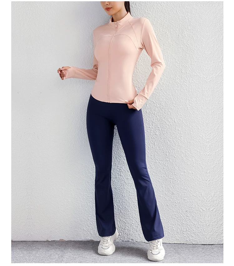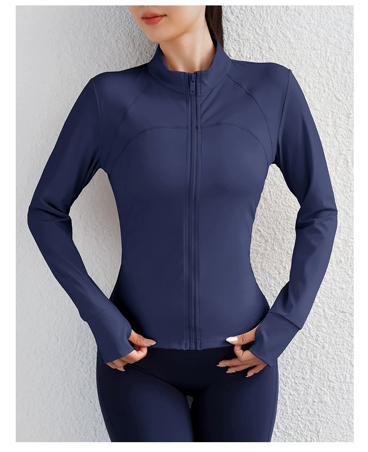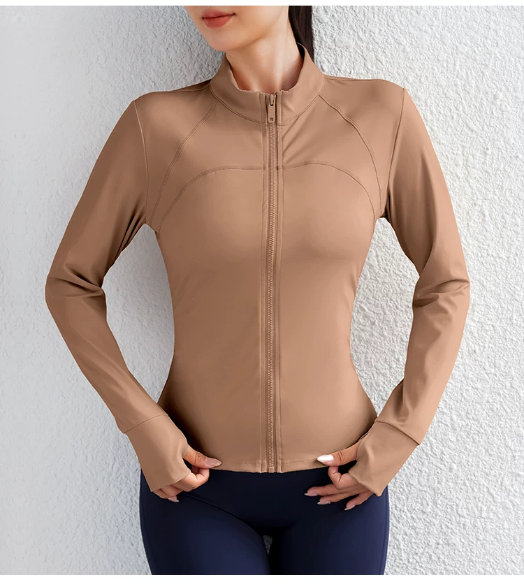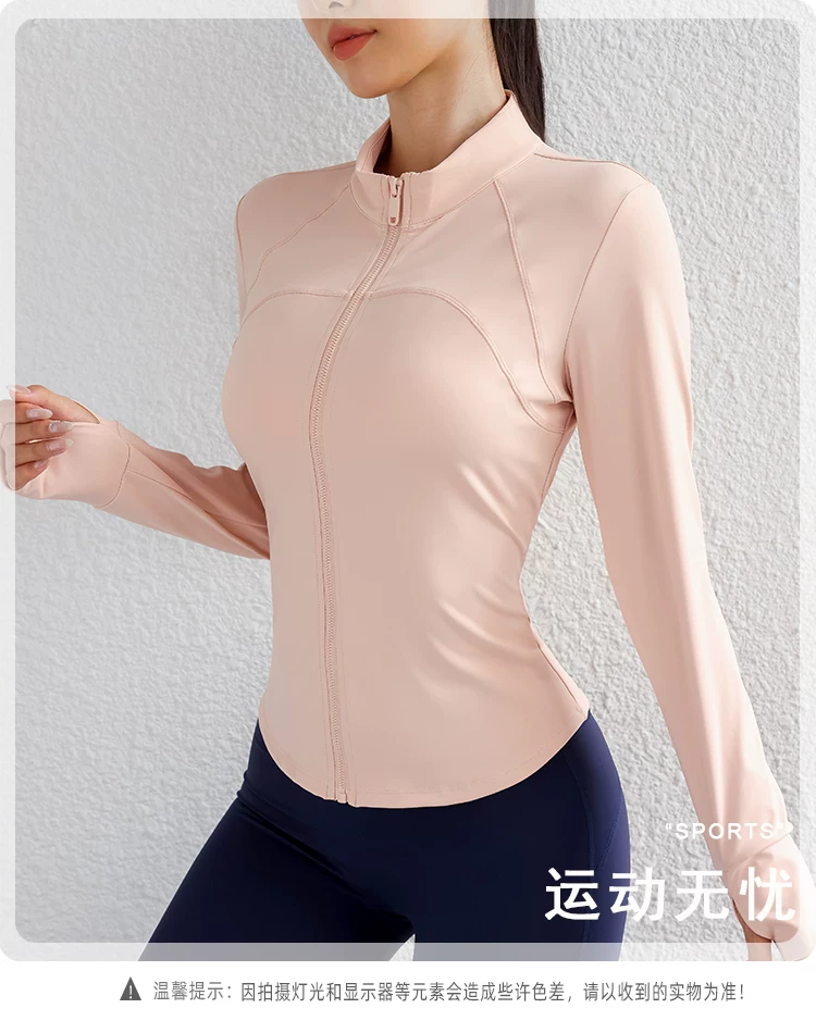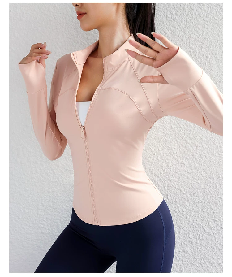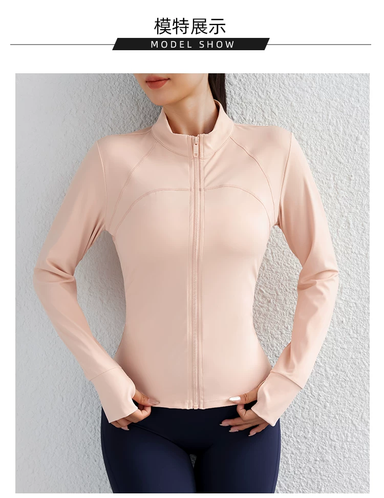 - Áo tập thể dục có khóa kéo mùa thu/đông 2026 dành cho nữ, trang phục tập yoga dáng ôm cổ đứng, áo khoác thể thao chạy bộ ngoài trời dài tay.