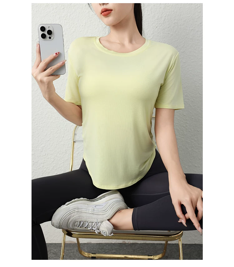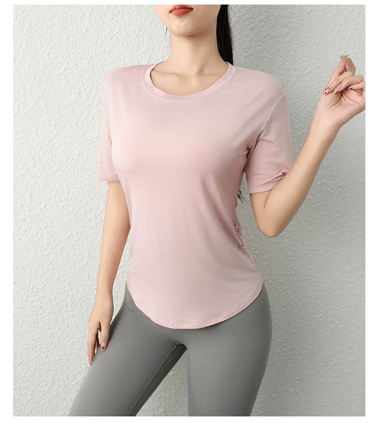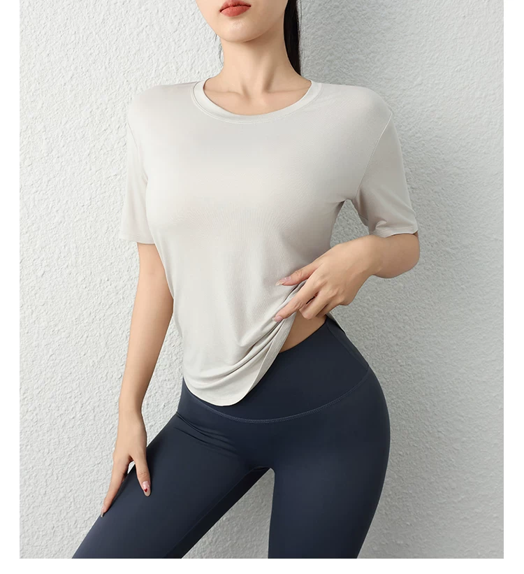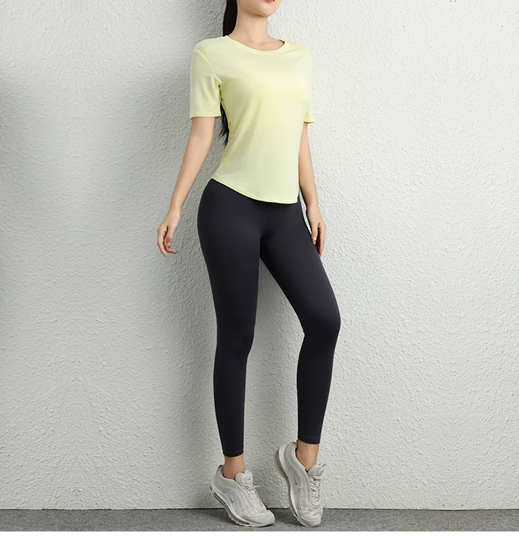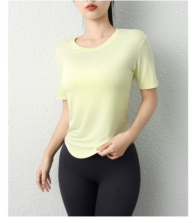 - Áo tập yoga cao cấp co giãn dành cho nữ, kiểu mới 2024, áo thun mùa hè mỏng, thể thao, tay ngắn, chạy bộ, giảm mỡ, tập gym
