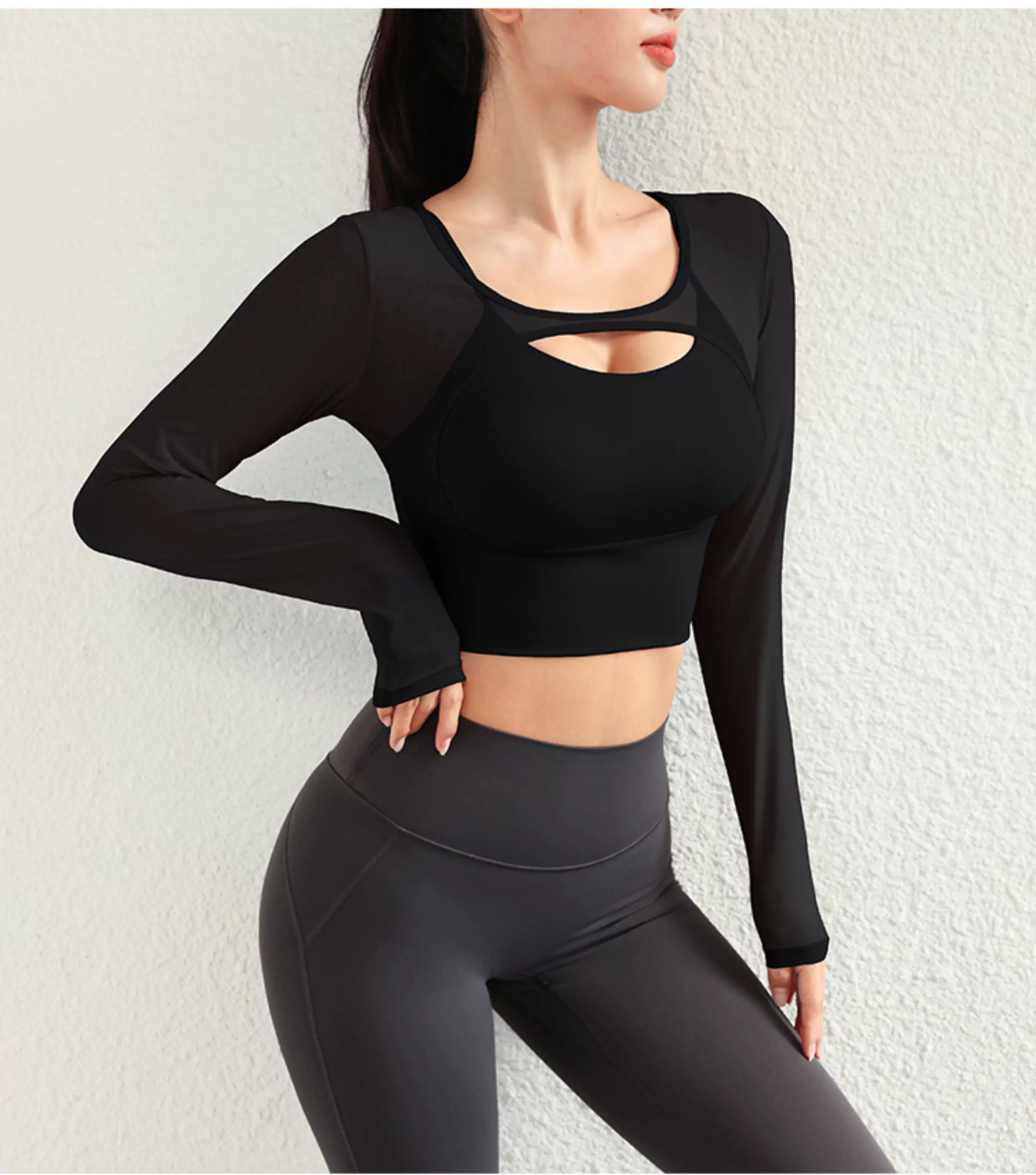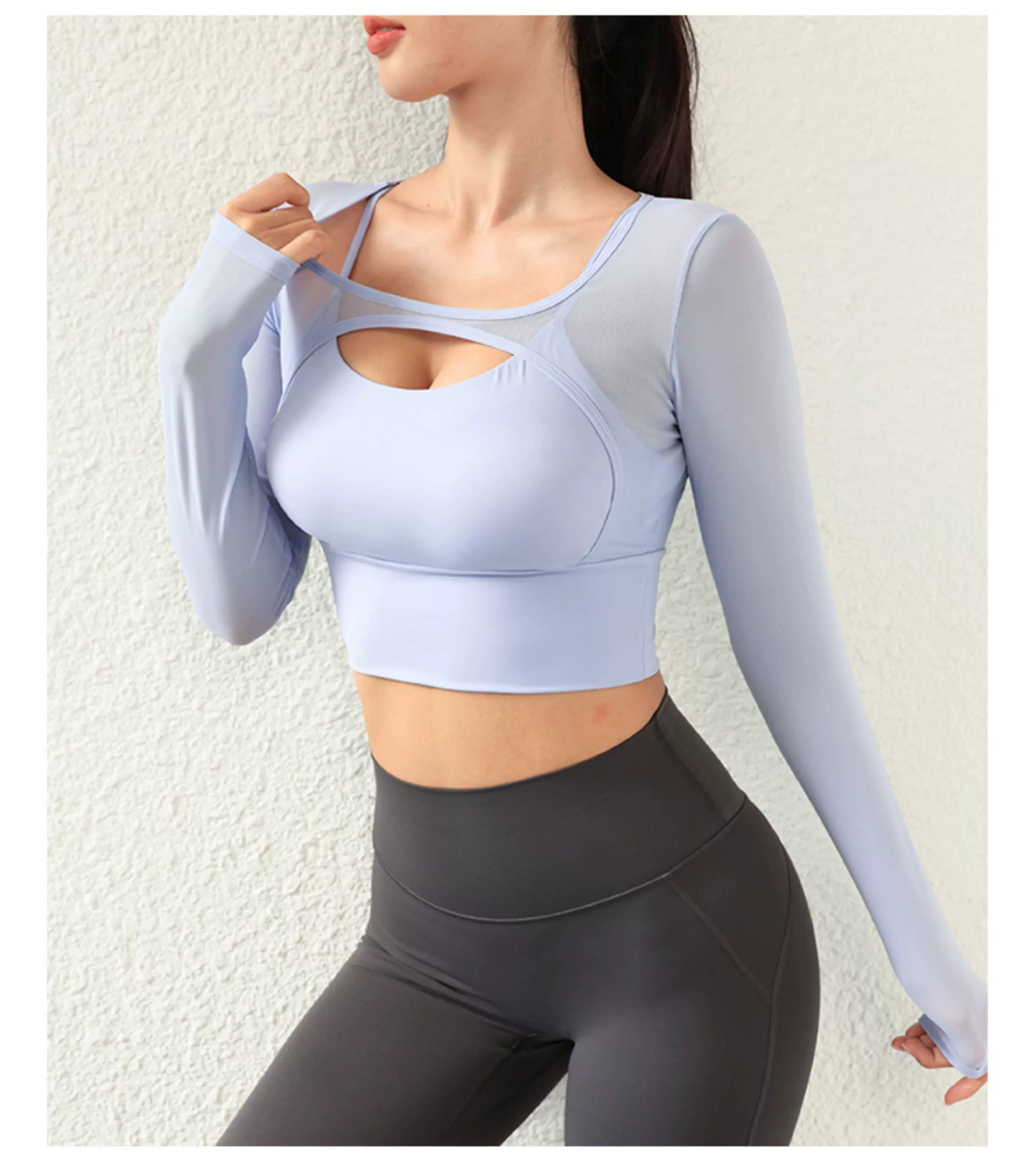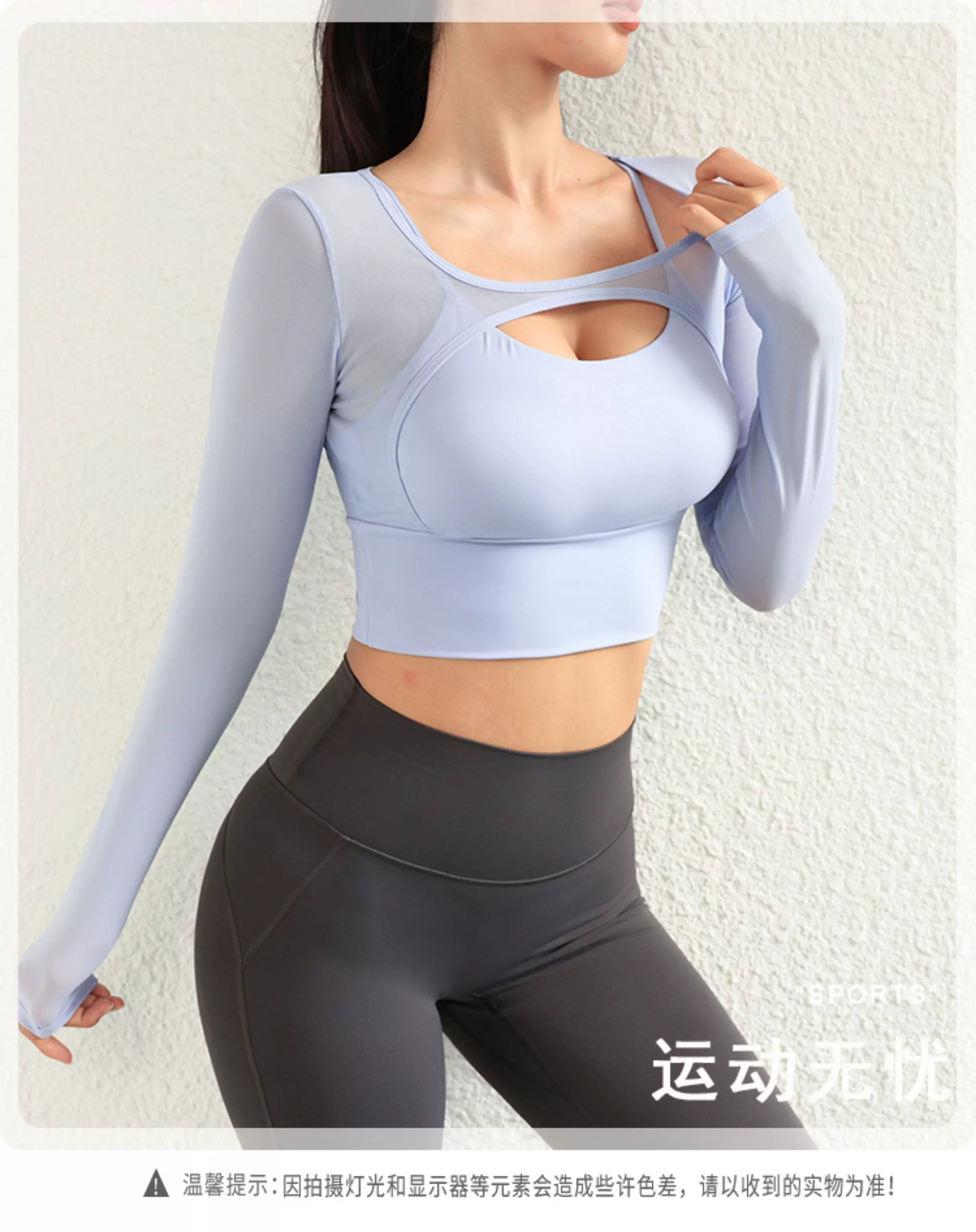 - Áo tập yoga chắp vá sành điệu với thiết kế giả hai mảnh, trang phục thể thao dài tay dành cho nữ có đệm ngực, quần áo tập thể dục Pilates chuyên nghiệp cho mùa đông.