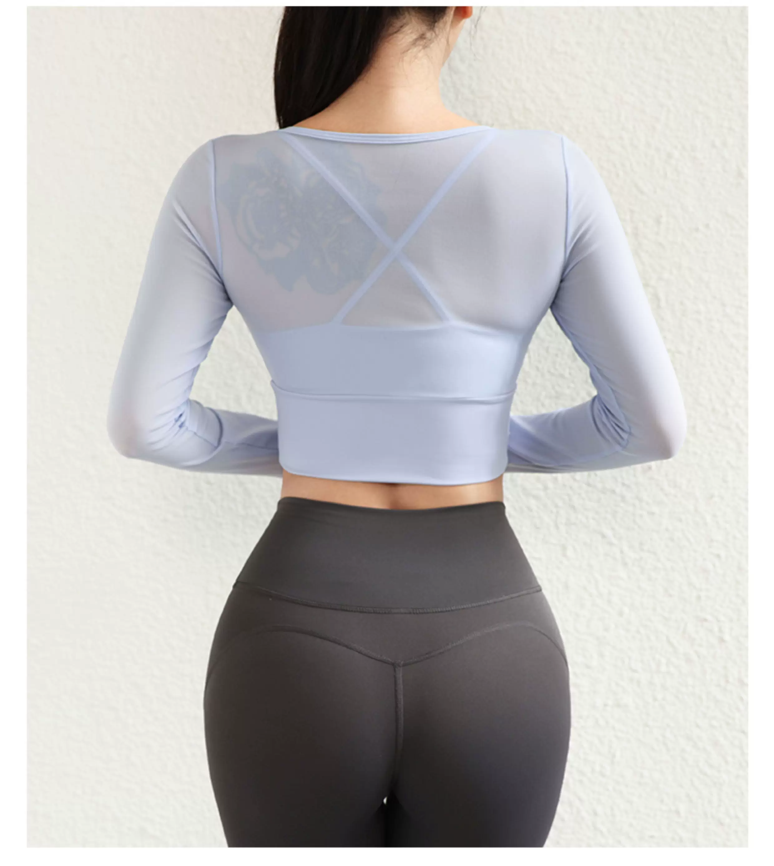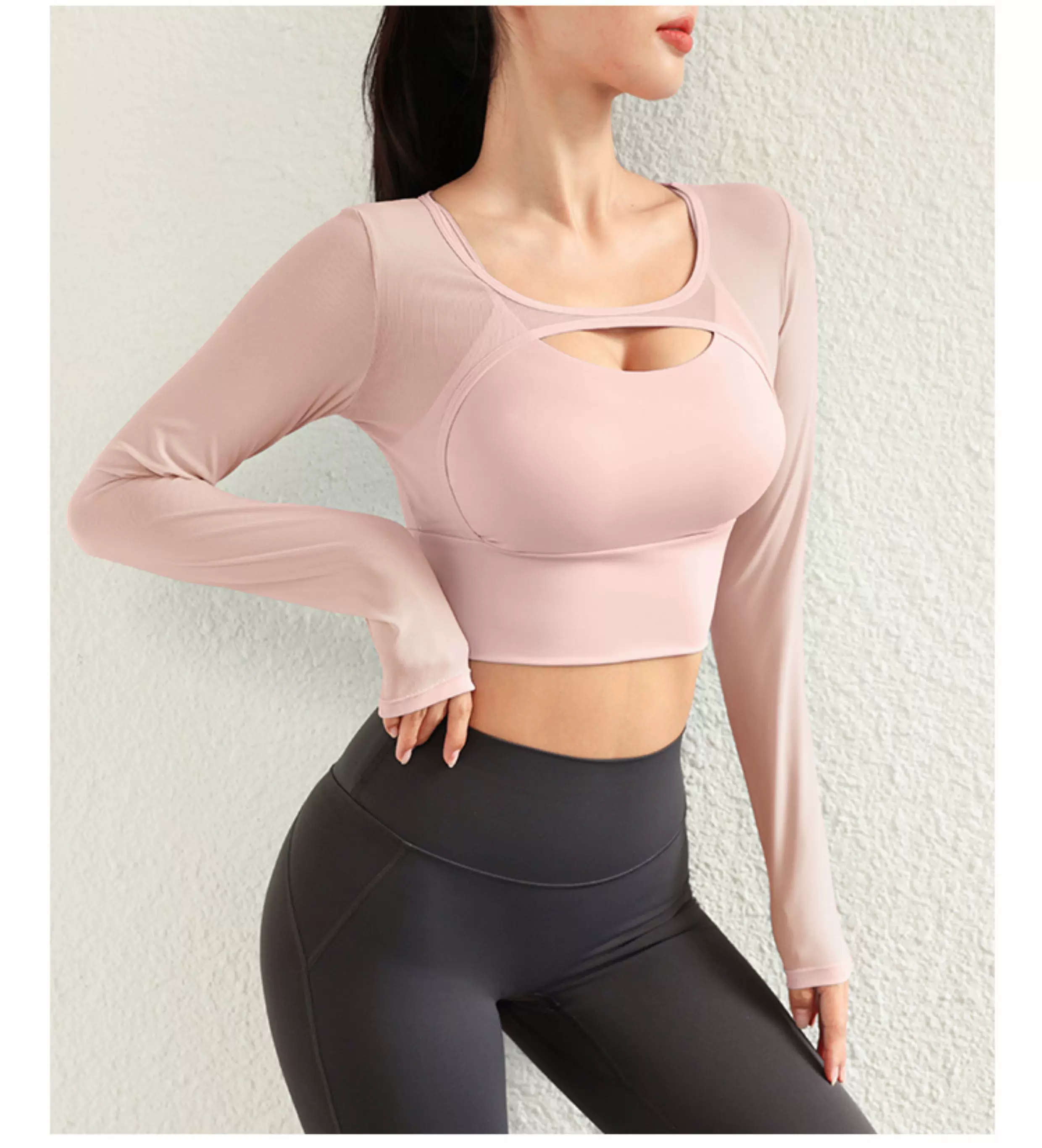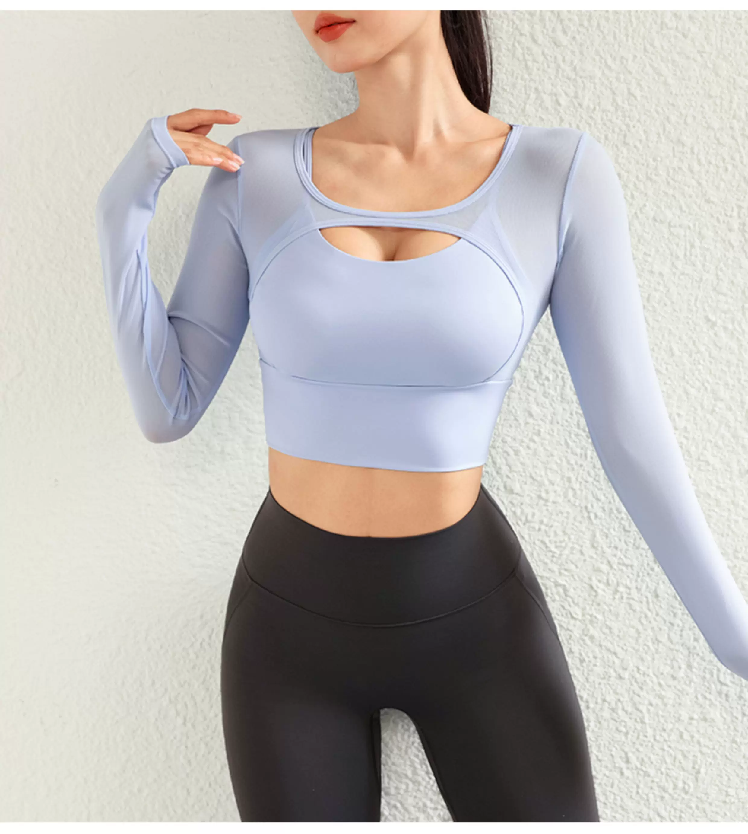 - Áo tập yoga chắp vá sành điệu với thiết kế giả hai mảnh, trang phục thể thao dài tay dành cho nữ có đệm ngực, quần áo tập thể dục Pilates chuyên nghiệp cho mùa đông.