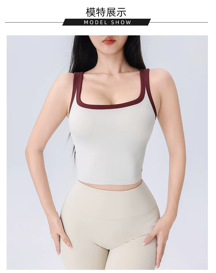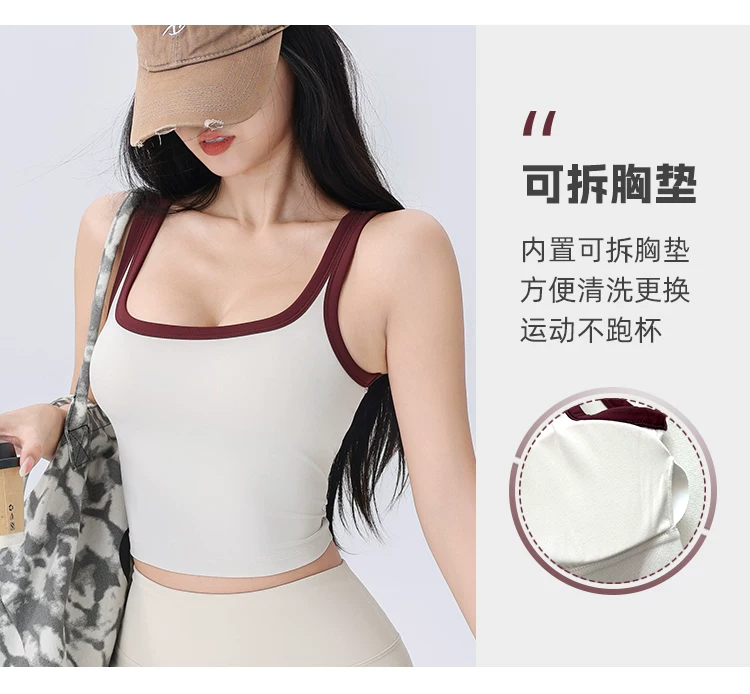 - Áo tập yoga có dây đeo lưng cao cấp Jiumai có miếng đệm ngực Áo ngực thể thao chống sốc Áo ngực Pilates phối màu Mới.