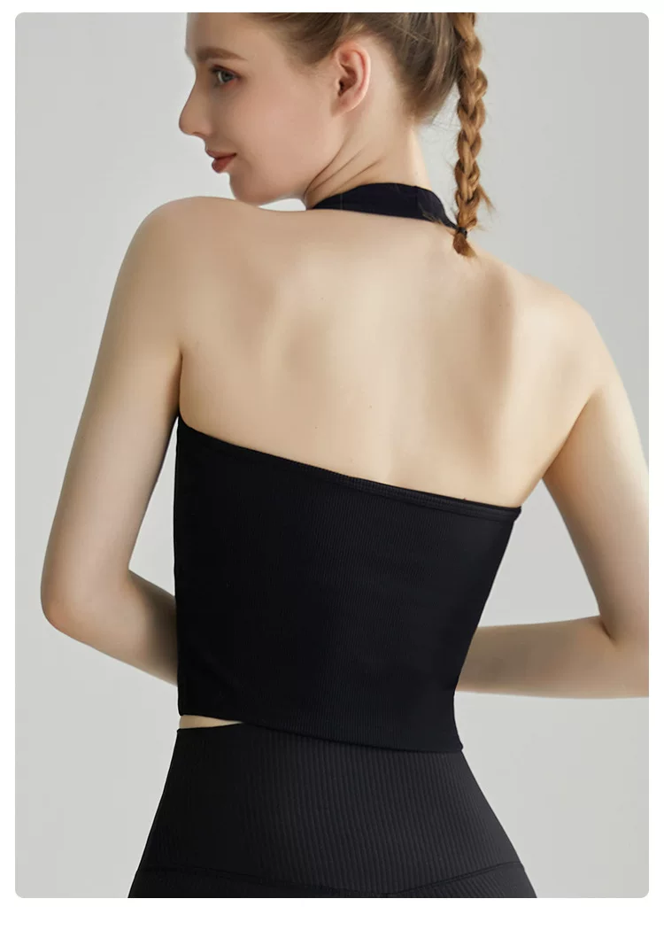 - Áo tập yoga cổ halter đa năng có đệm ngực, kiểu dáng dài, chống sốc cường độ trung bình, có gân, kháng khuẩn, áo ngực thể thao dành cho nữ.