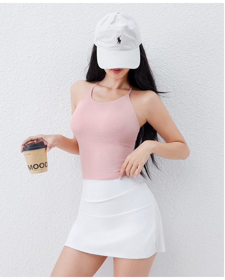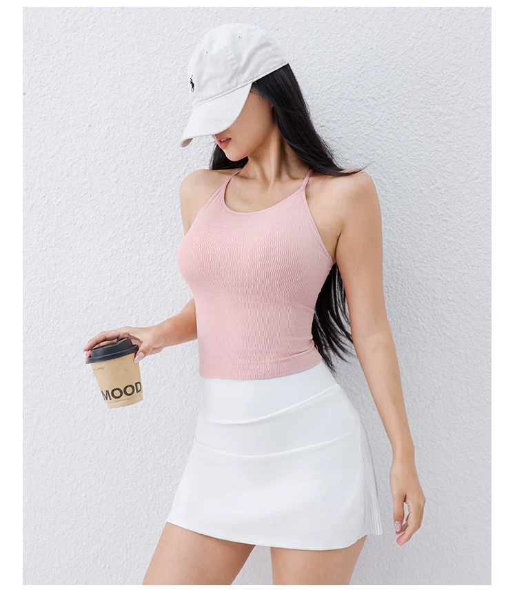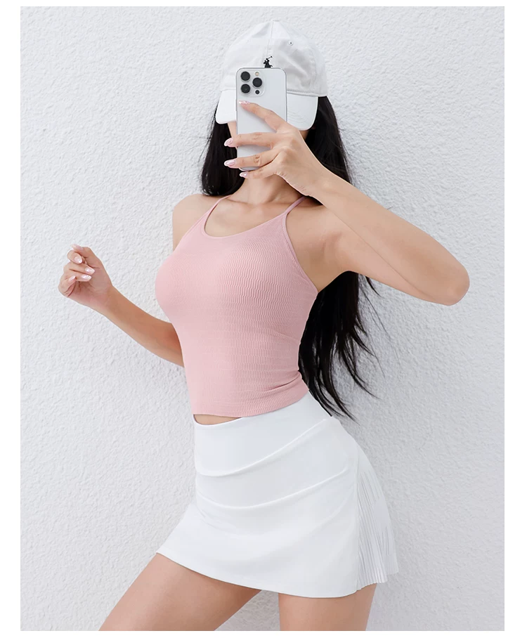 - Áo tập yoga Jiumai Yipin có dây mỏng, cổ yếm, thiết kế lưng đẹp, có đệm ngực tích hợp, áo ngực thể thao đa năng, trang phục tập yoga.