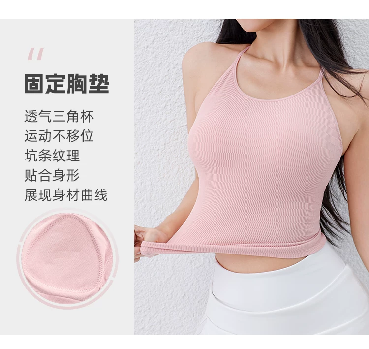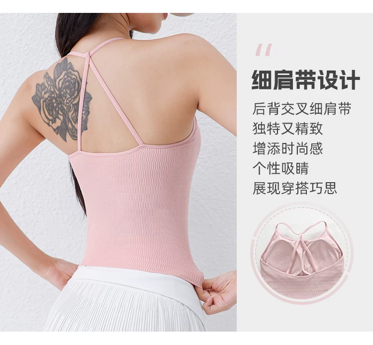 Áo tập yoga Jiumai Yipin có dây mỏng, cổ yếm, thiết kế lưng đẹp, có đệm ngực tích hợp, áo ngực thể thao đa năng, trang phục tập yoga.