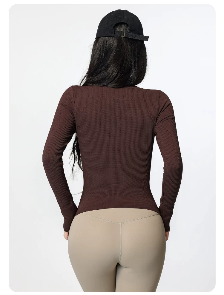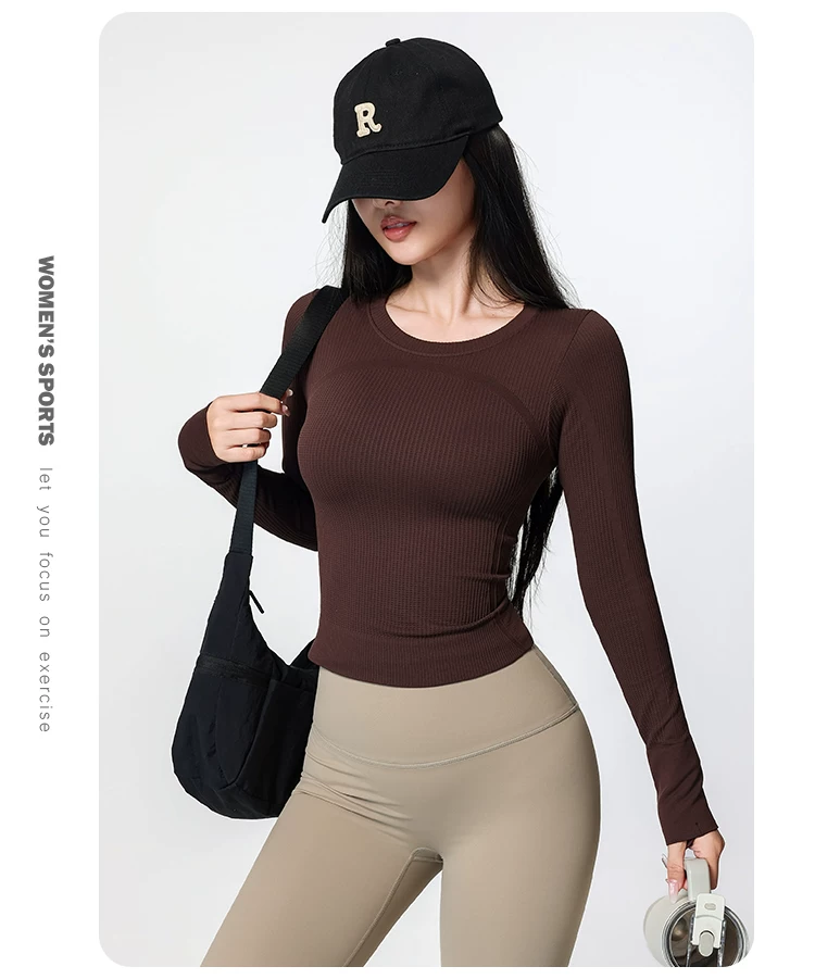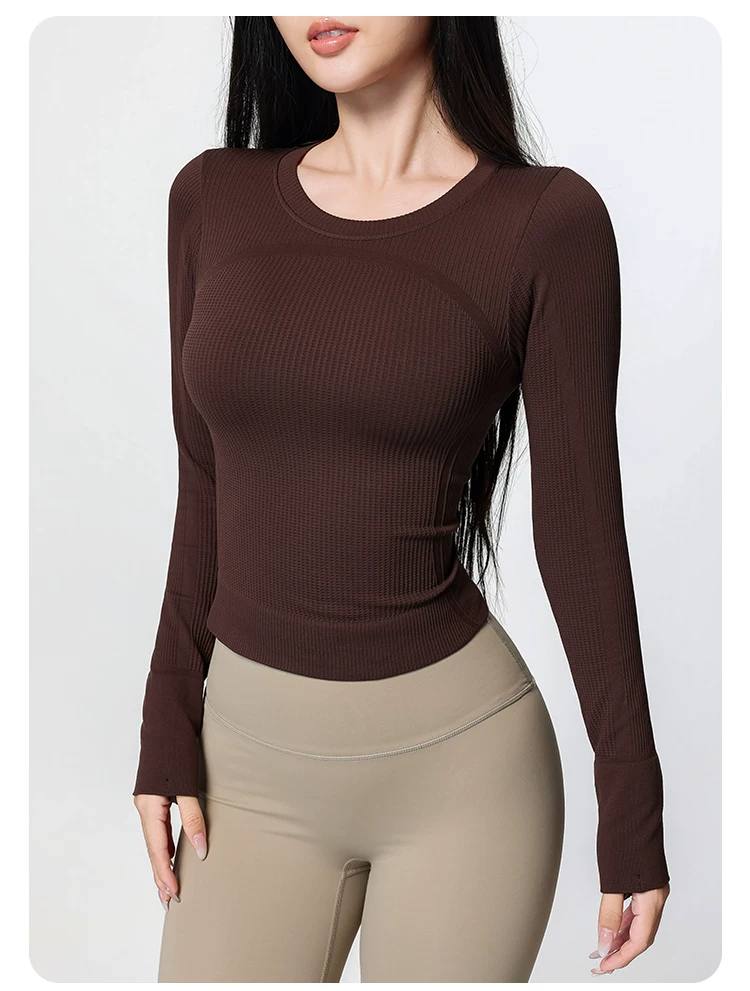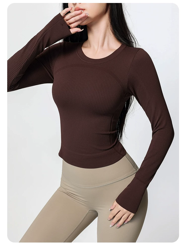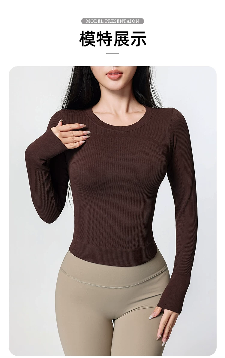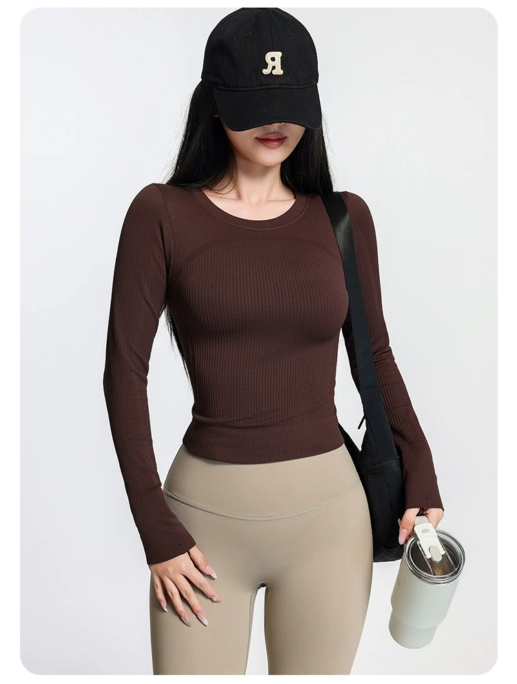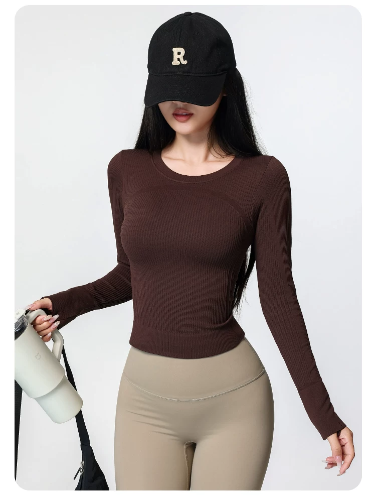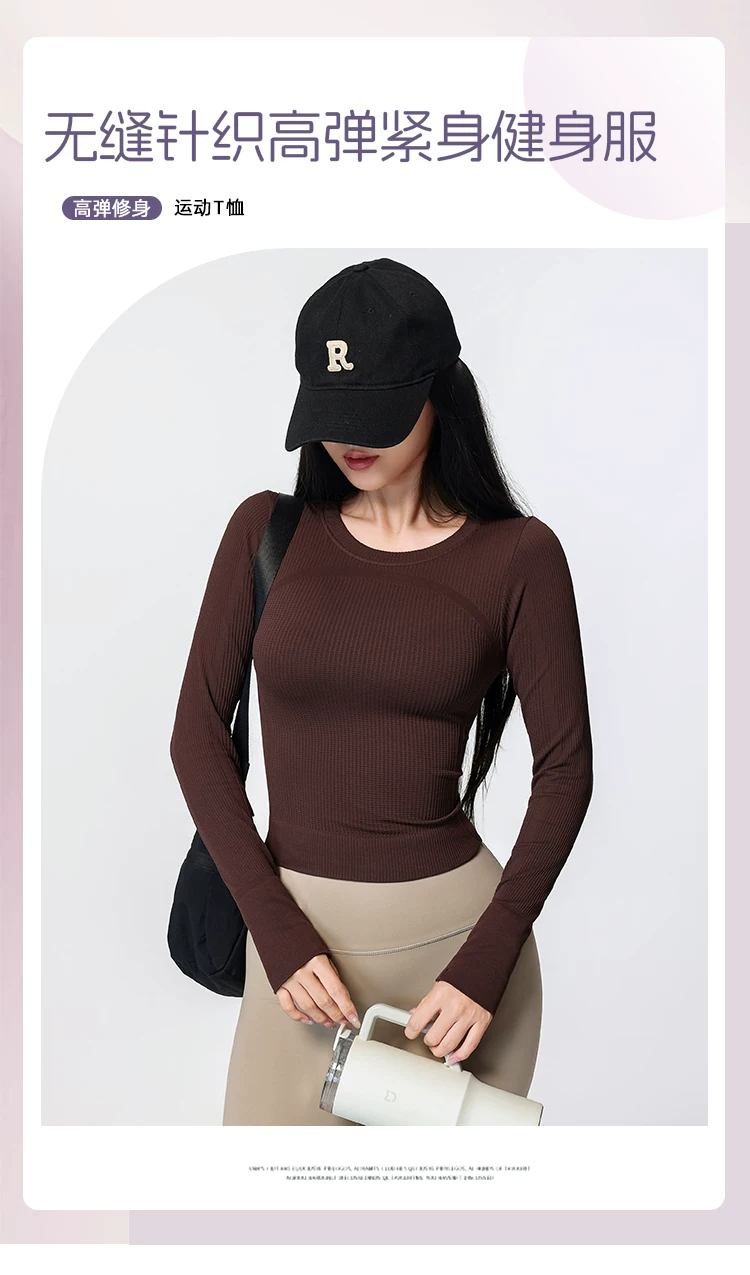 Áo tập yoga Jiumai Yipin dành cho nữ, nhanh khô, cổ tròn, lớp lót, chạy bộ mùa xuân, tập thể dục, áo thể thao dài tay tạo cảm giác thoải mái như không mặc gì.