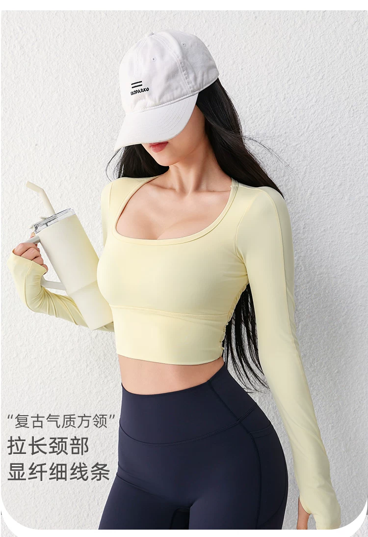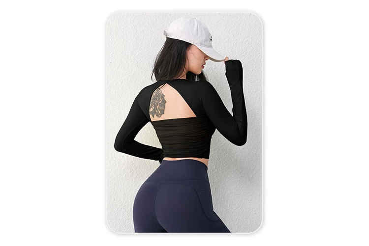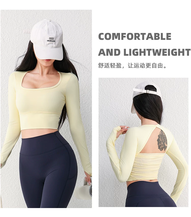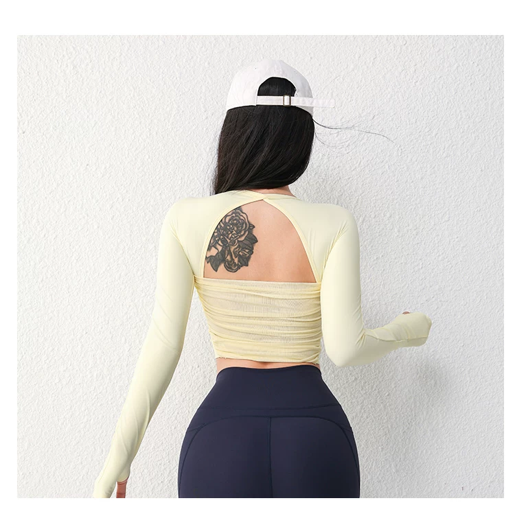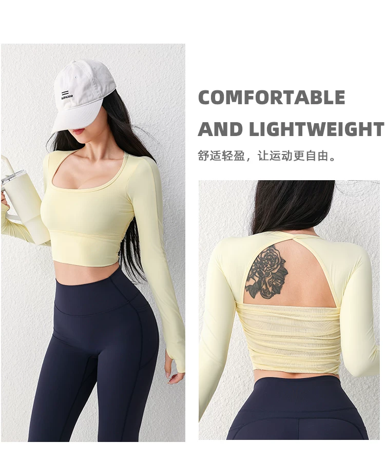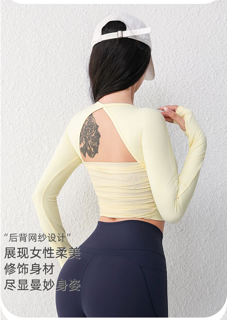 - Áo tập yoga lưới gợi cảm dài tay dành cho nữ có đệm ngực, áo thun tập thể dục chạy bộ