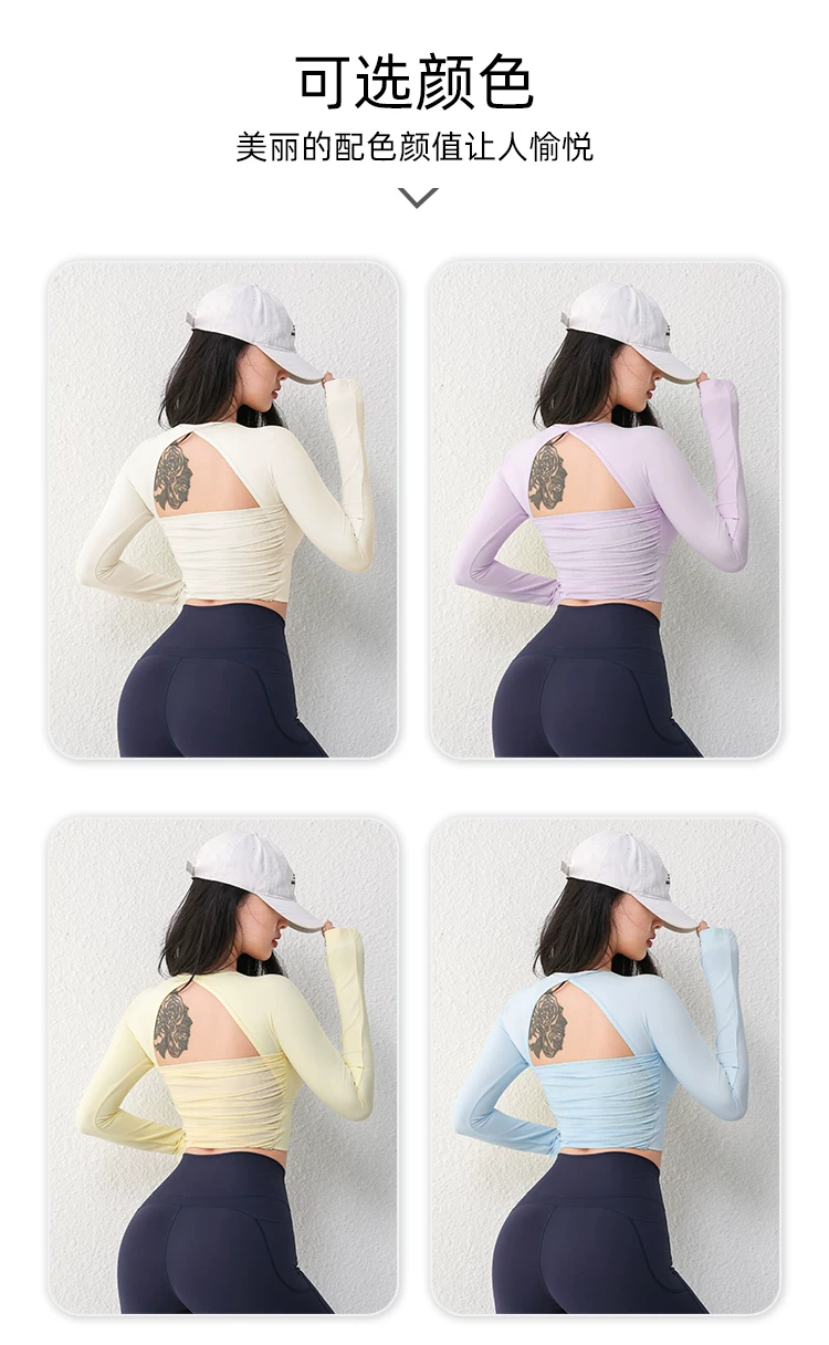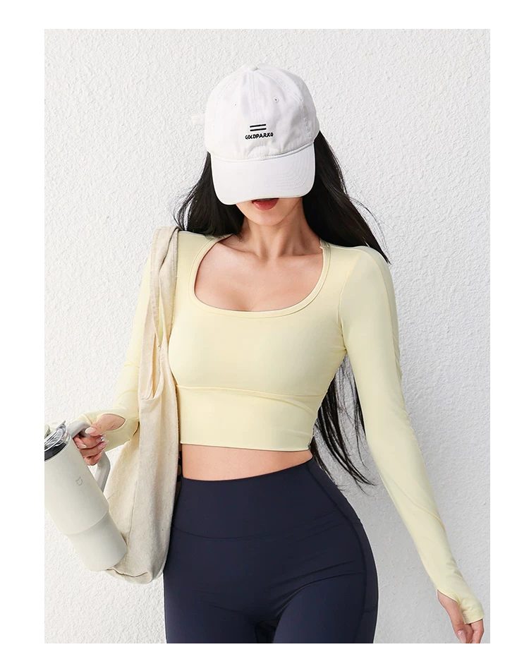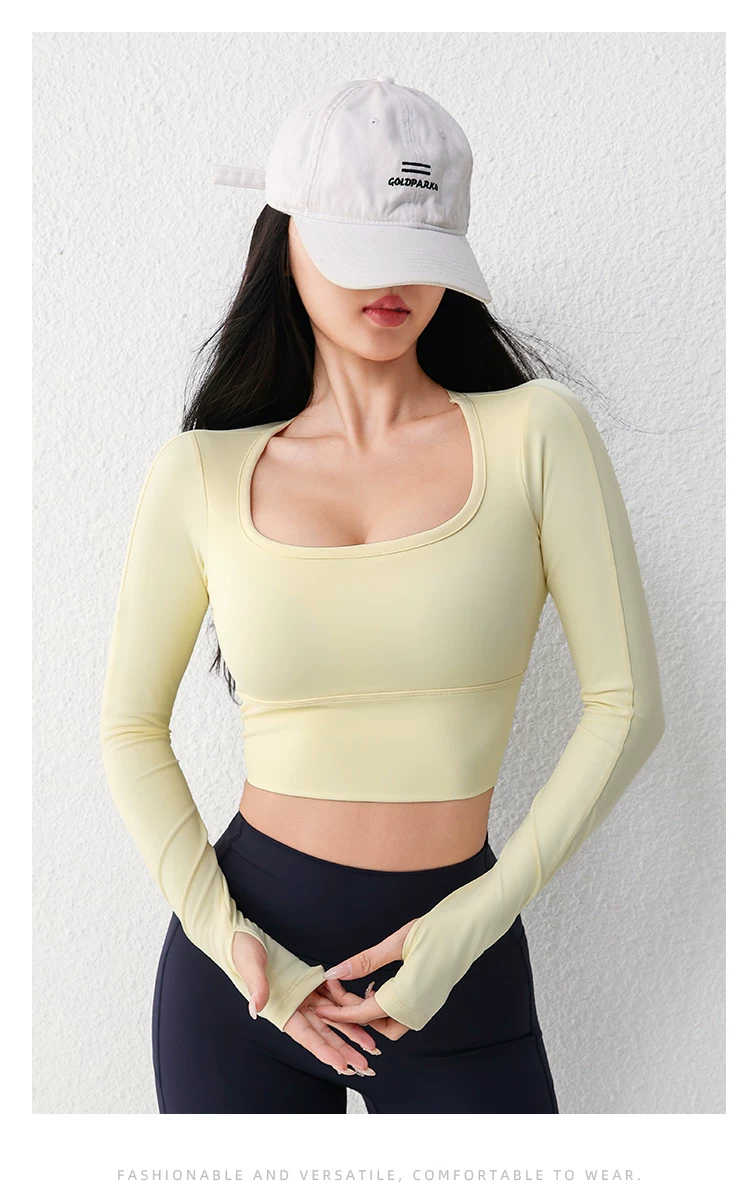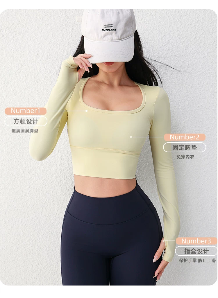 - Áo tập yoga lưới gợi cảm dài tay dành cho nữ có đệm ngực, áo thun tập thể dục chạy bộ
