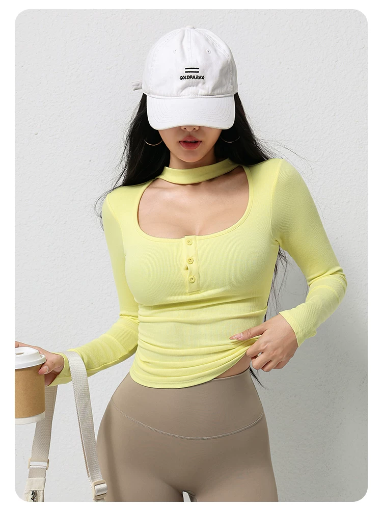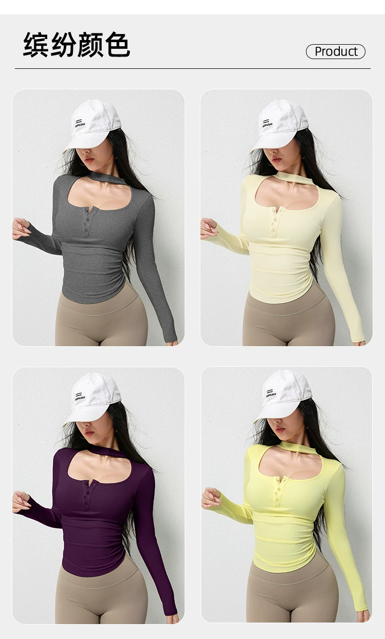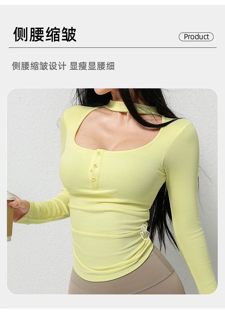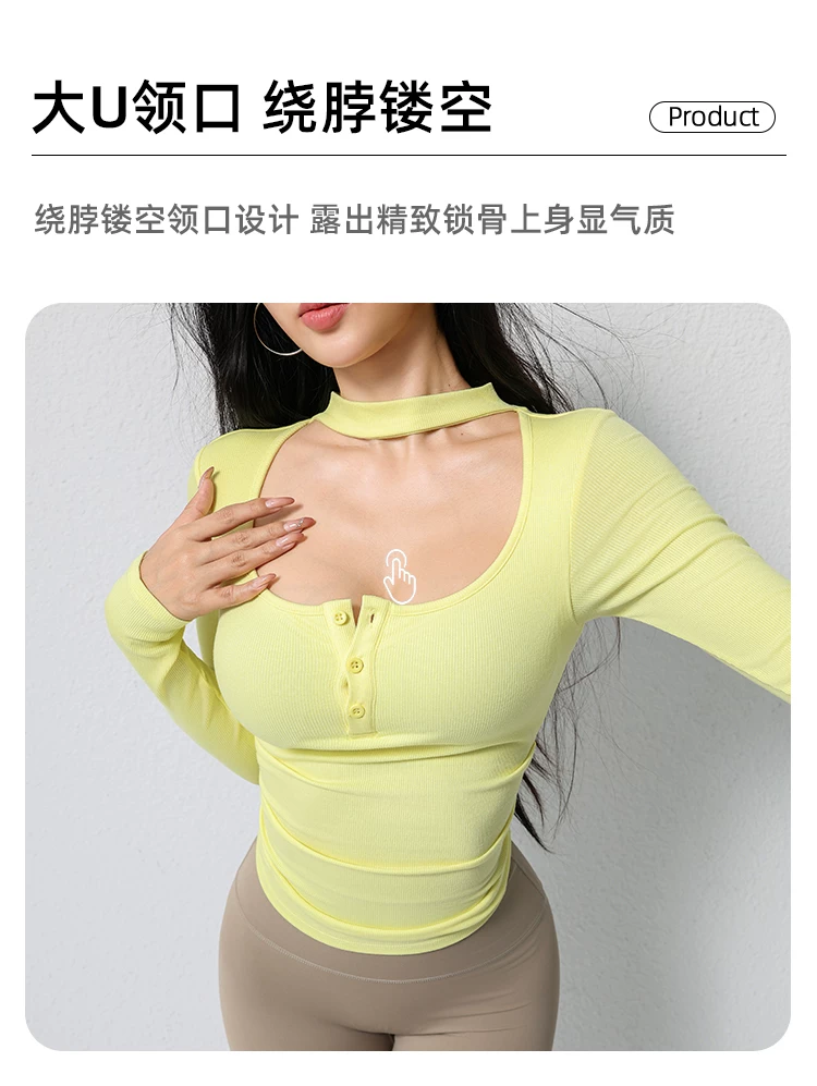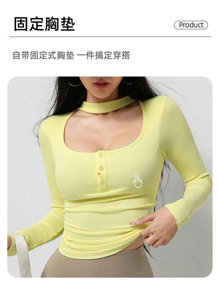 - Áo tập yoga mới 2026 dành cho nữ, áo thun tập thể dục Pilates dài tay ôm sát mùa thu có đệm ngực.