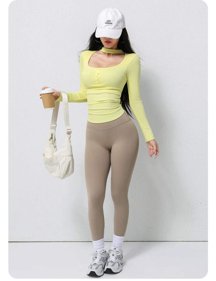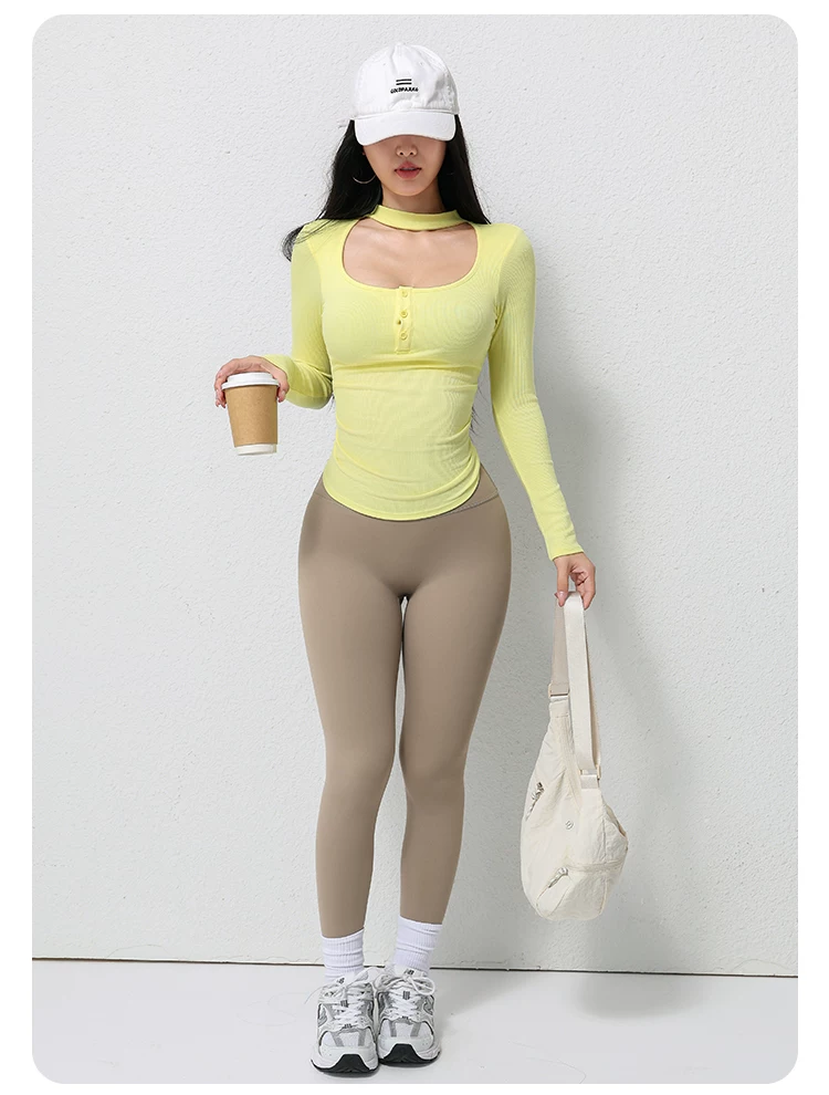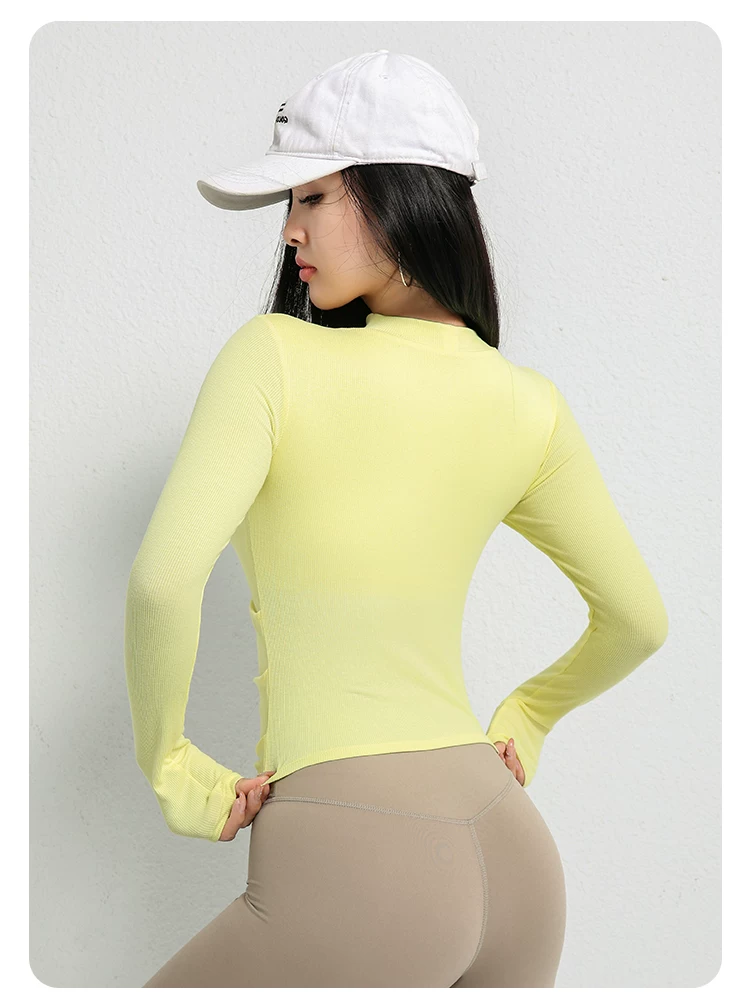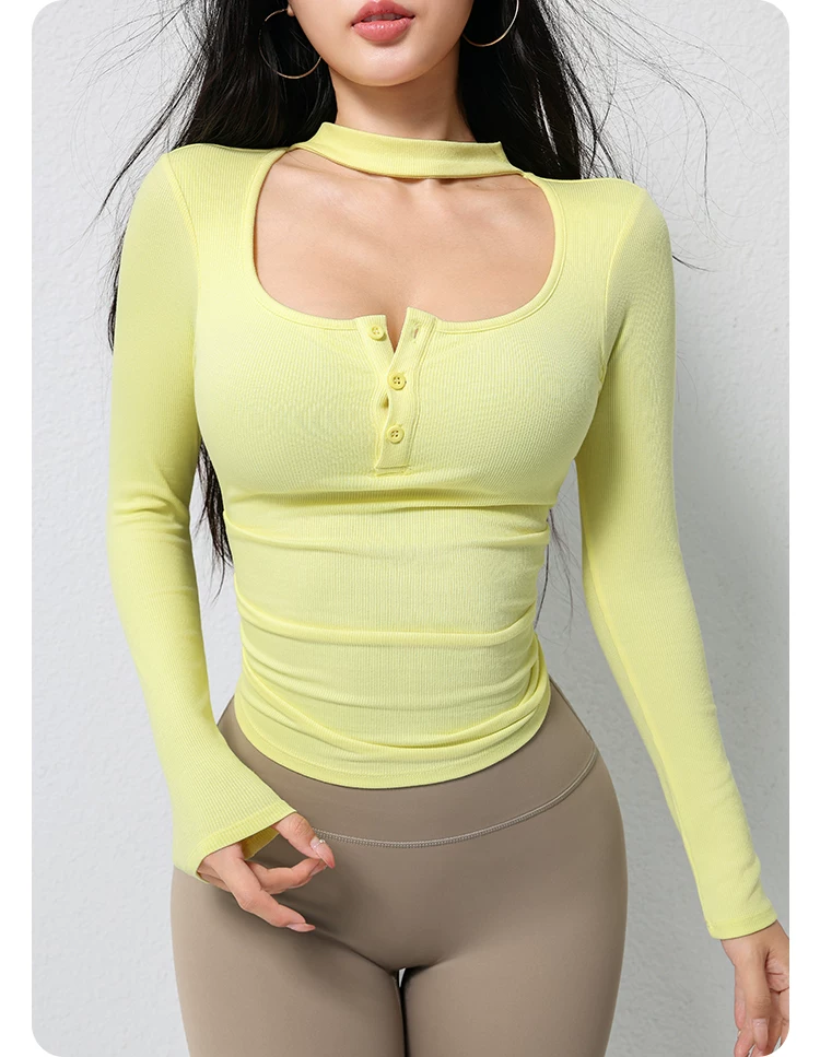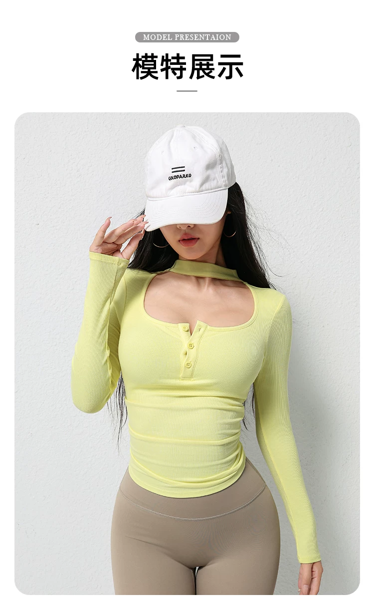 - Áo tập yoga mới 2026 dành cho nữ, áo thun tập thể dục Pilates dài tay ôm sát mùa thu có đệm ngực.