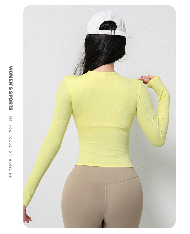 Áo tập yoga mới 2026 dành cho nữ, áo thun tập thể dục Pilates dài tay ôm sát mùa thu có đệm ngực.
