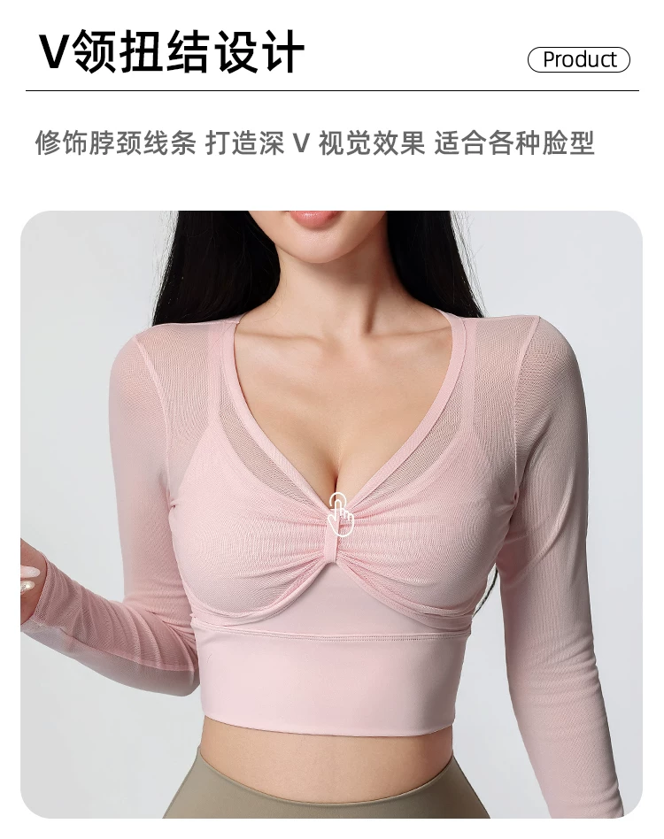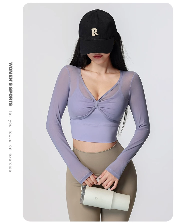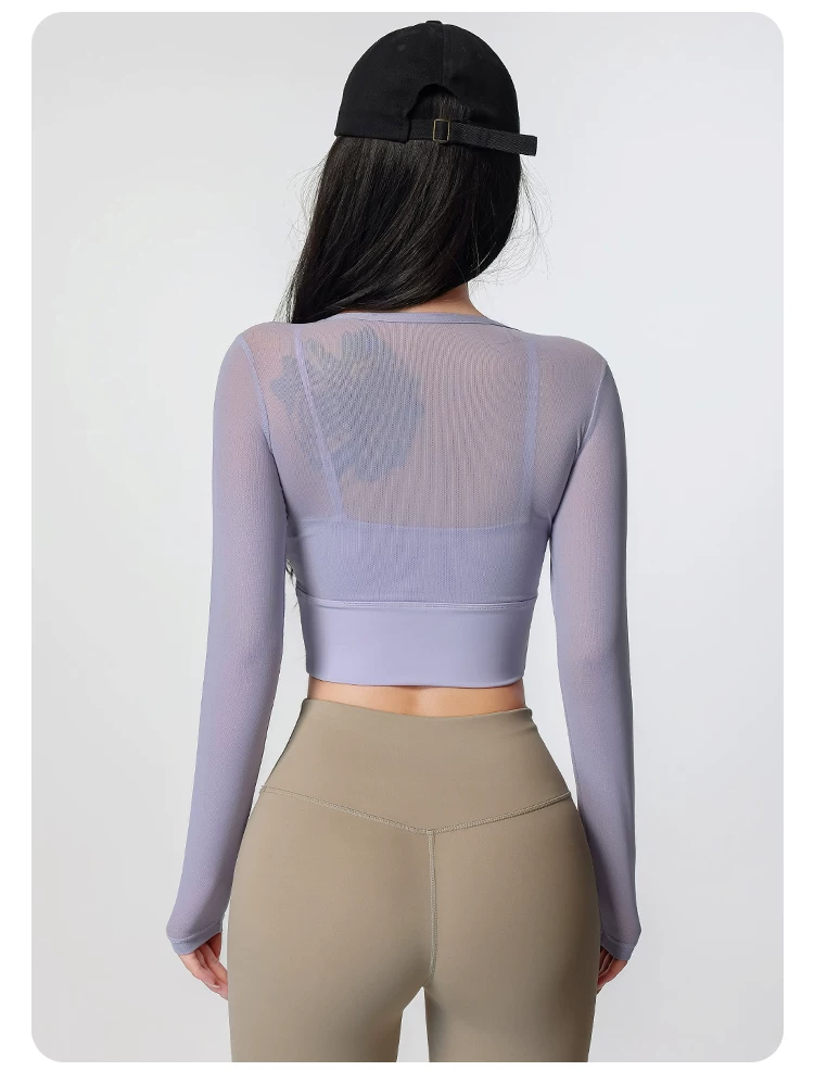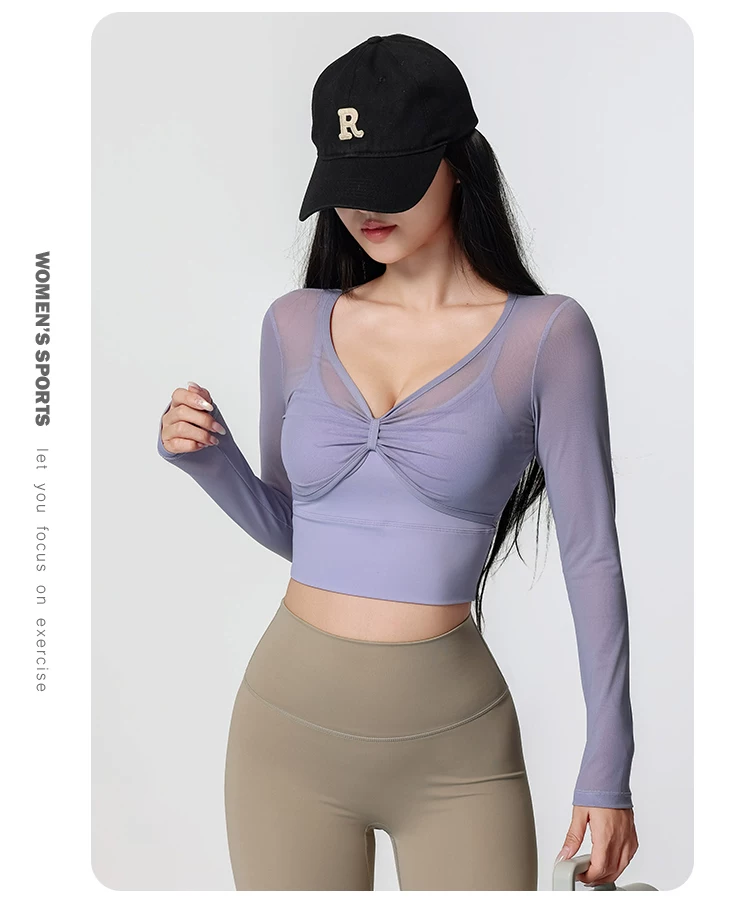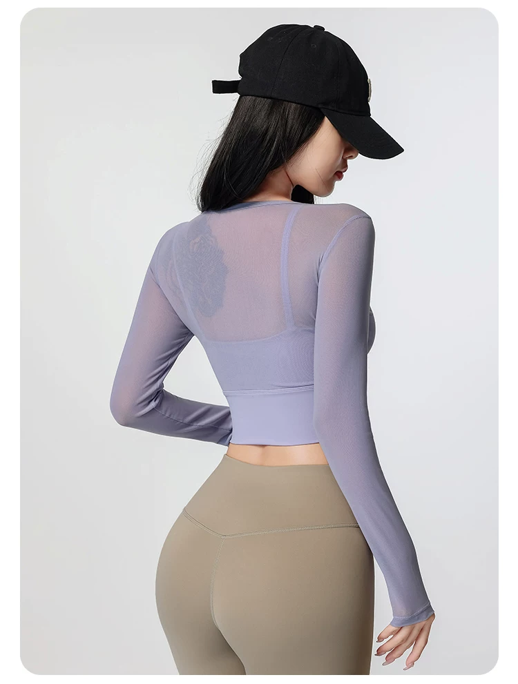 - Áo tập yoga nữ 2026 mới xuân hè, tay dài, lưới, thể thao, ôm dáng, có mút ngực, dành cho tập Pilates
