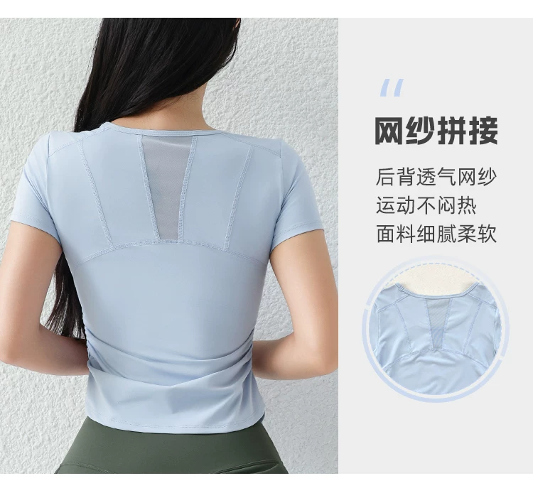 - Áo tập yoga nữ tay ngắn kiểu mới 2026 phối lưới thoáng khí, áo thun thể thao chạy bộ tập Pilates tập luyện thể dục