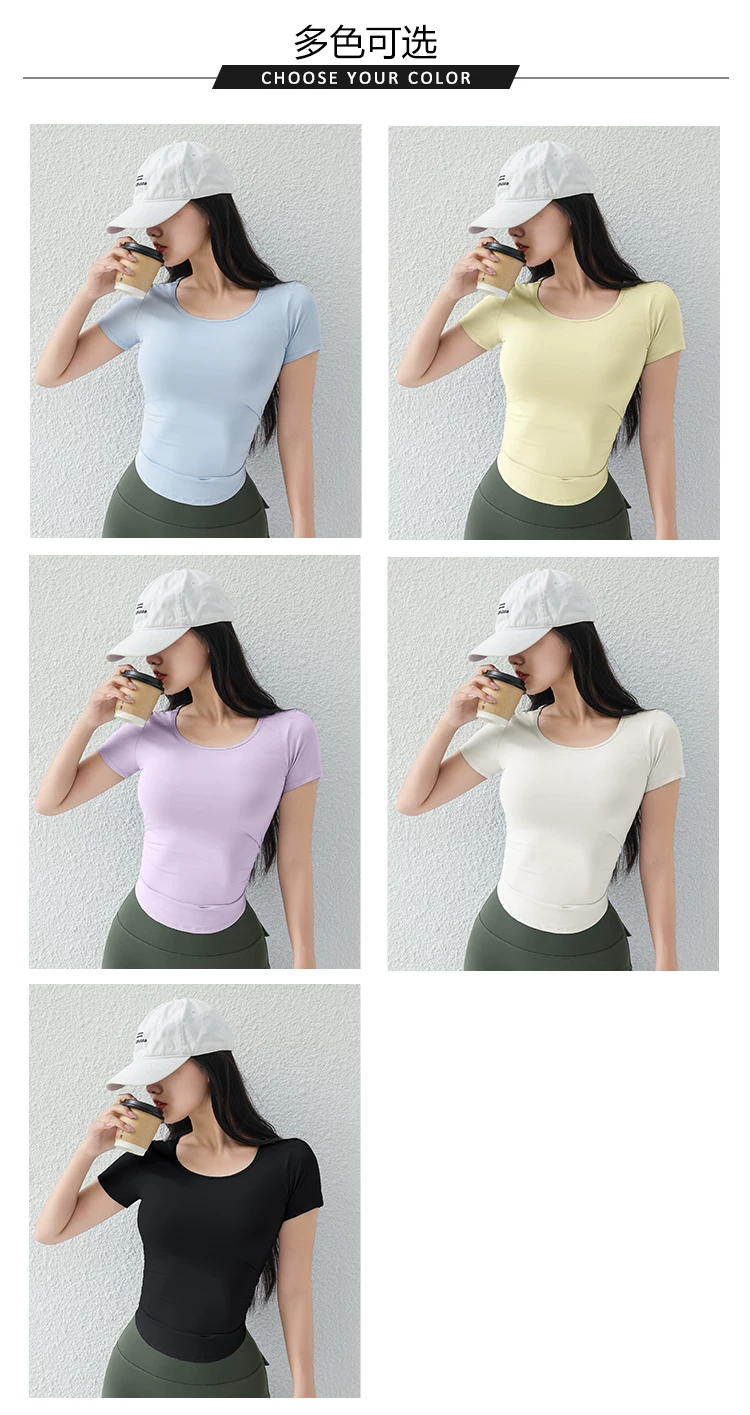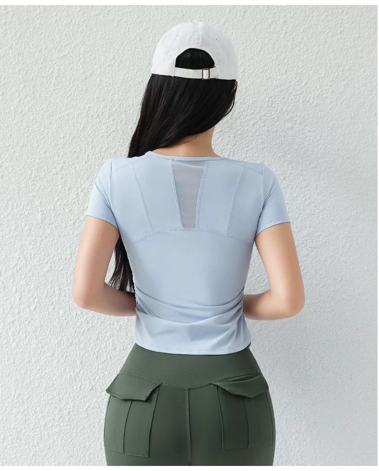 Áo tập yoga nữ tay ngắn kiểu mới 2026 phối lưới thoáng khí, áo thun thể thao chạy bộ tập Pilates tập luyện thể dục