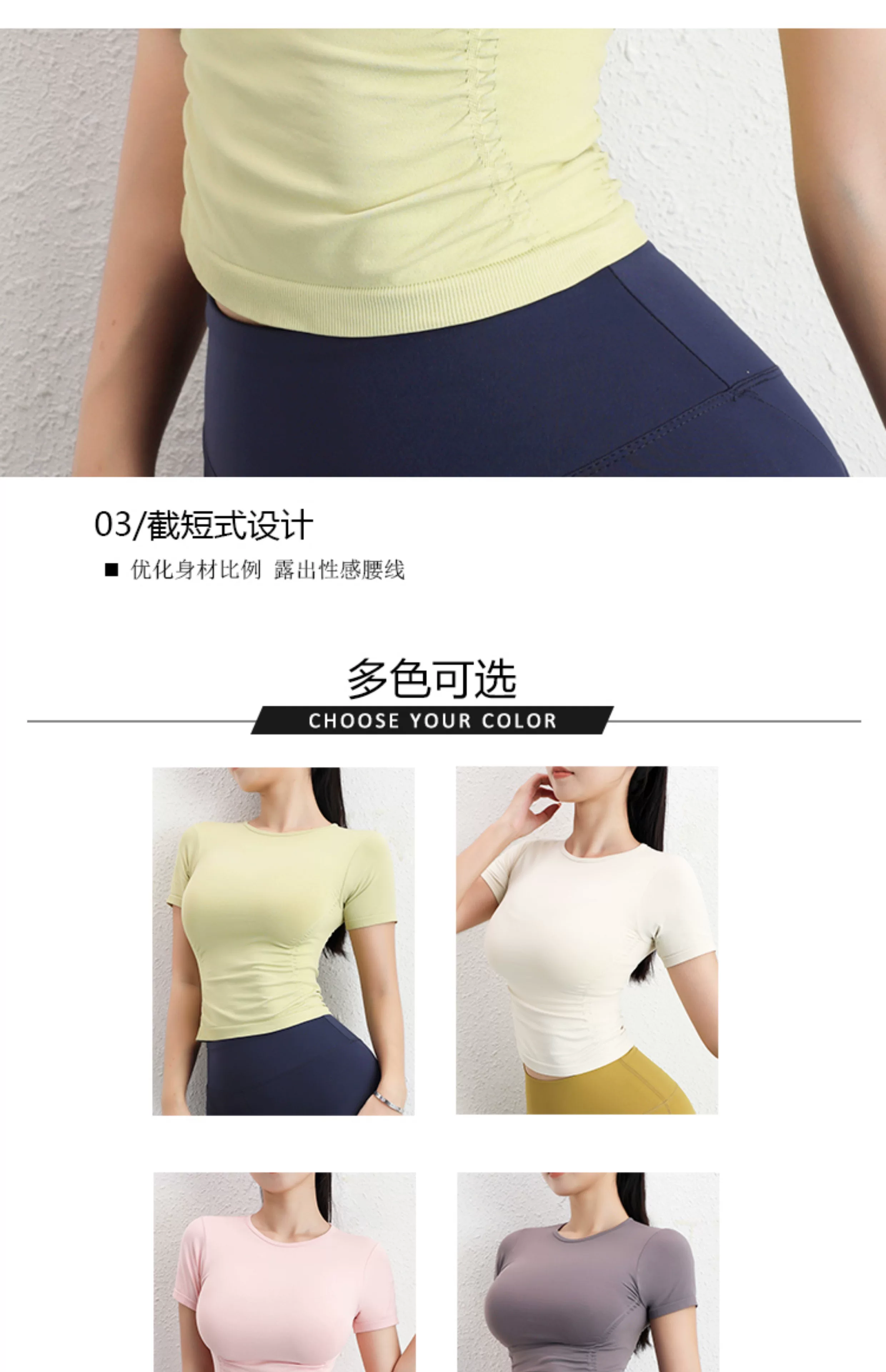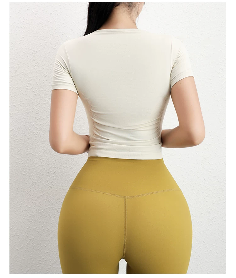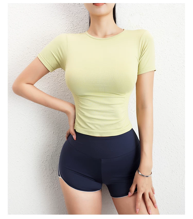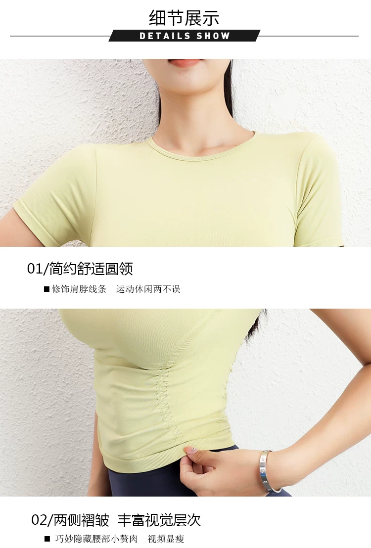 - Áo tập yoga tay ngắn xếp ly Jiumai Yipin dành cho nữ, trang phục thể thao đa năng thông thường, áo thể thao ôm sát dành cho mùa hè.