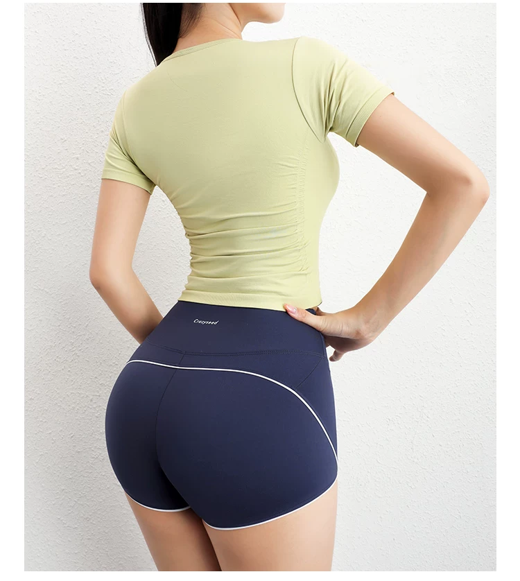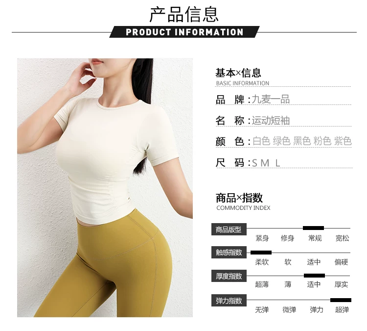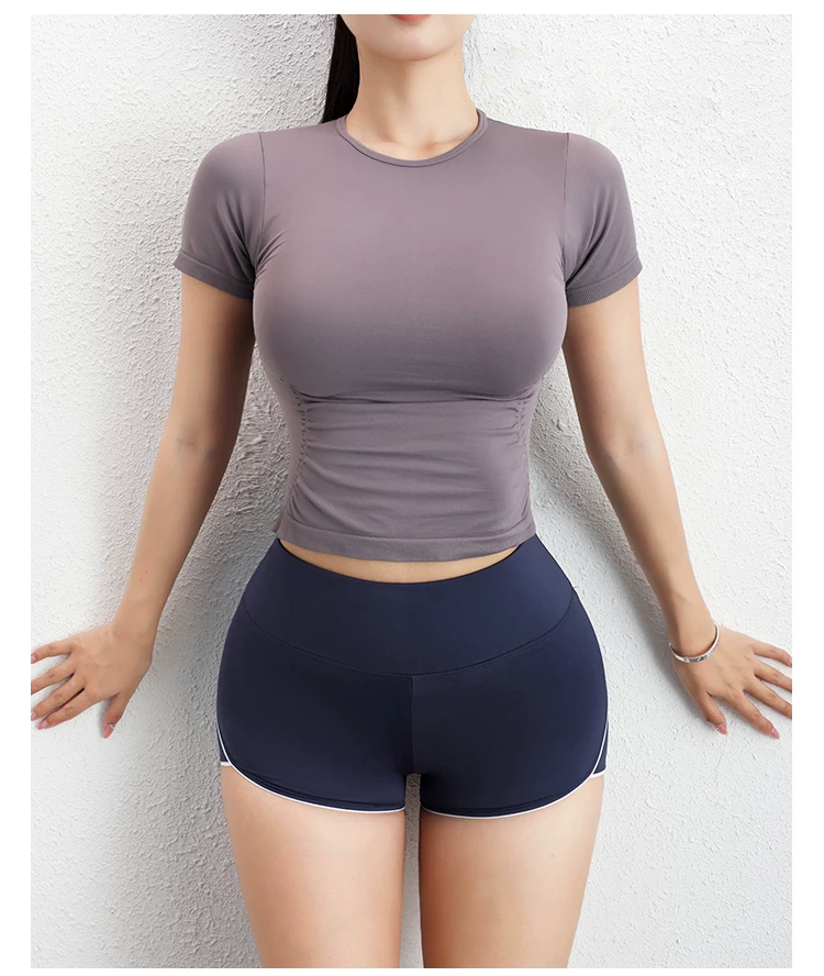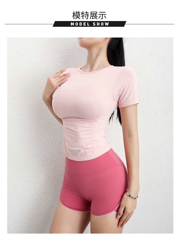 Áo tập yoga tay ngắn xếp ly Jiumai Yipin dành cho nữ, trang phục thể thao đa năng thông thường, áo thể thao ôm sát dành cho mùa hè.
