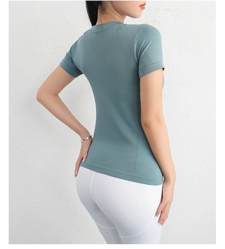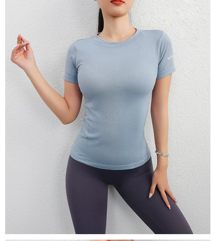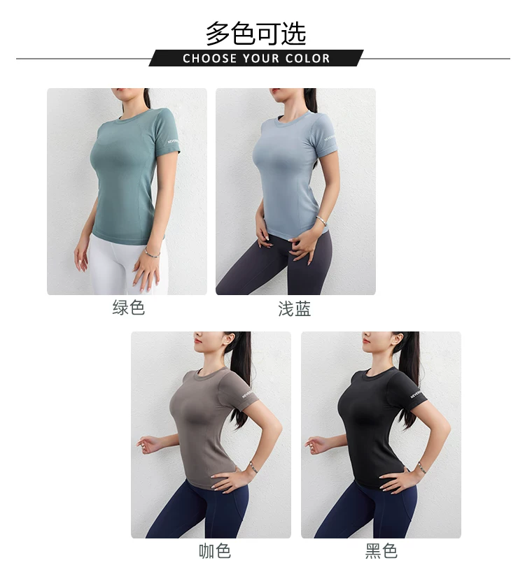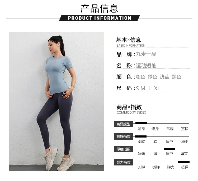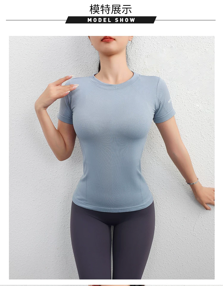 - Áo thể thao Jiumai Yipin dành cho nữ, áo sơ mi ngắn tay nhanh khô mùa hè, áo phông chạy bộ hợp thời trang, trang phục tập yoga bó sát.