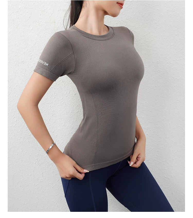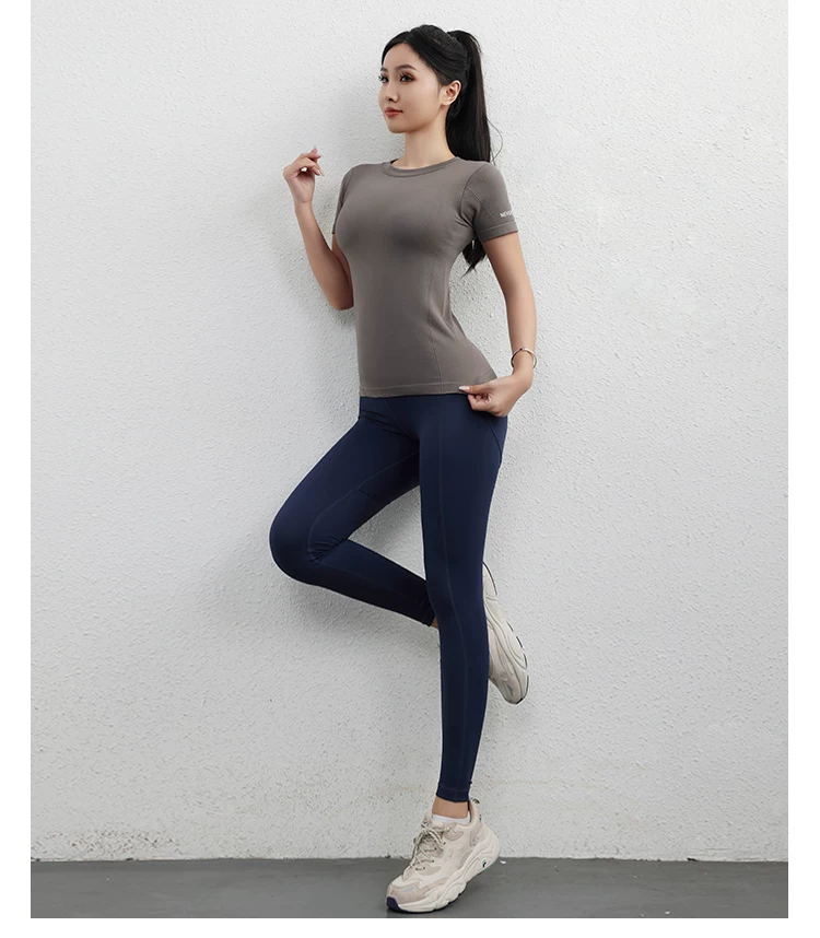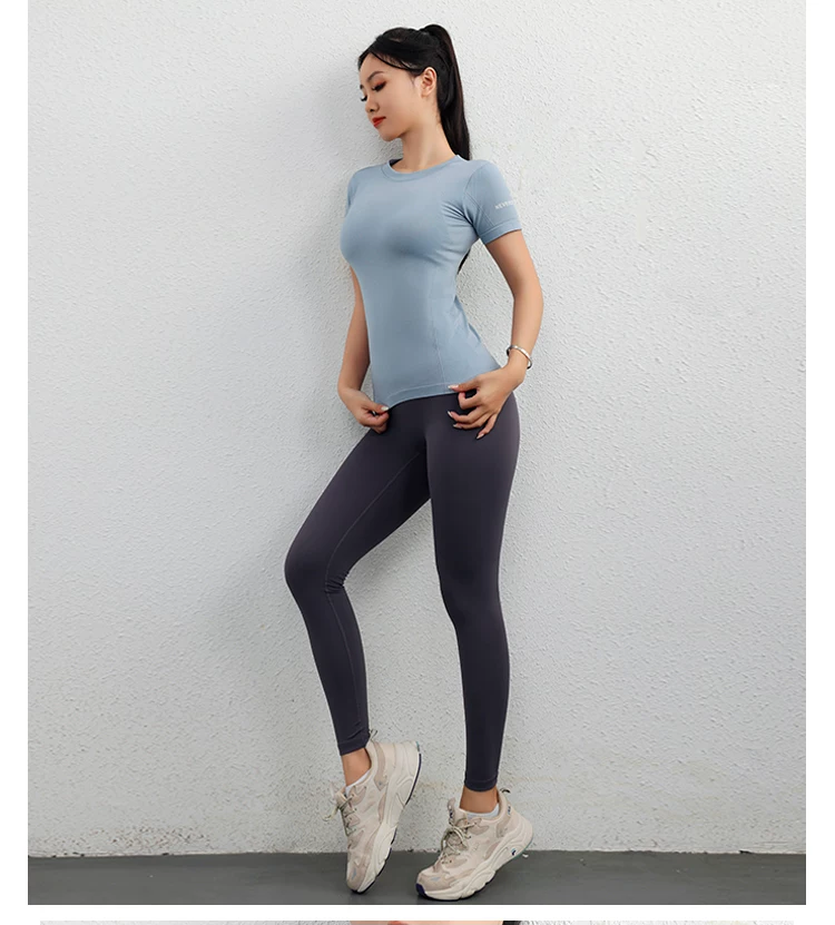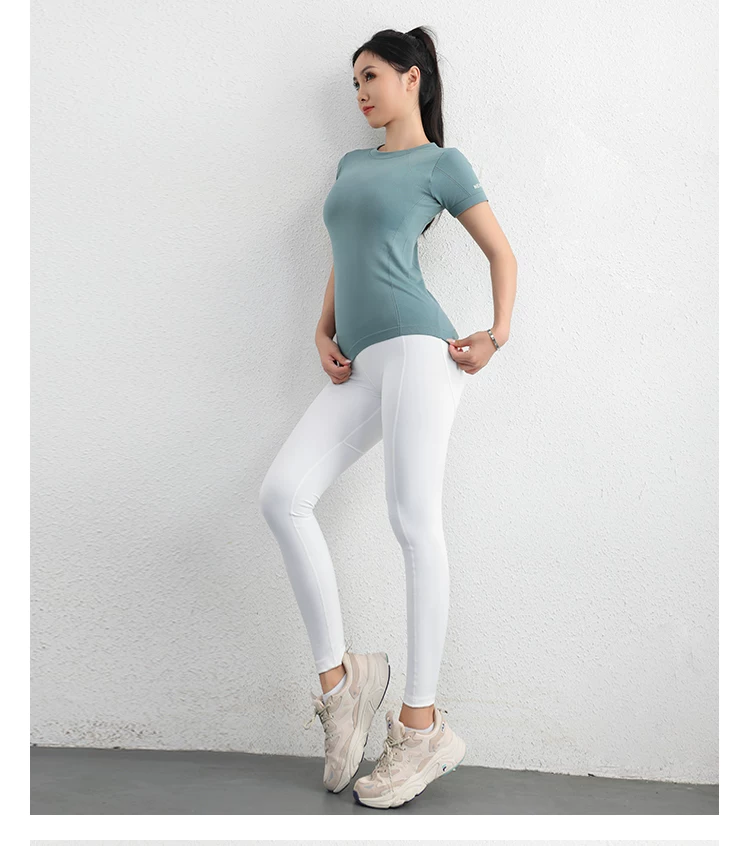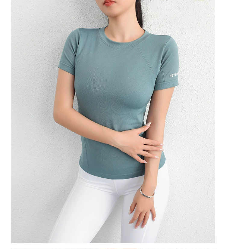 - Áo thể thao Jiumai Yipin dành cho nữ, áo sơ mi ngắn tay nhanh khô mùa hè, áo phông chạy bộ hợp thời trang, trang phục tập yoga bó sát.