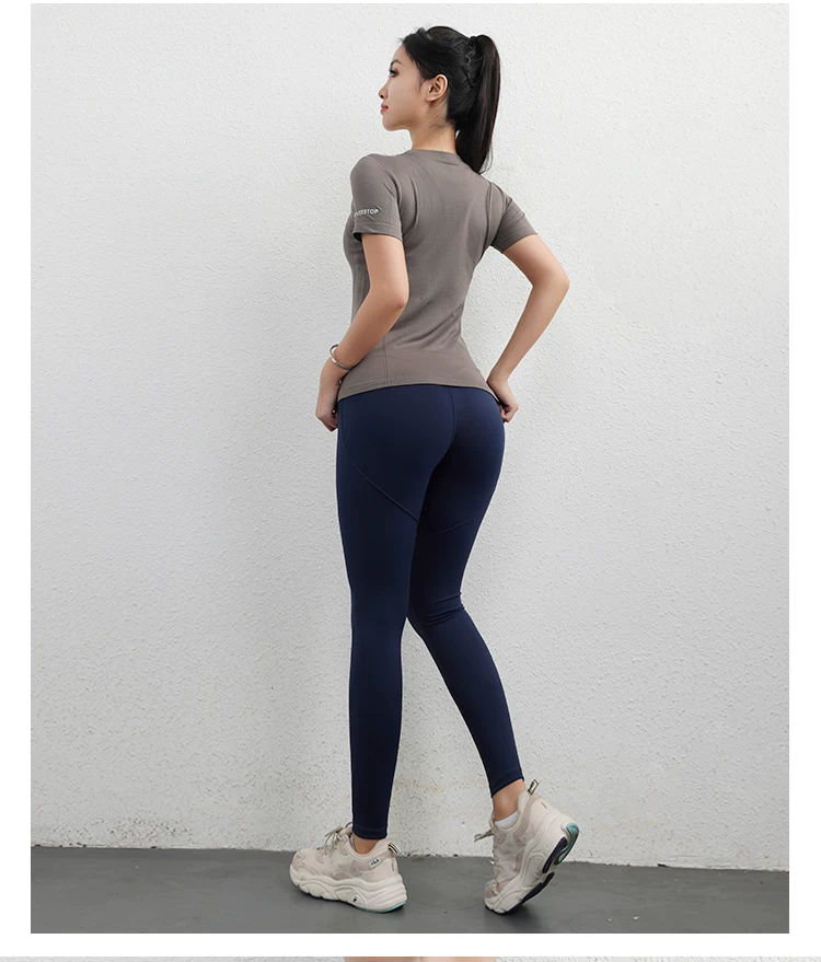 Áo thể thao Jiumai Yipin dành cho nữ, áo sơ mi ngắn tay nhanh khô mùa hè, áo phông chạy bộ hợp thời trang, trang phục tập yoga bó sát.