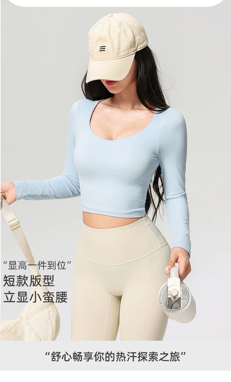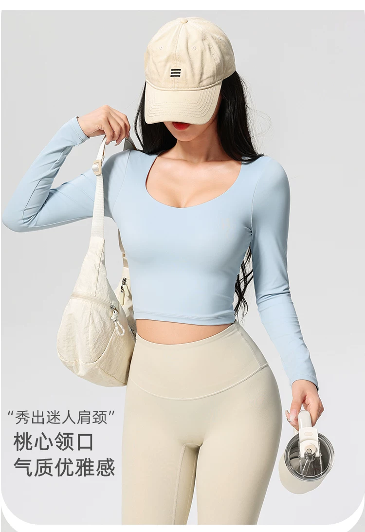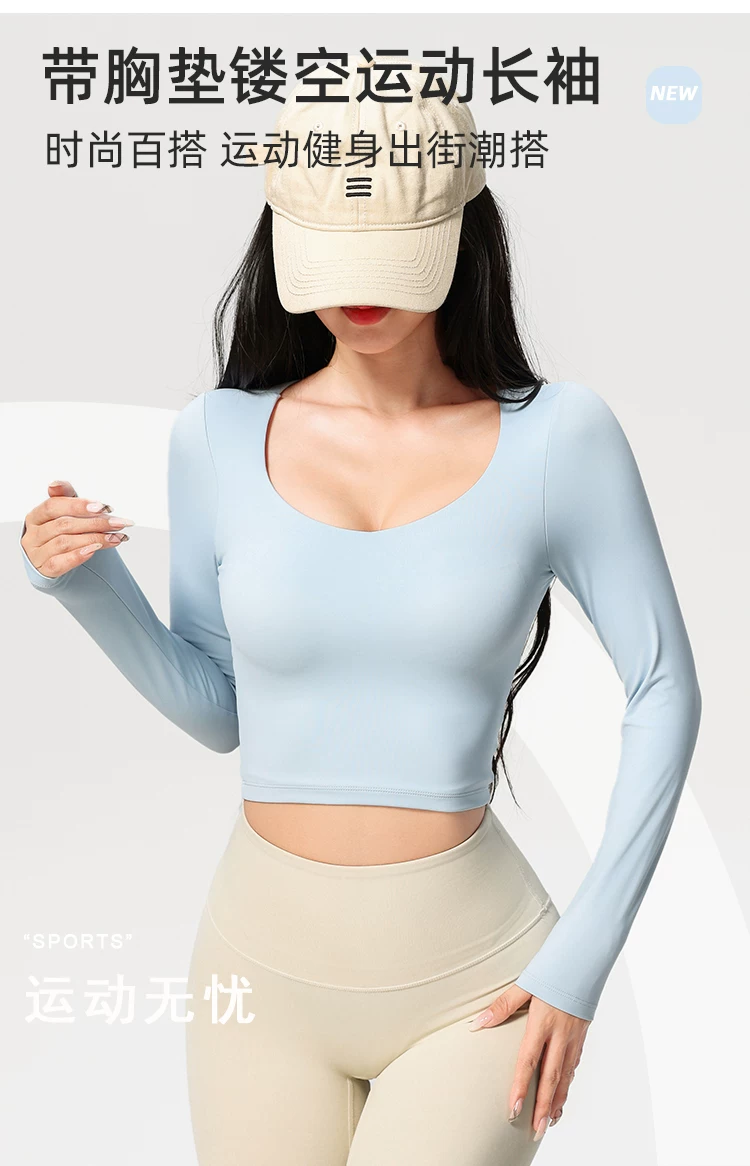 Áo thể thao, kiểu dáng mới thu đông, dài tay, có đệm ngực, quần áo tập yoga đẹp, quần áo tập thể dục giảm béo chuyên nghiệp tập Pilates