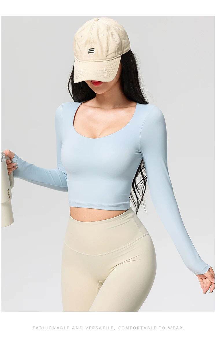 - Áo thể thao, kiểu dáng mới thu đông, dài tay, có đệm ngực, quần áo tập yoga đẹp, quần áo tập thể dục giảm béo chuyên nghiệp tập Pilates