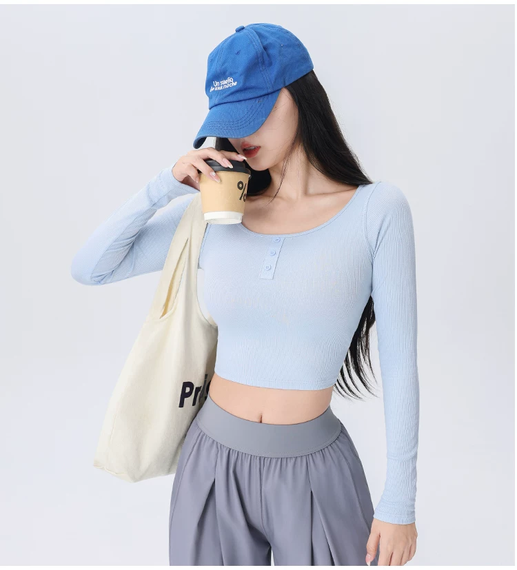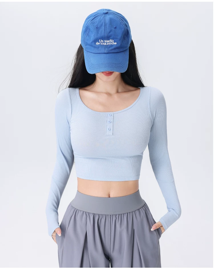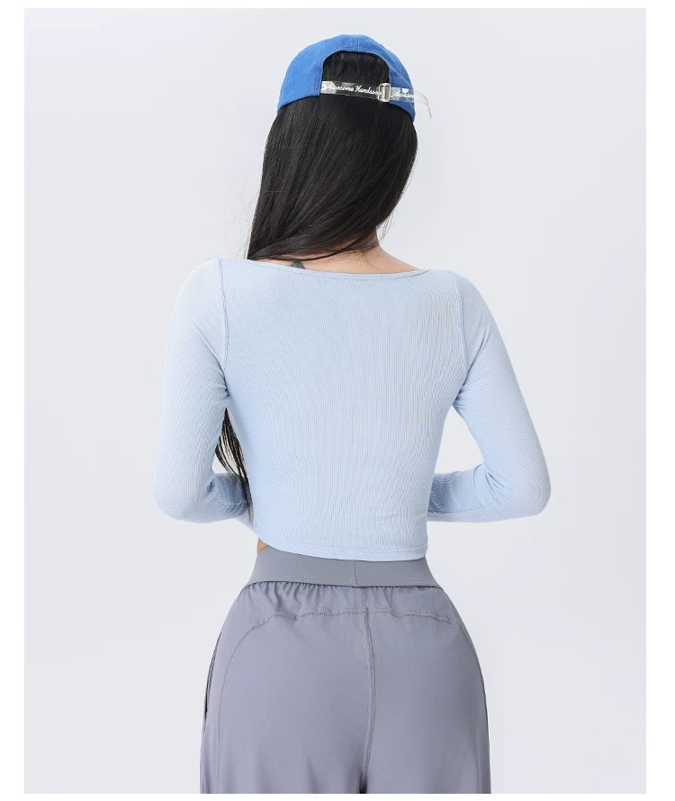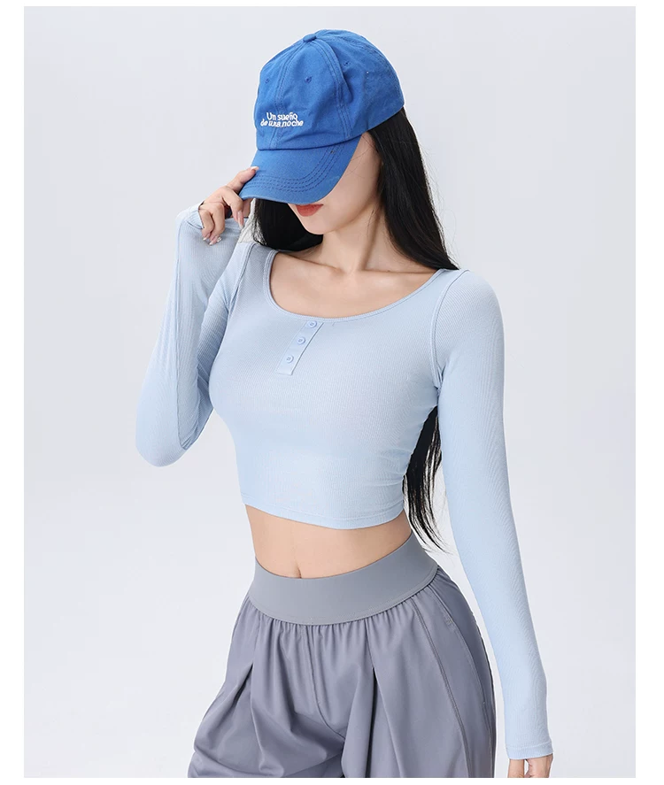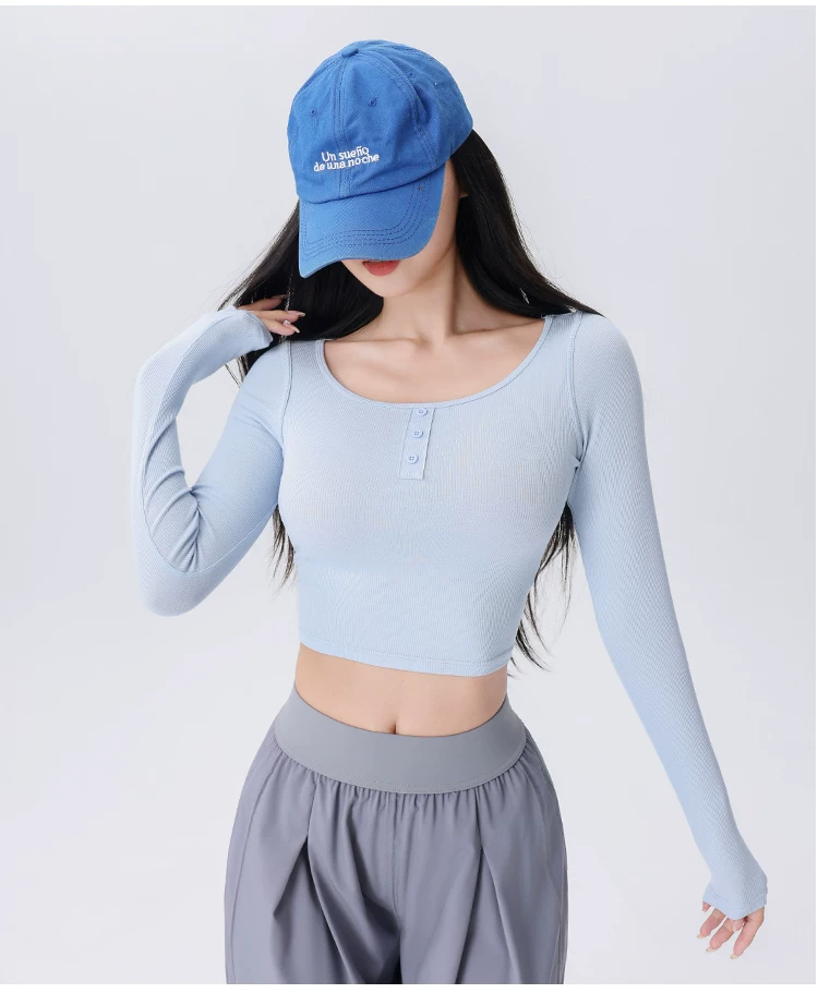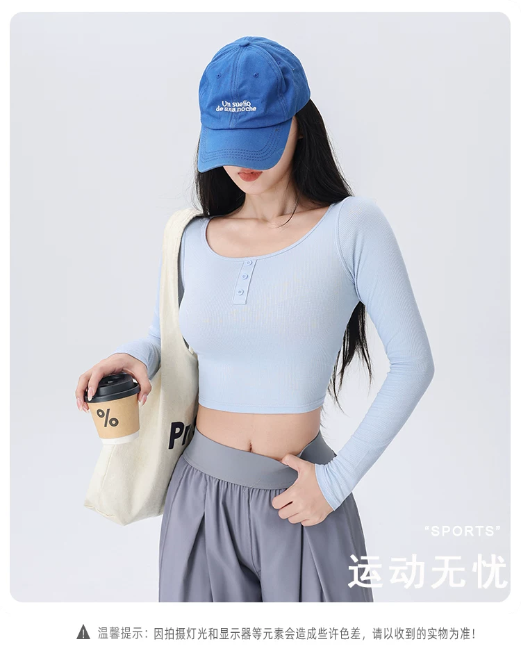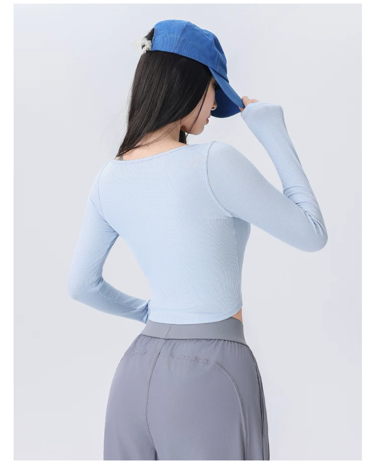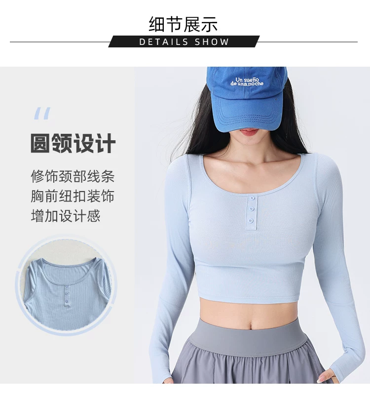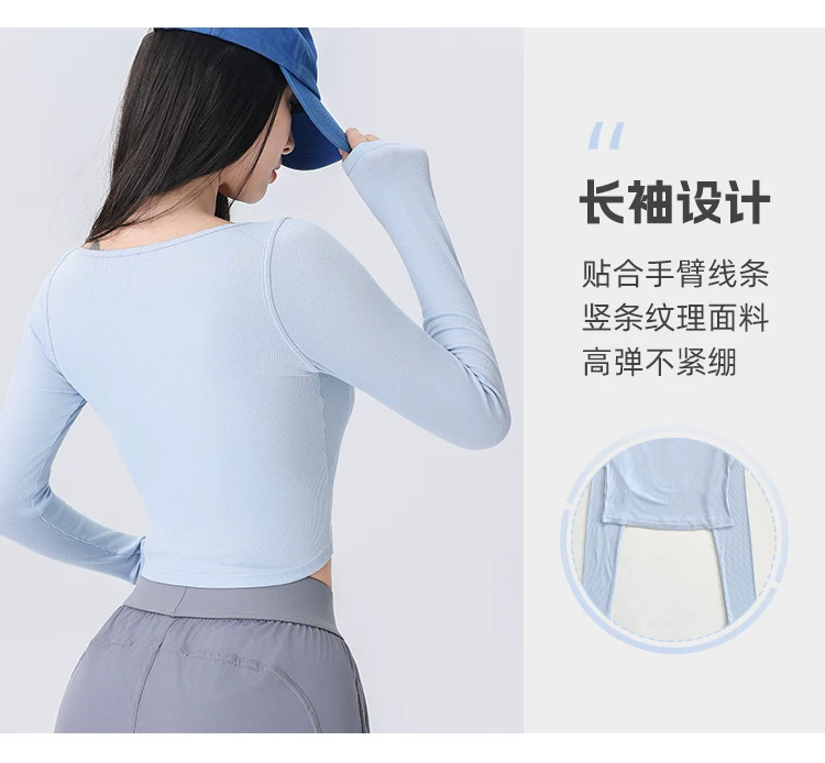 - Áo thể thao nữ dệt gân, kiểu dáng ôm sát, mới mùa thu 2026, thích hợp tập yoga, chạy bộ, tập luyện thể dục.