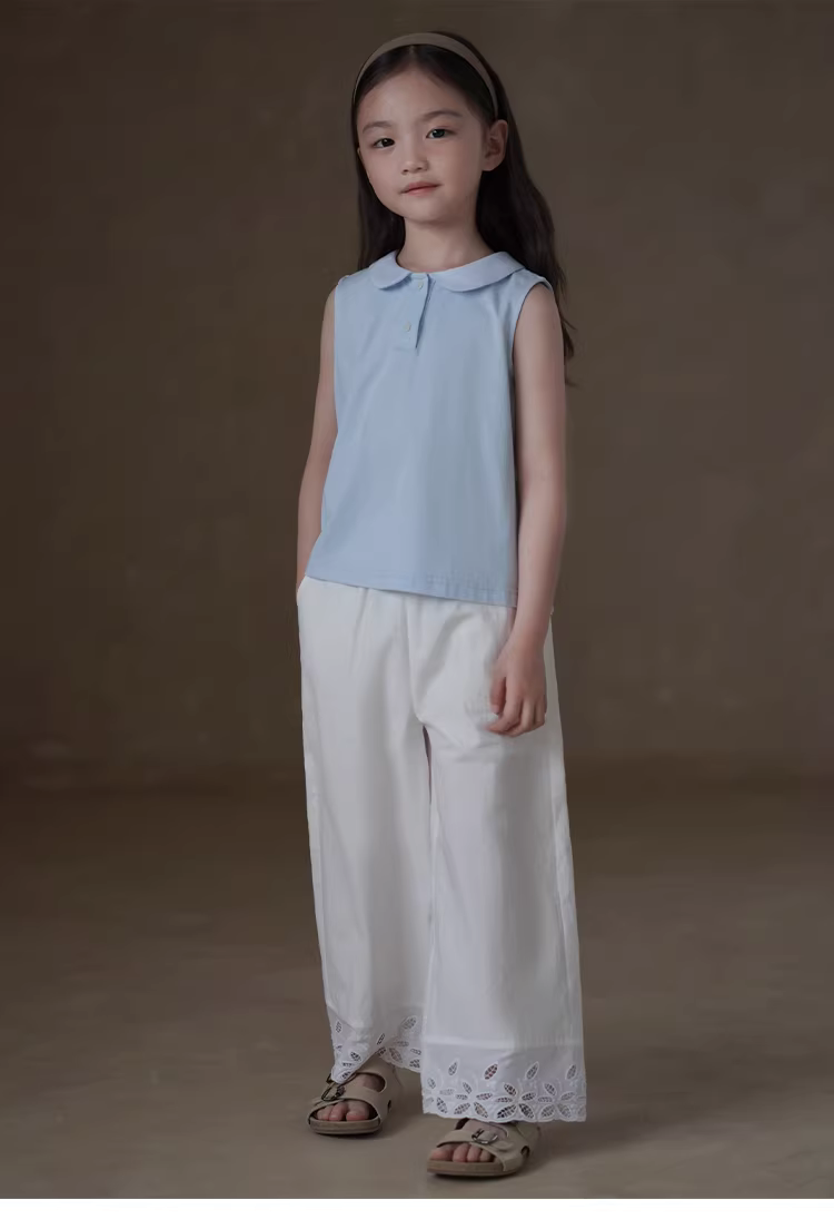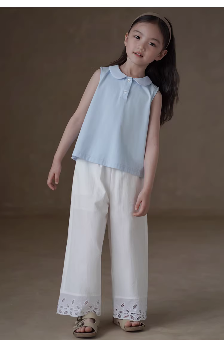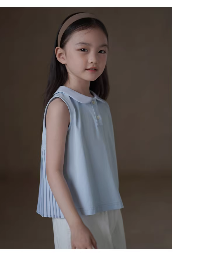 - Áo thun bé gái Hazi mùa hè 2025 cổ búp bê dệt kim, áo lót cho trẻ lớn
