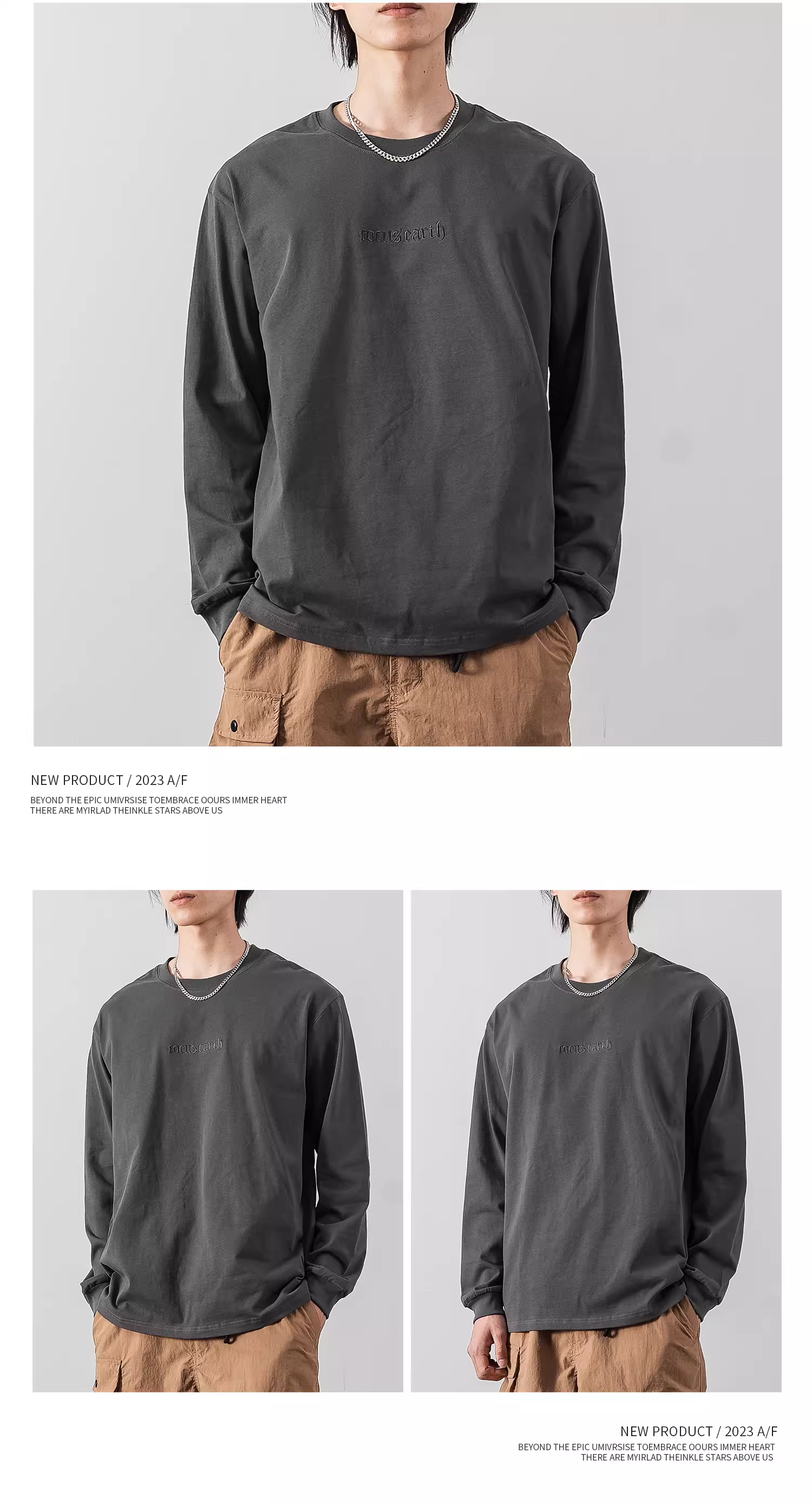 - Áo thun cotton dày dặn tay dài nam, áo thun cổ tròn in thêu chữ thương hiệu thời thượng mùa thu