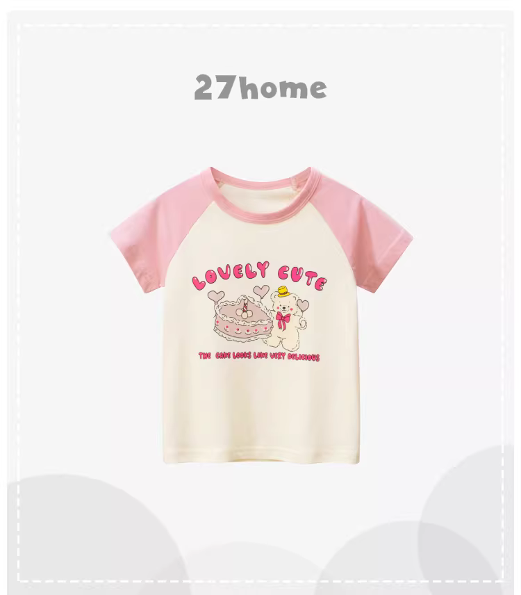 - Áo thun cotton ngắn tay cho bé, kiểu mới hè 2025, áo bé gái hoạt hình thời trang cổ tròn tay lửng, kiểu mỏng nhẹ size 6