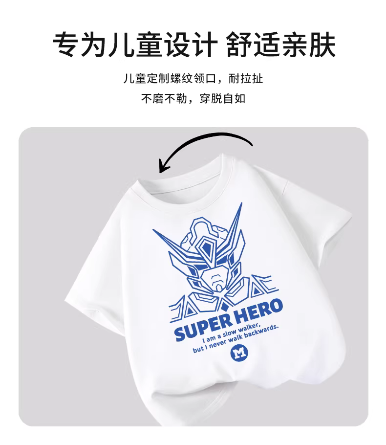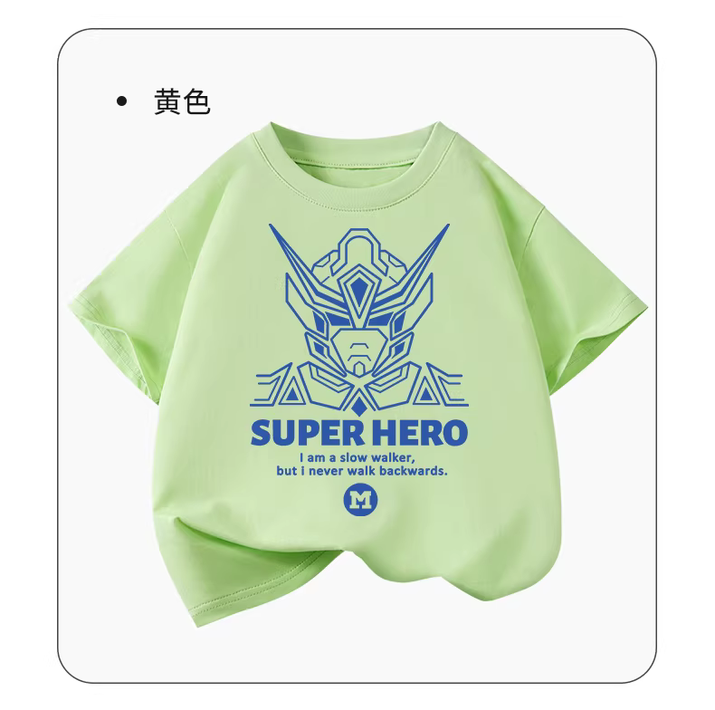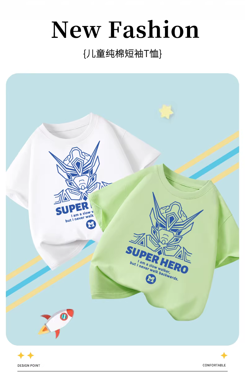 - Áo thun cotton ngắn tay cổ tròn cổ điển in hình robot mùa hè 2025 cho bé trai lớn, thương hiệu thời trang