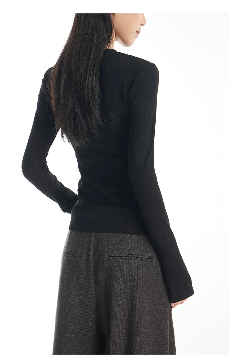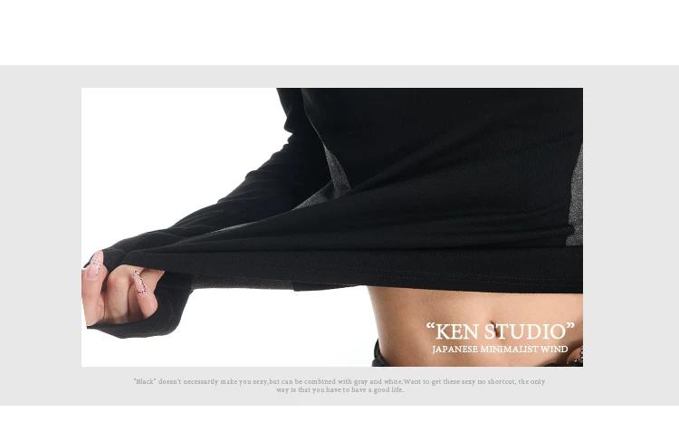 - Áo thun dài tay cổ tròn màu sắc phối hợp gợi cảm của KEN STUDIO dành cho nữ, áo lớp trong có dây buộc eo chải kỹ mùa thu đông