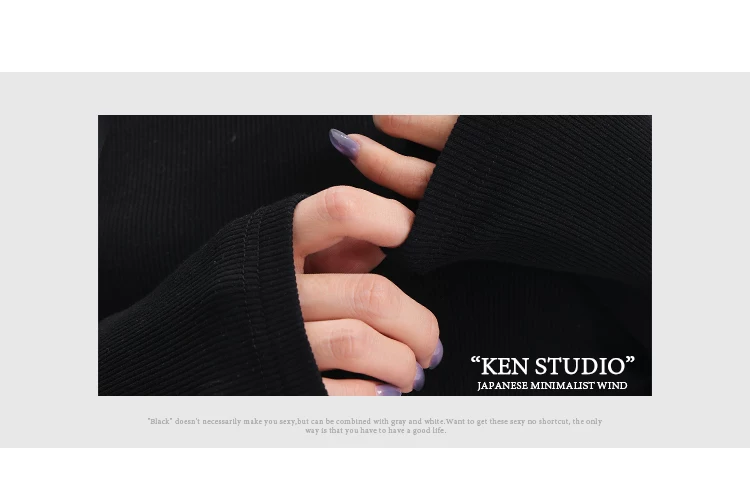 - Áo thun dài tay dệt kim màu đen thường ngày của KEN STUDIO mùa thu đông dành cho nữ, áo sơ mi cơ bản có họa tiết ôm vừa vặn