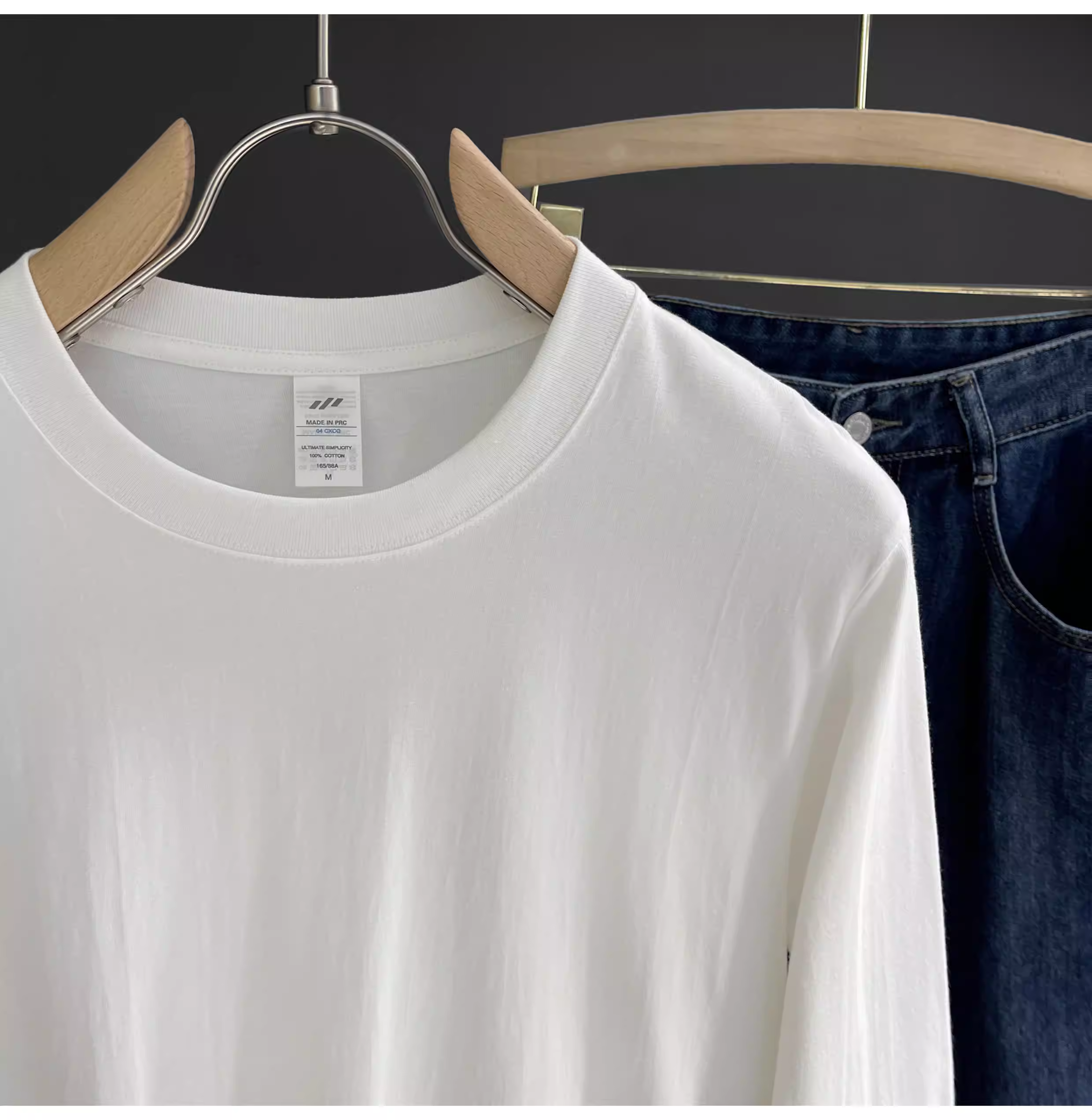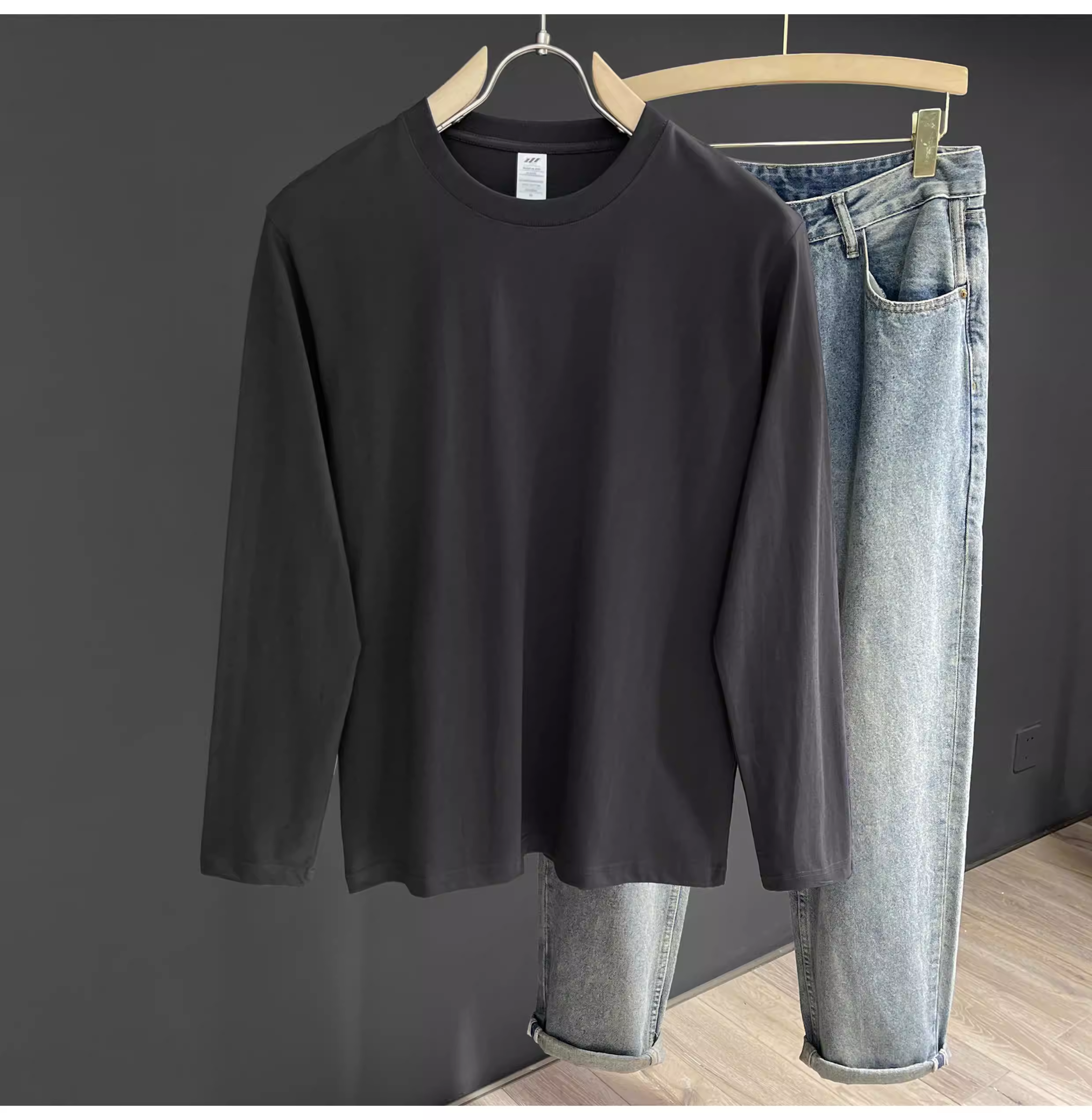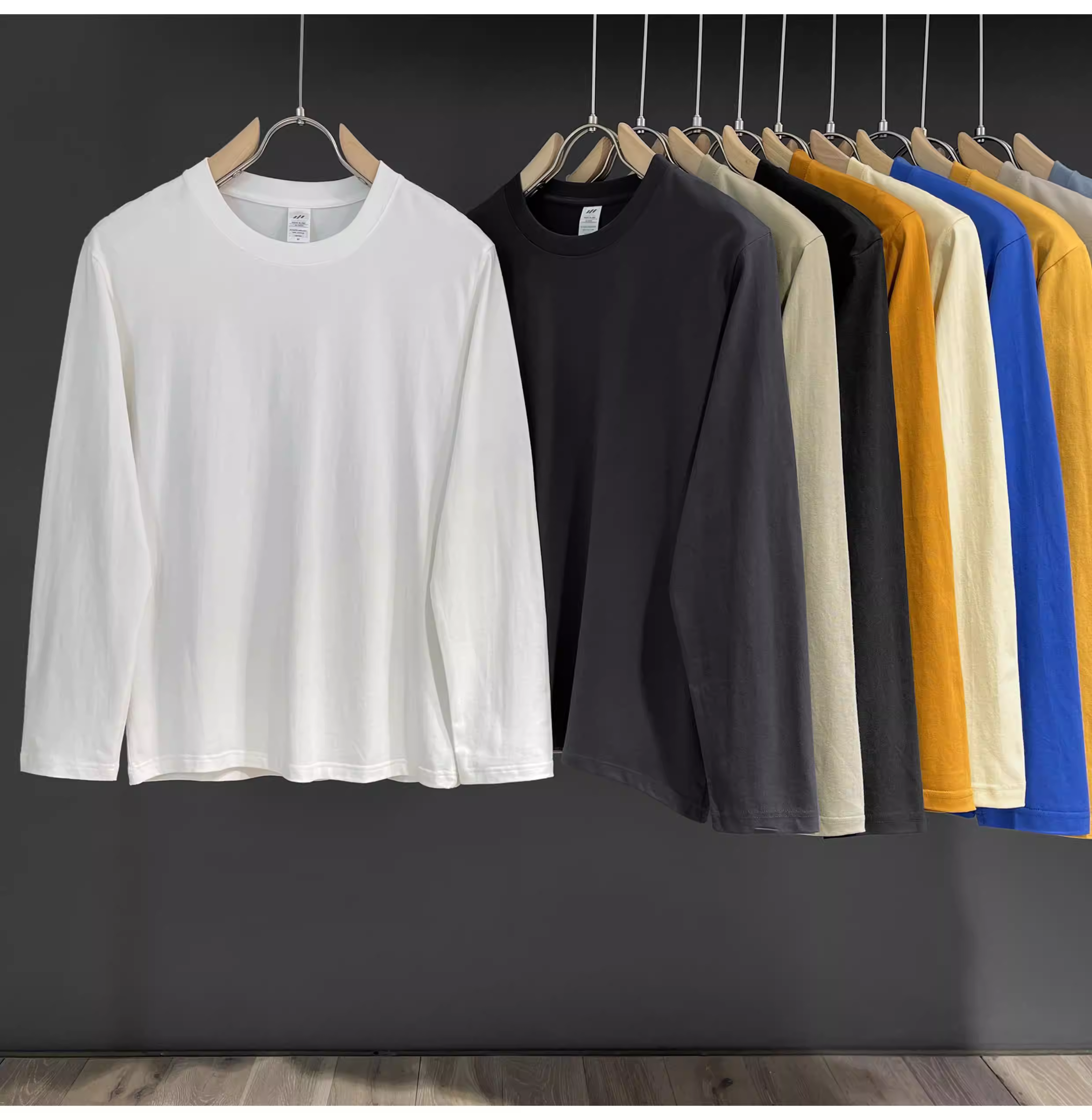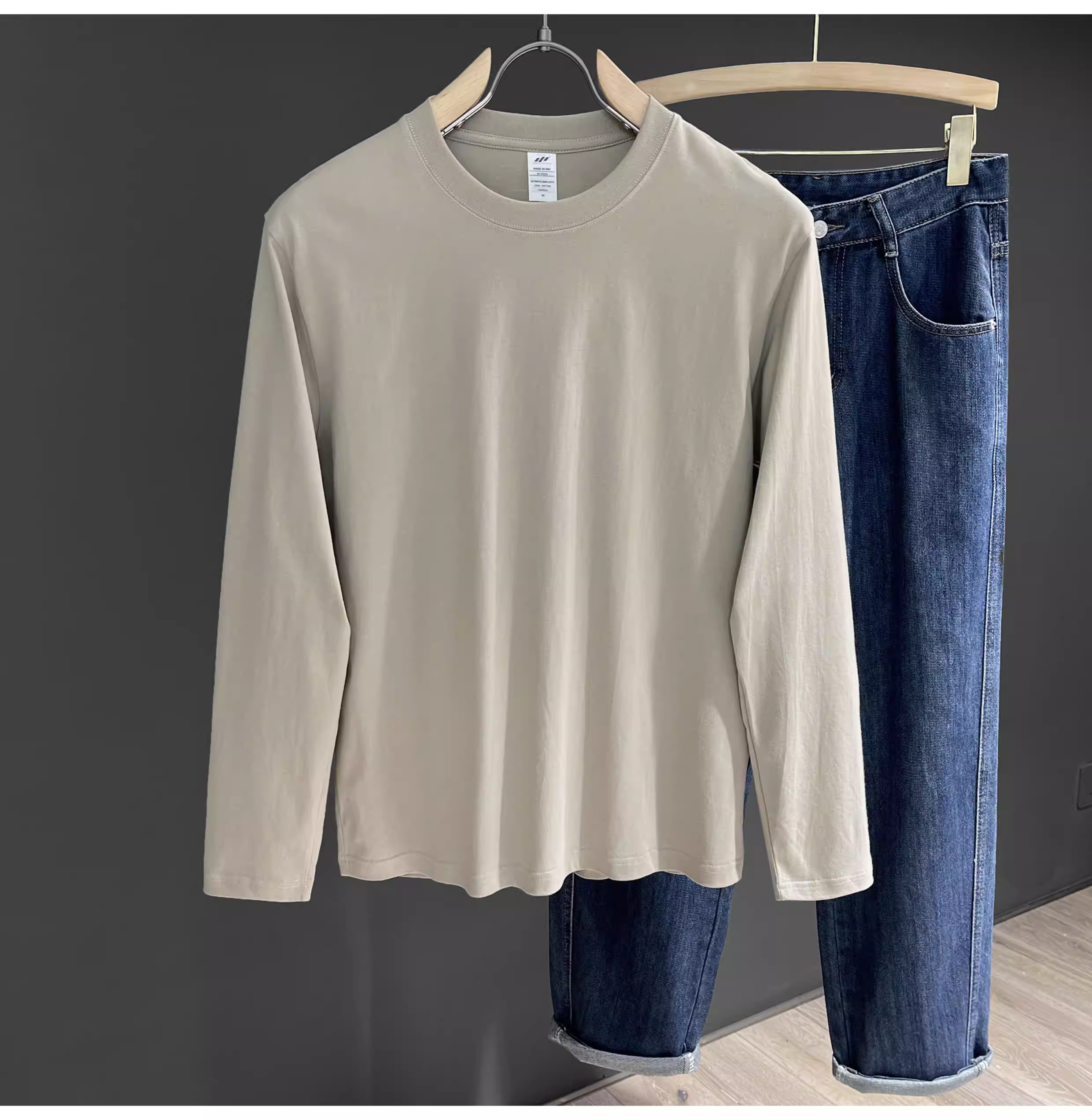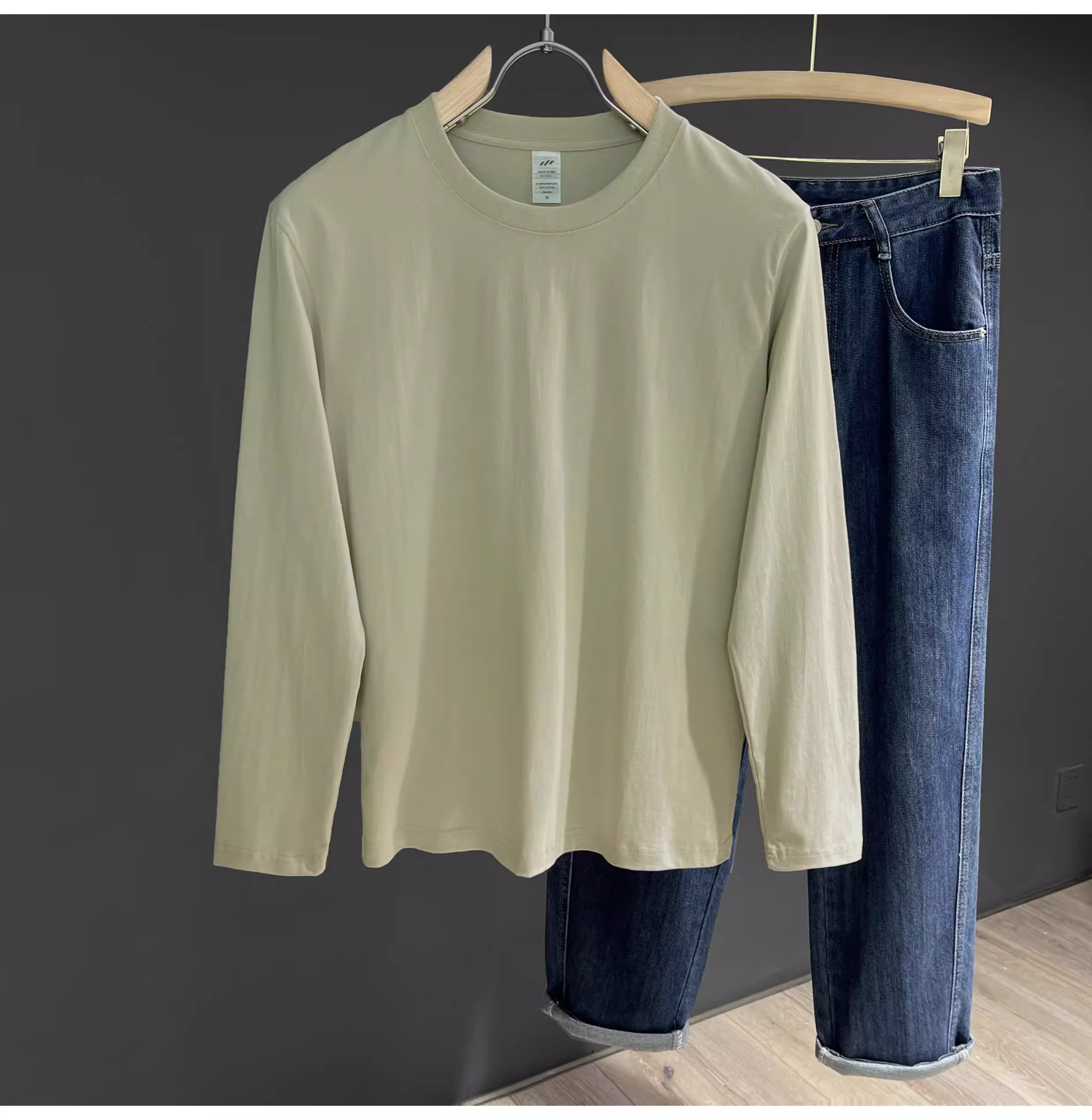 Áo thun dài tay LUUD 100% cotton nguyên chất thoải mái dành cho nam, áo cổ tròn màu trơn đơn giản và đa năng cho mùa xuân.