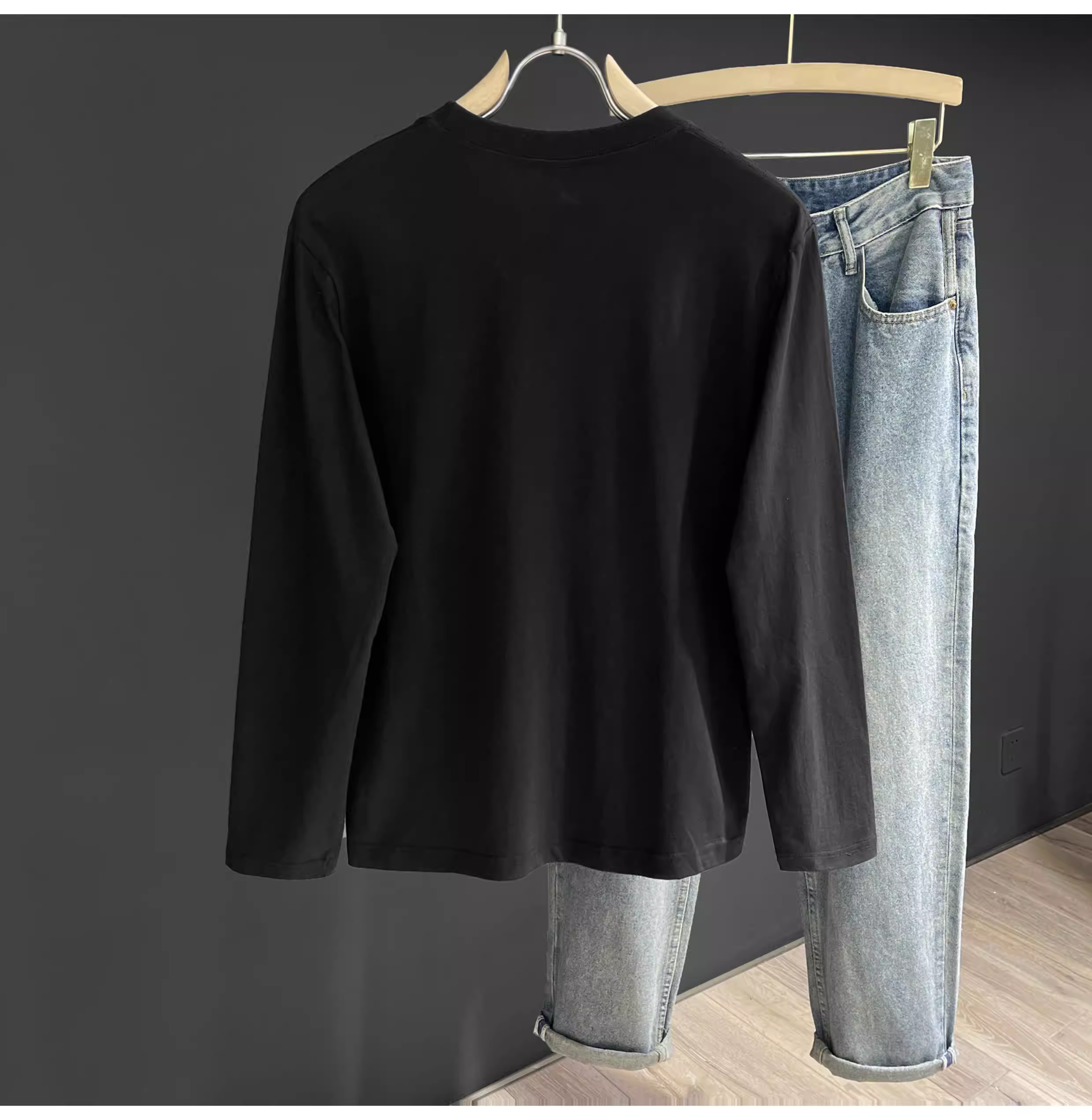 - Áo thun dài tay LUUD 100% cotton nguyên chất thoải mái dành cho nam, áo cổ tròn màu trơn đơn giản và đa năng cho mùa xuân.